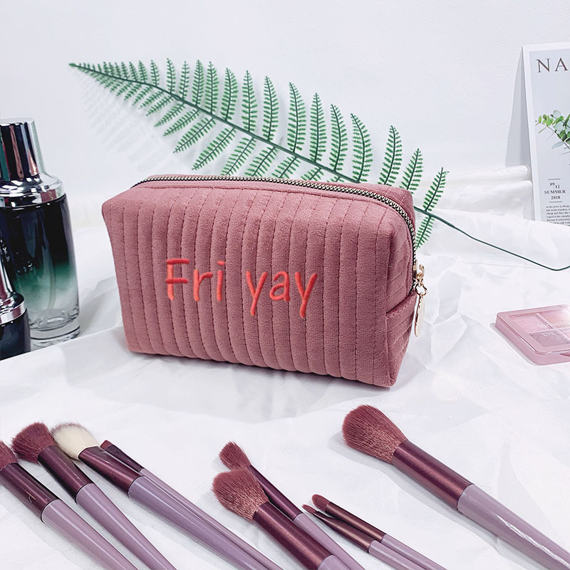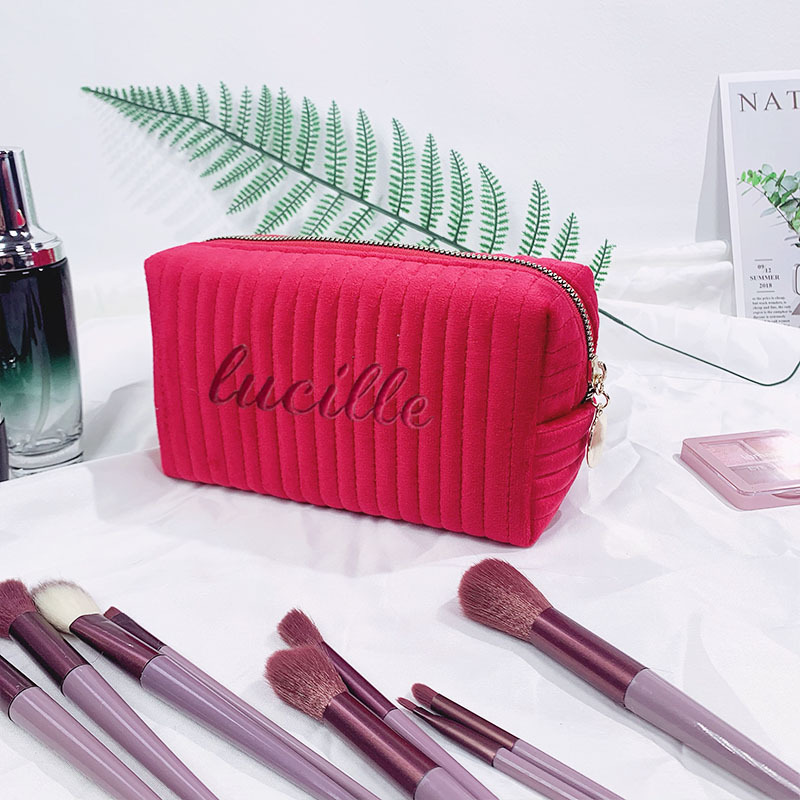 국경 간 새로운 스타일 퀼트 및 자수 줄무늬 벨벳 화장품 가방 휴대용 소형 스퀘어 가방 간단한 여행 보관 화장품 가방