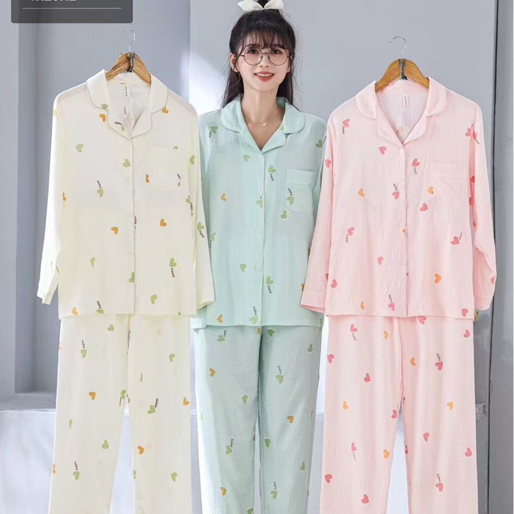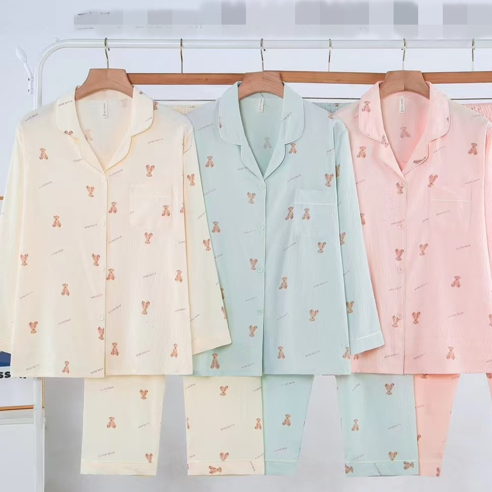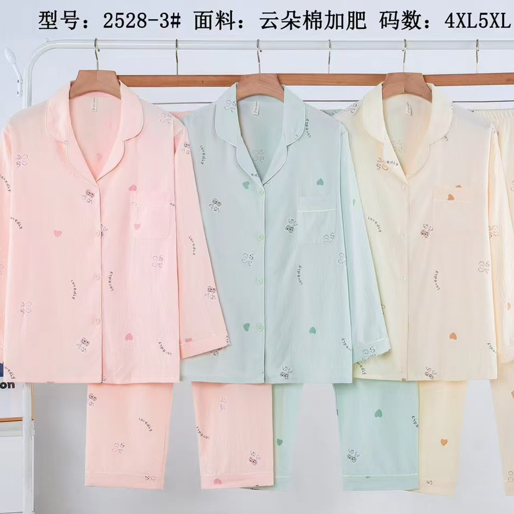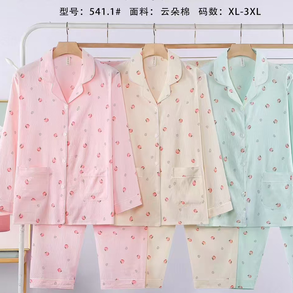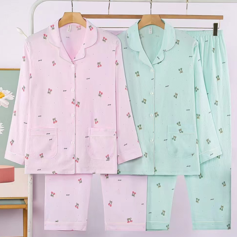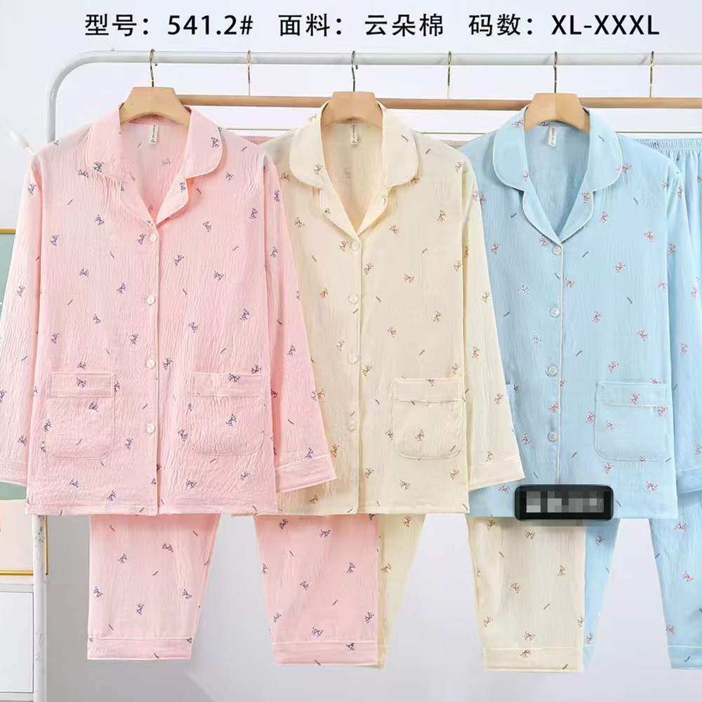 새로운 여름 여성의 긴 소매 카디건 옷깃 구름 면화 봄과 여름 에어컨 얇은 홈 의류 캐주얼 세트 5XL스토어 가기