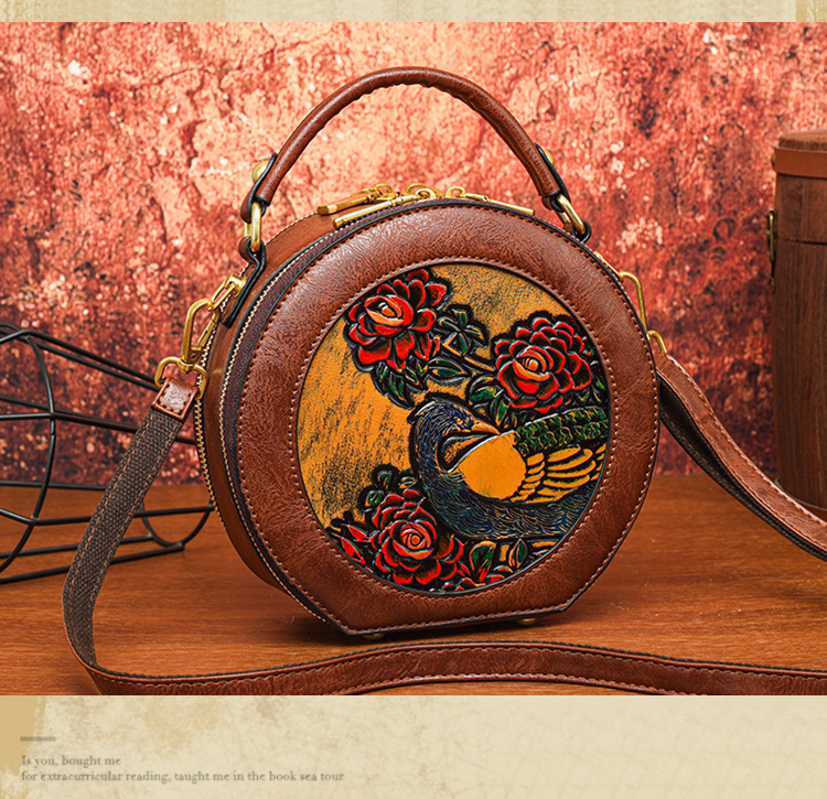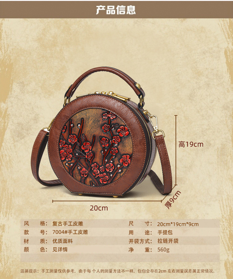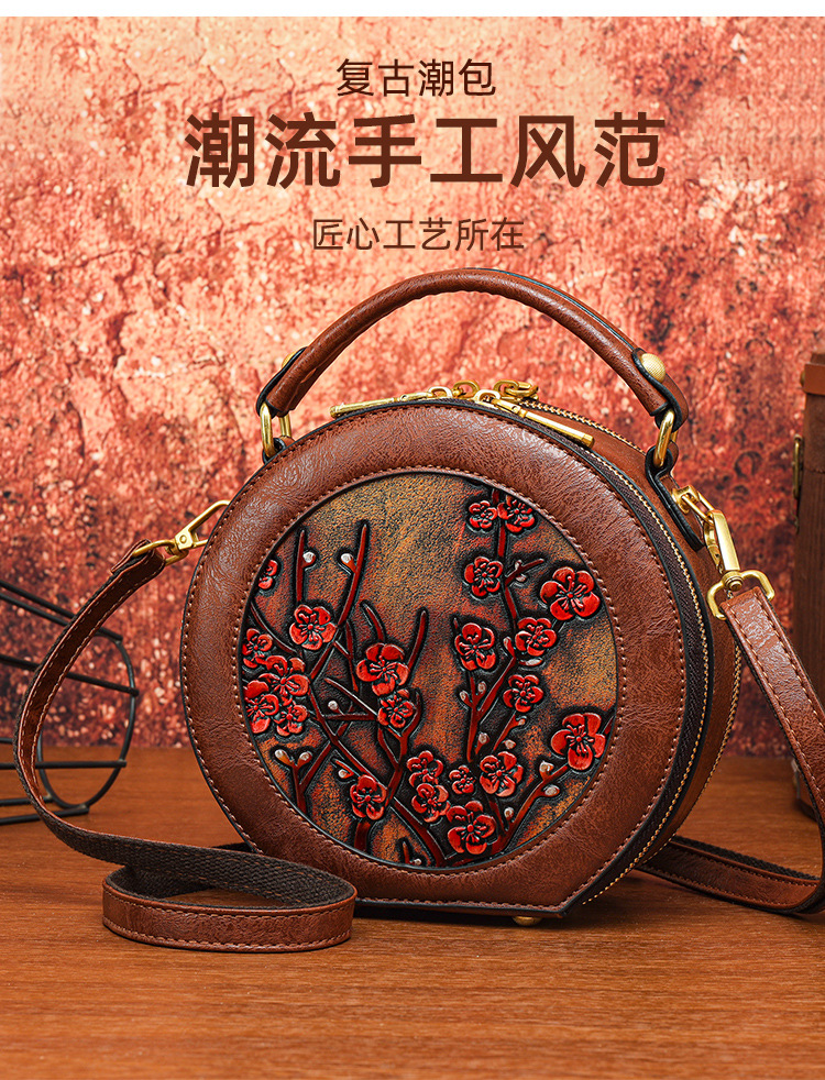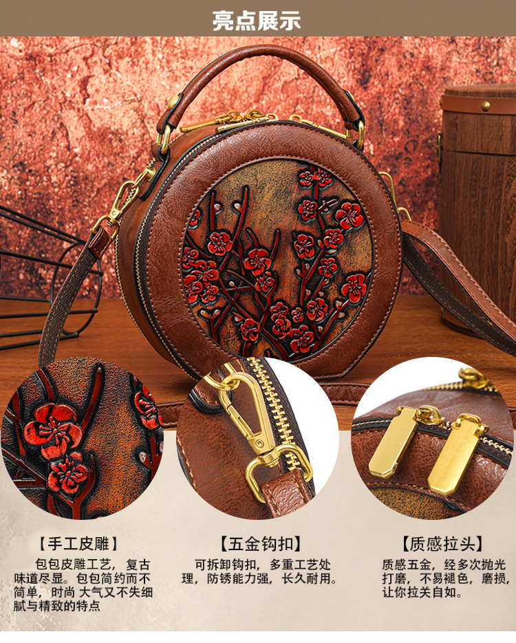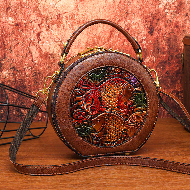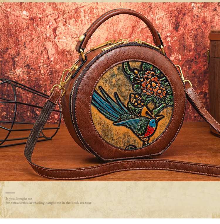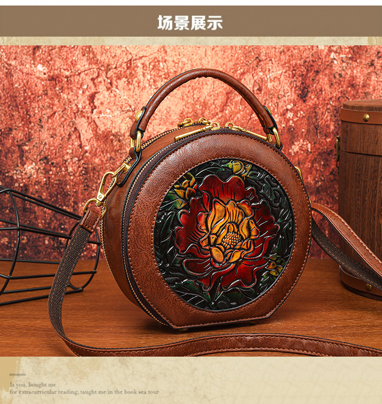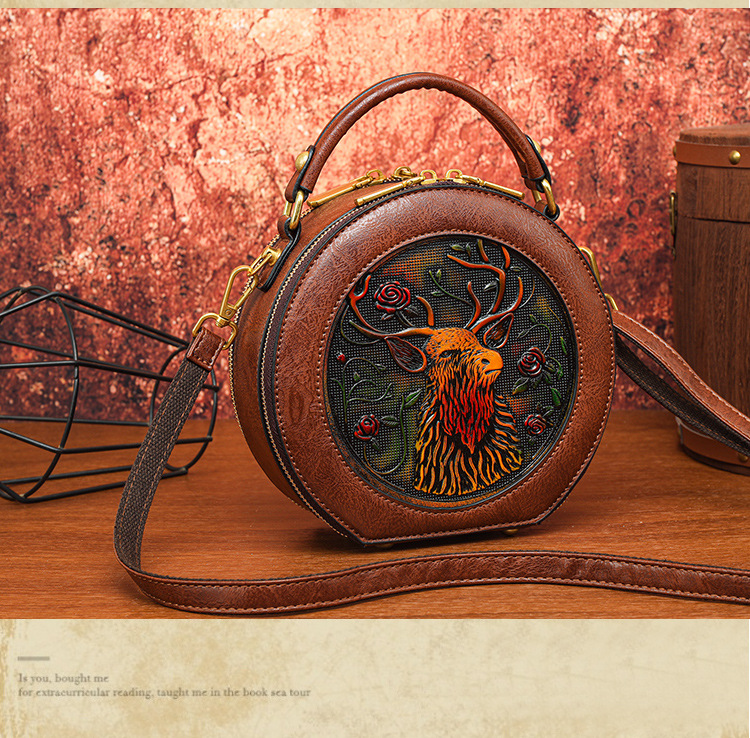 어깨 가방 실린더 빈티지 수제 조각 질감 크로스 바디 가방 간단한 통근 대용량 민족 스타일 가방 여성용스토어 가기