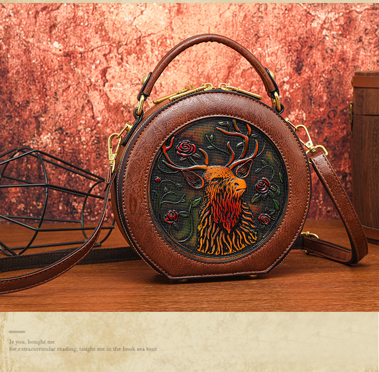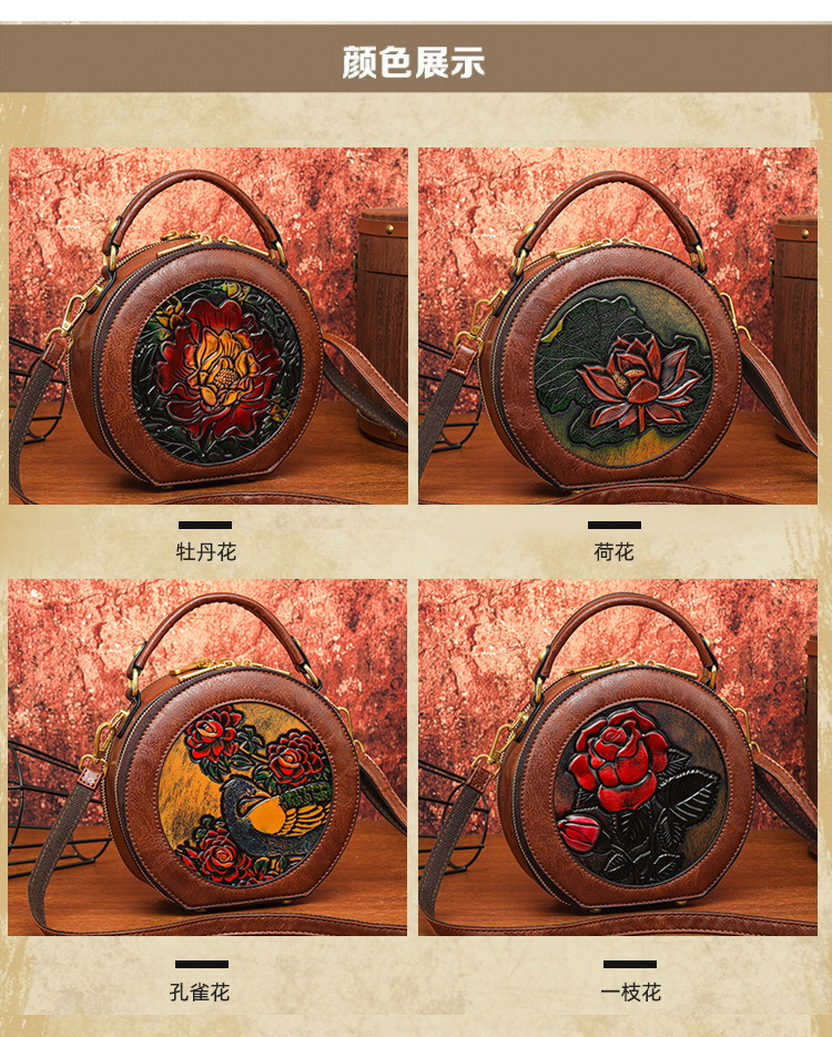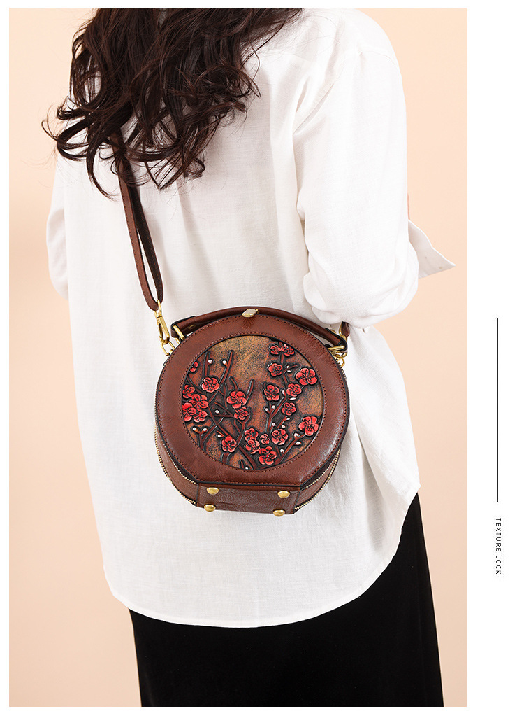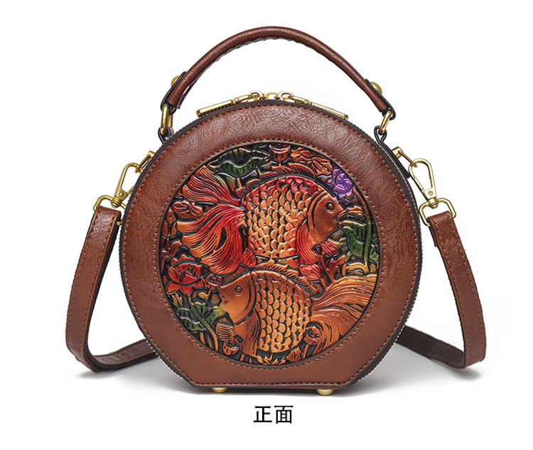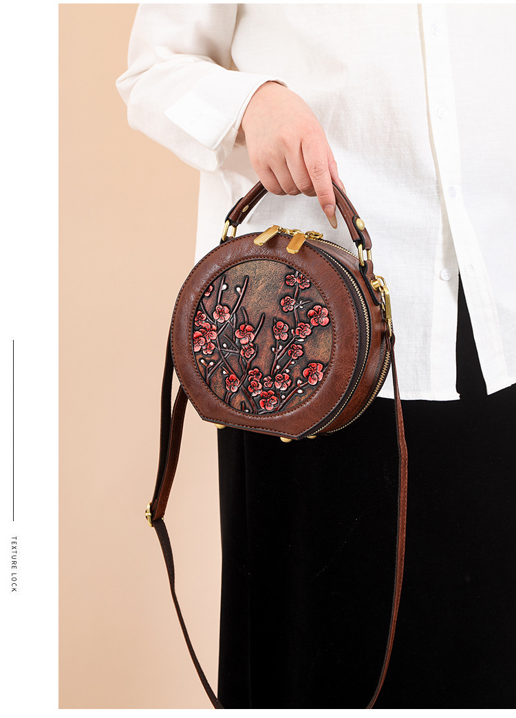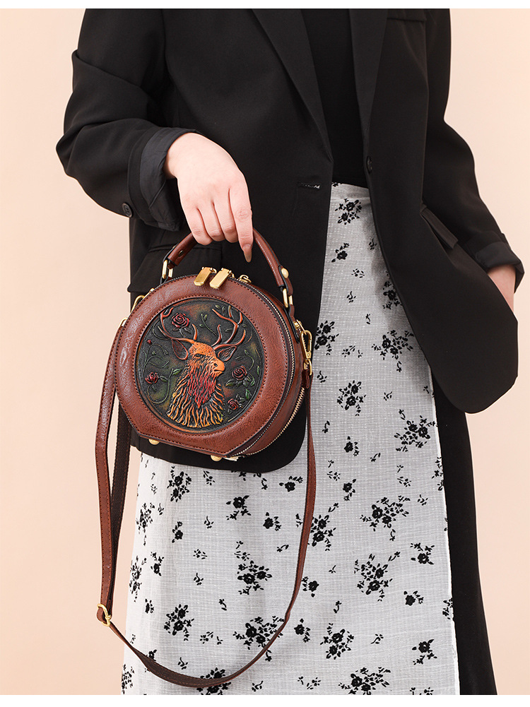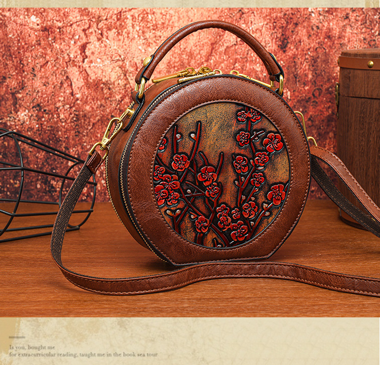 어깨 가방 실린더 빈티지 수제 조각 질감 크로스 바디 가방 간단한 통근 대용량 민족 스타일 가방 여성용스토어 가기