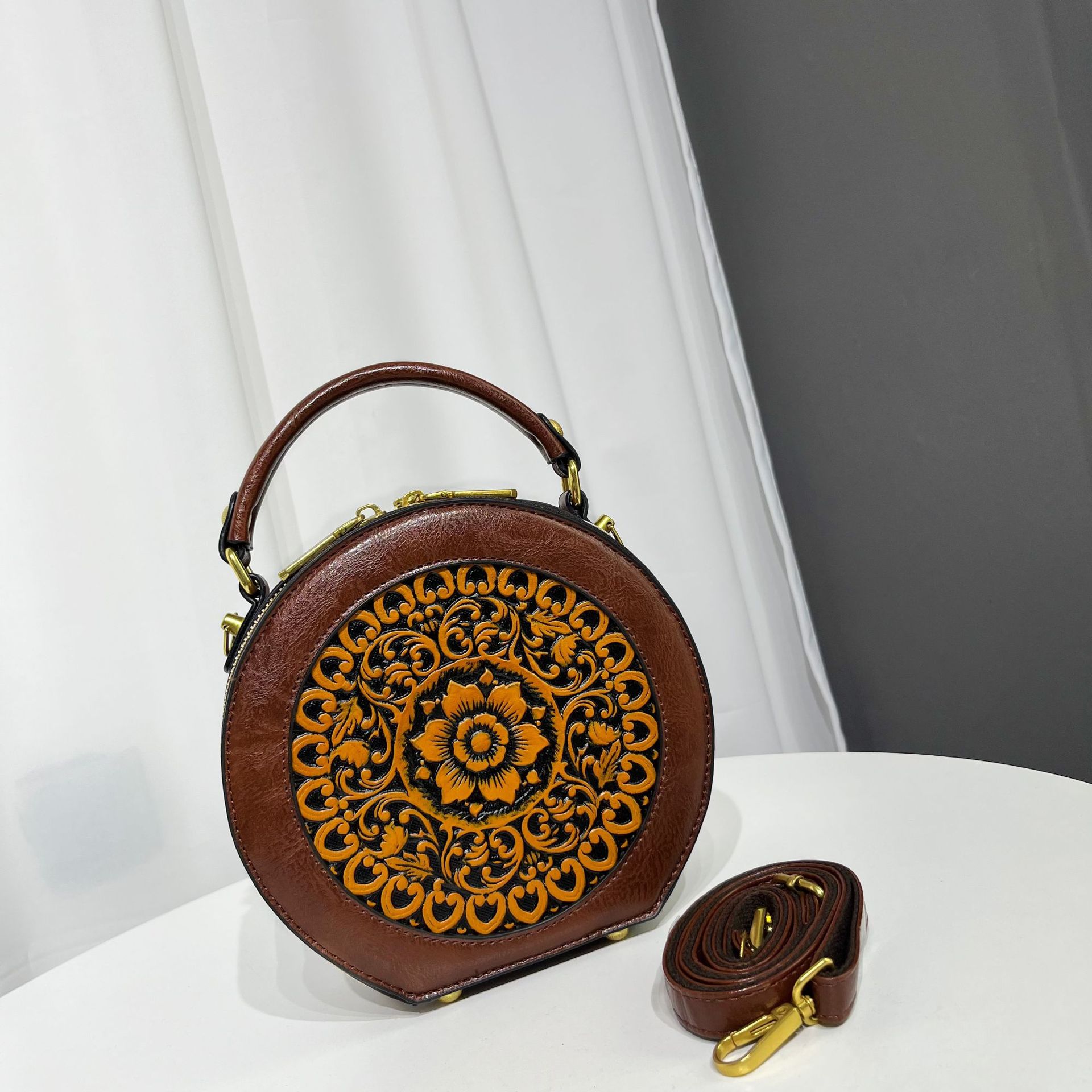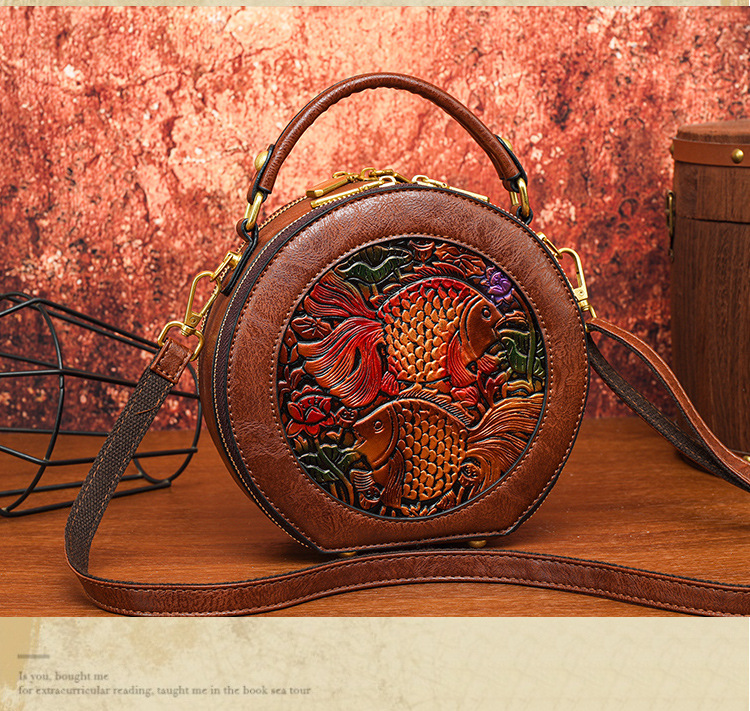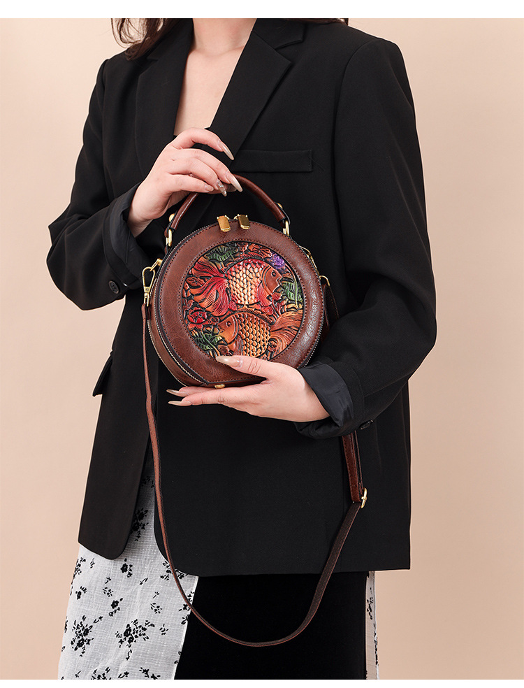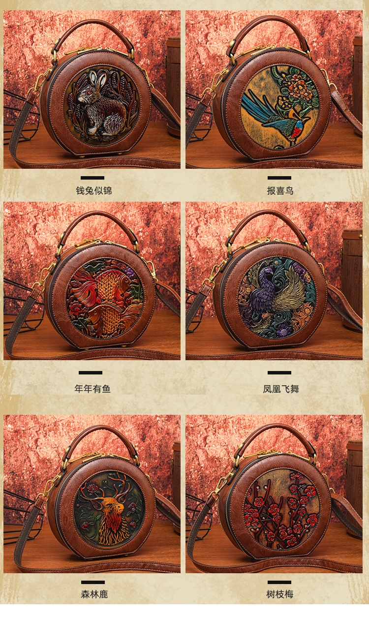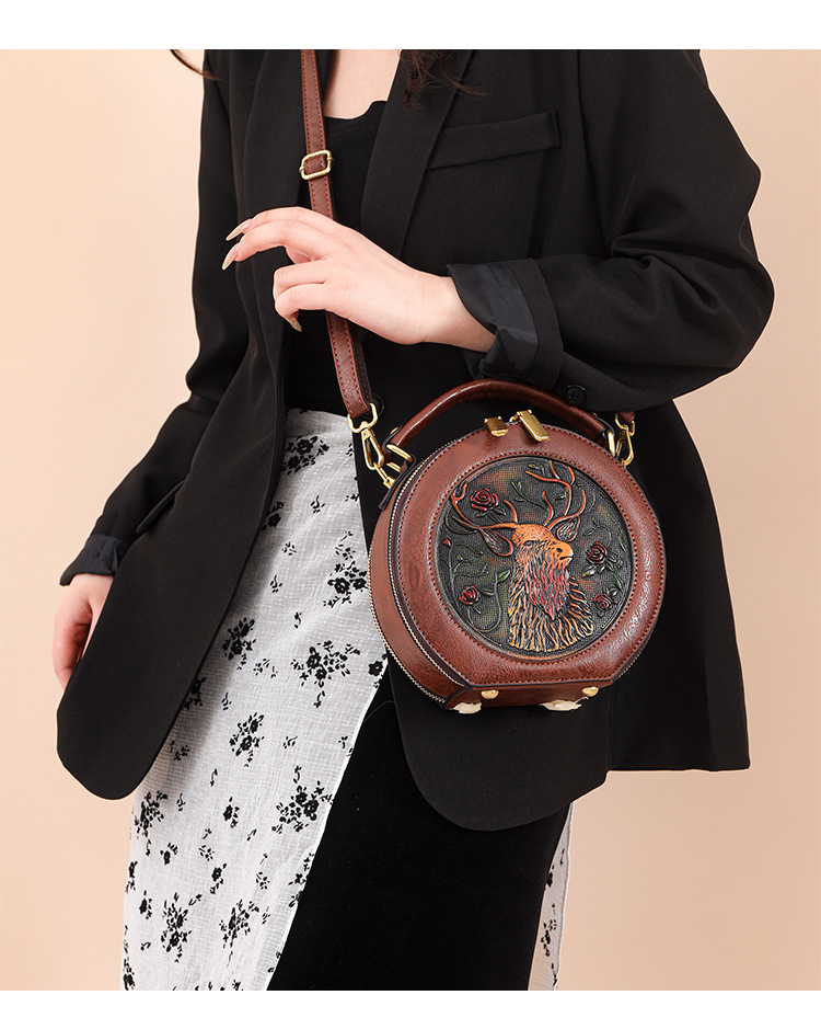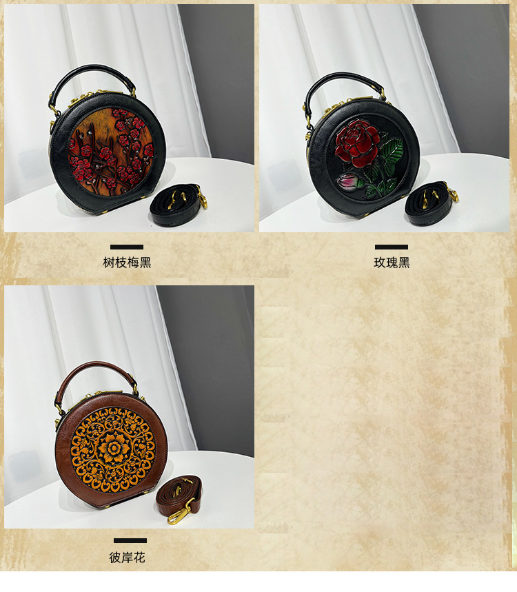 어깨 가방 실린더 빈티지 수제 조각 질감 크로스 바디 가방 간단한 통근 대용량 민족 스타일 가방 여성용스토어 가기