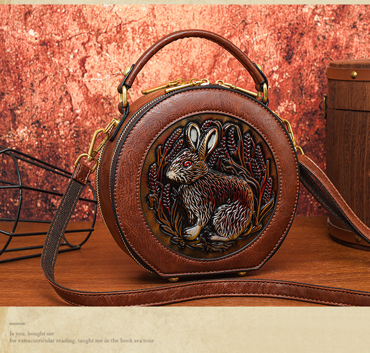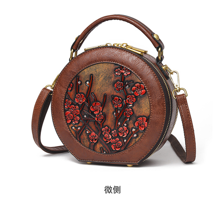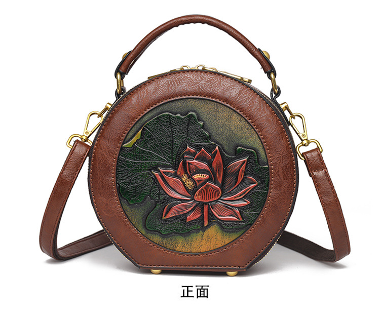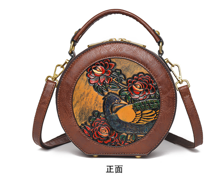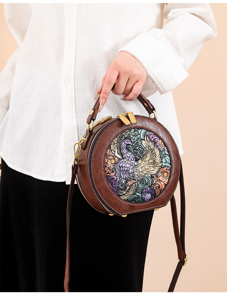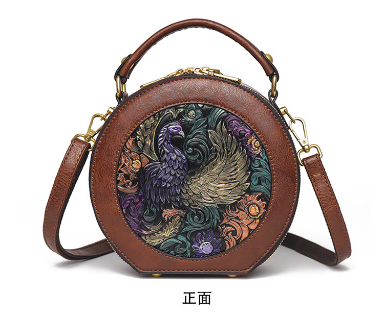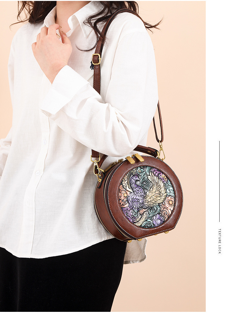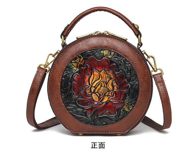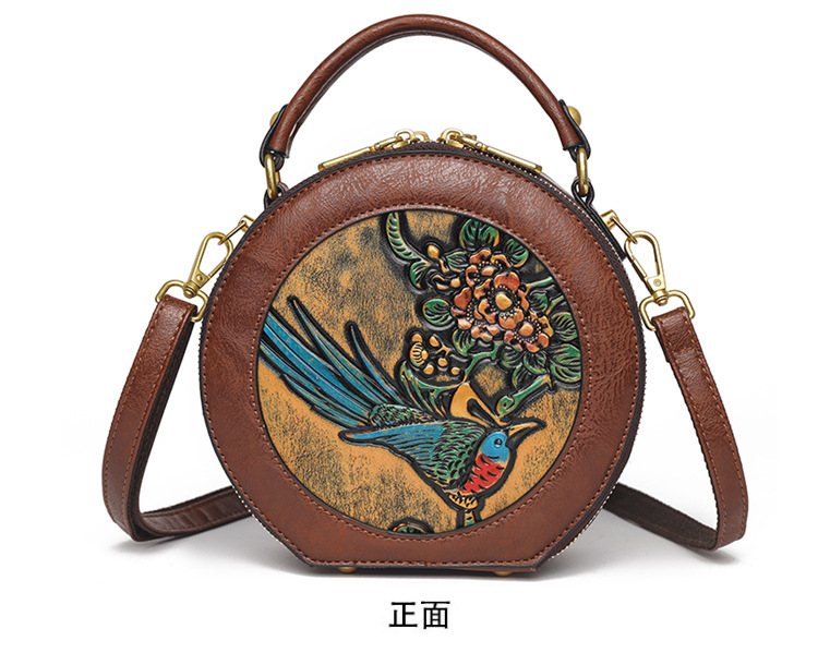 어깨 가방 실린더 빈티지 수제 조각 질감 크로스 바디 가방 간단한 통근 대용량 민족 스타일 가방 여성용