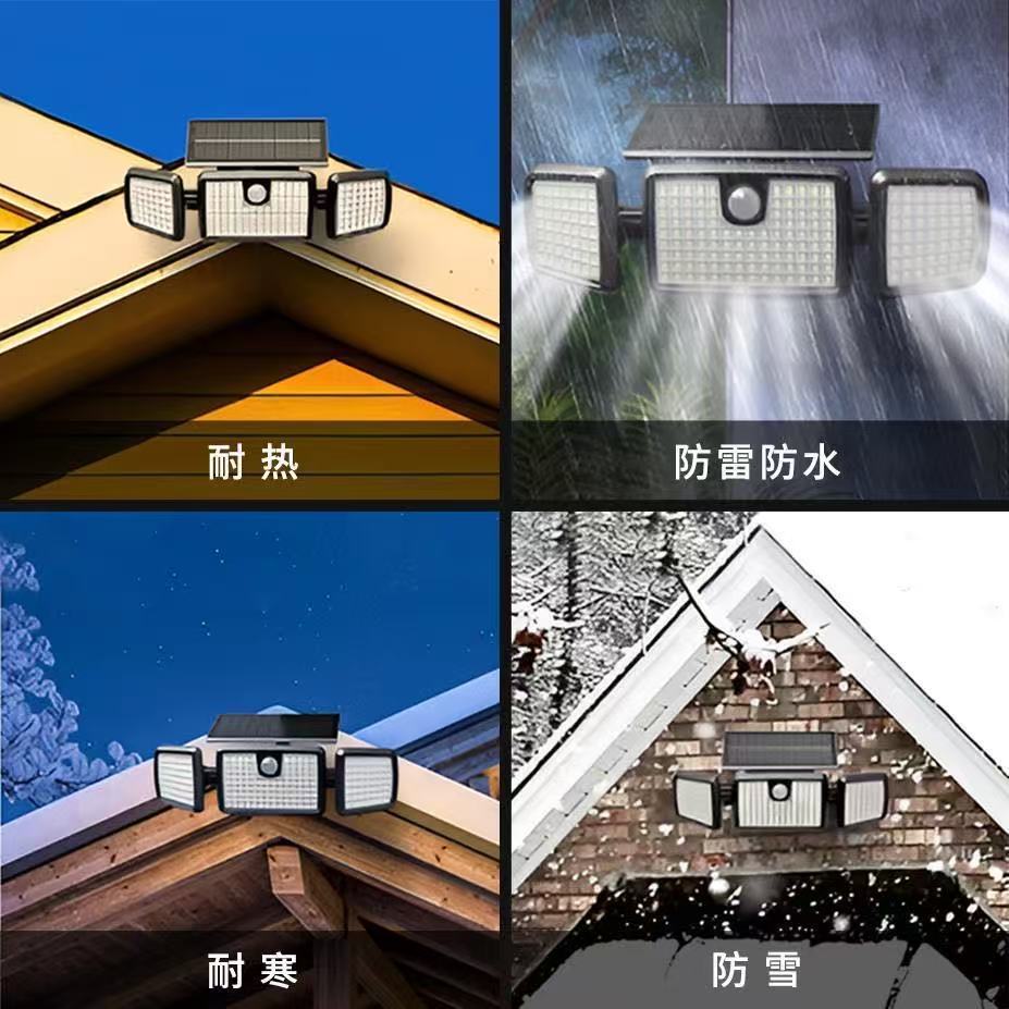 태양 조명 3 면 발광 멀티 헤드 LED 지능형 유도 램프 방수 야외 가로등 농촌 정원 조명
