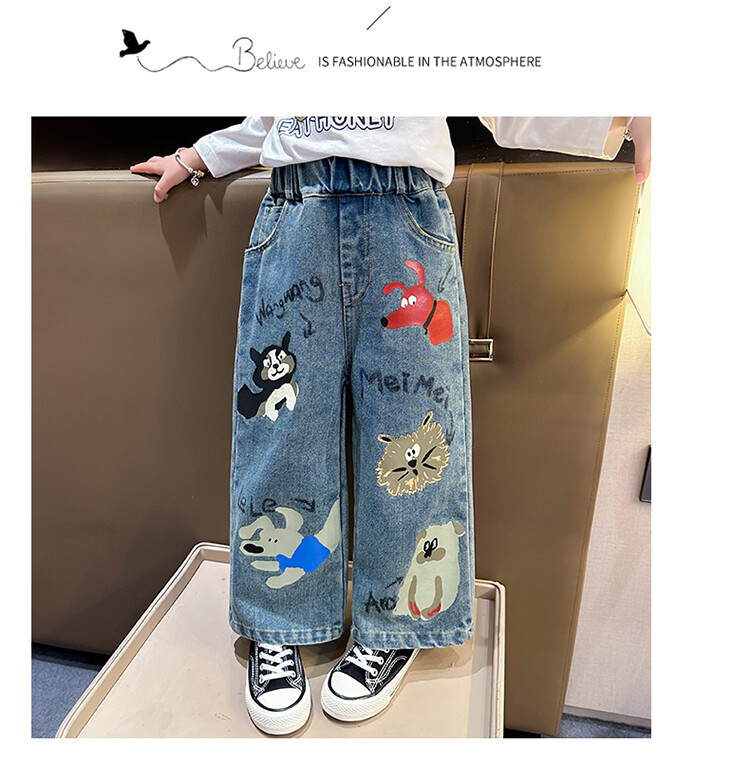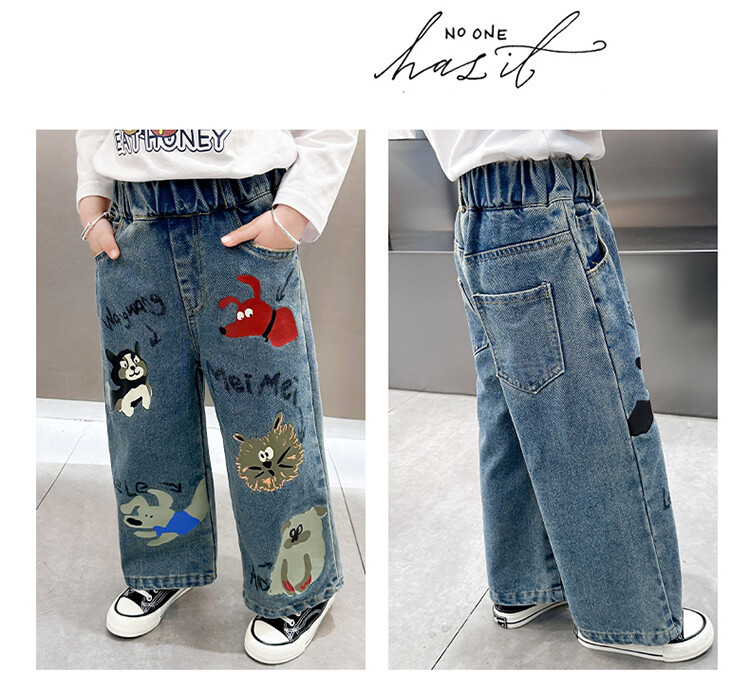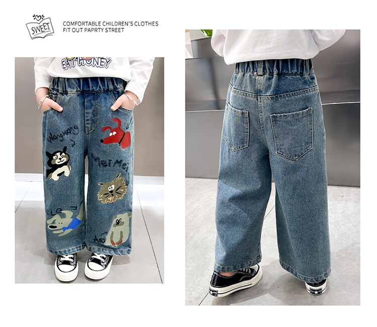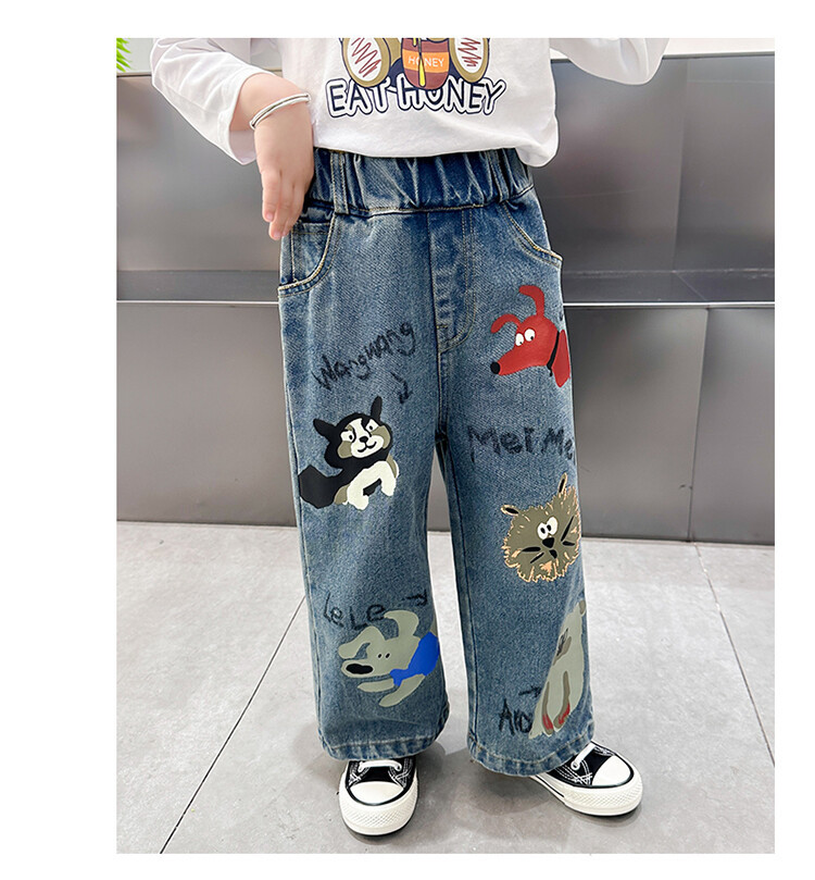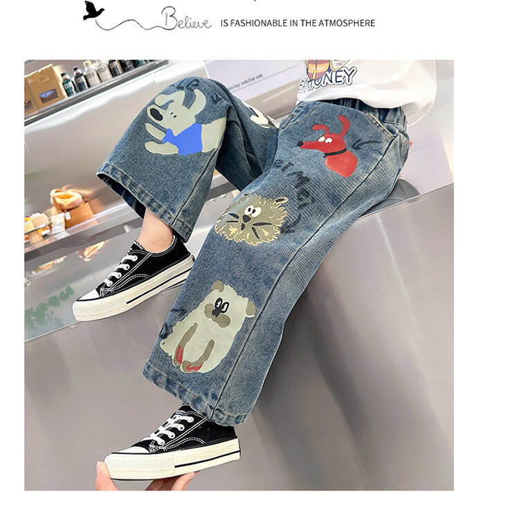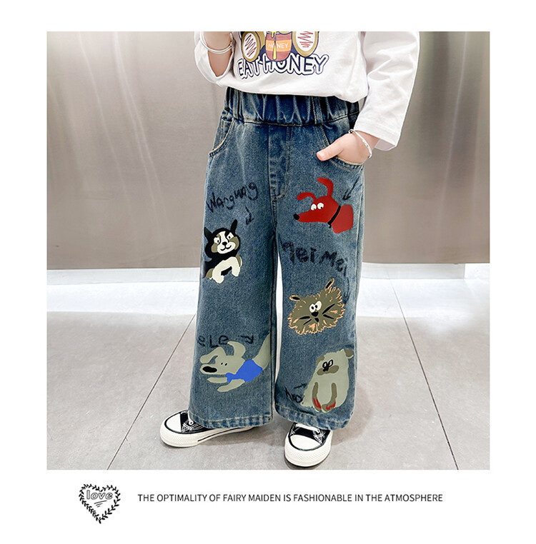 어린이 의류 도매 소녀 청바지 봄과 가을 2025 새로운 어린이 인쇄 만화 바지 아기 소녀 스트레이트 바지