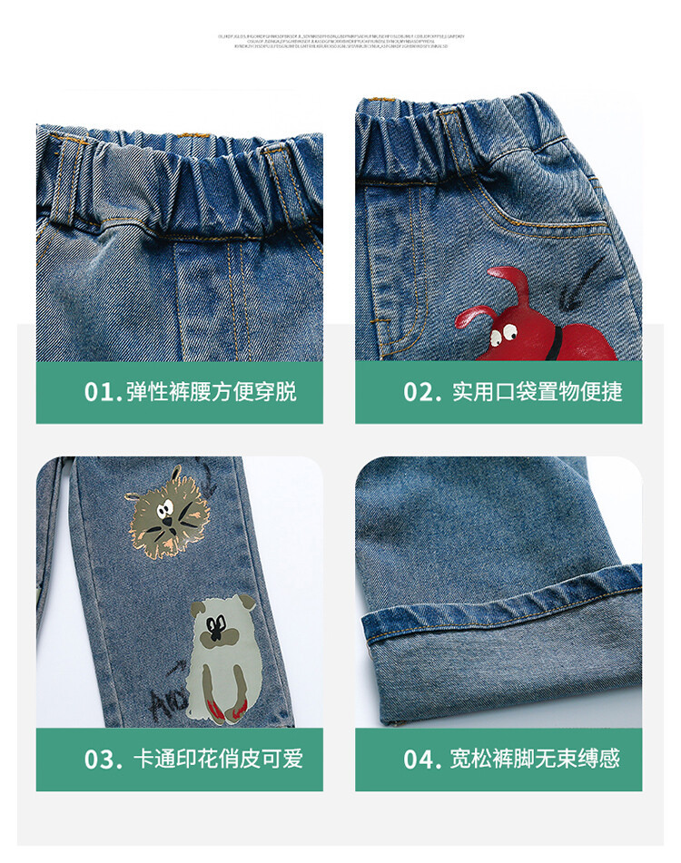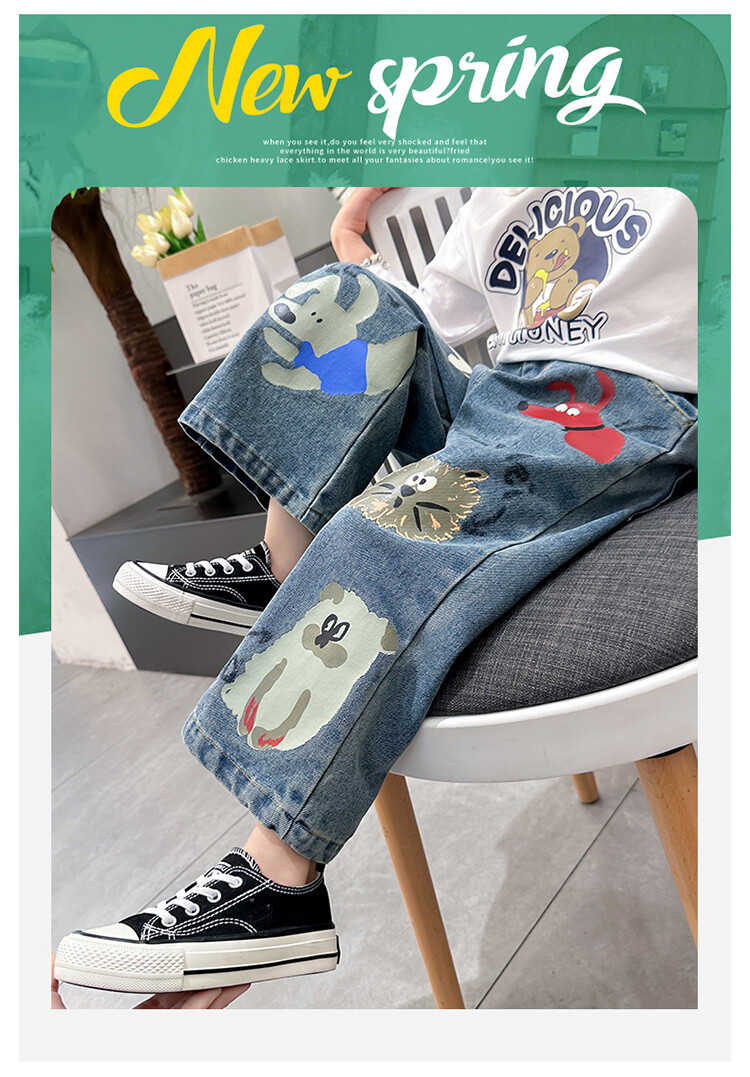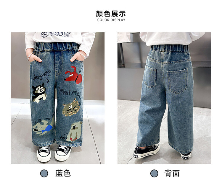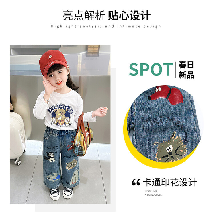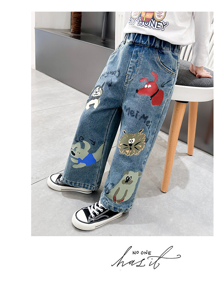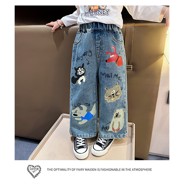 어린이 의류 도매 소녀 청바지 봄과 가을 2025 새로운 어린이 인쇄 만화 바지 아기 소녀 스트레이트 바지