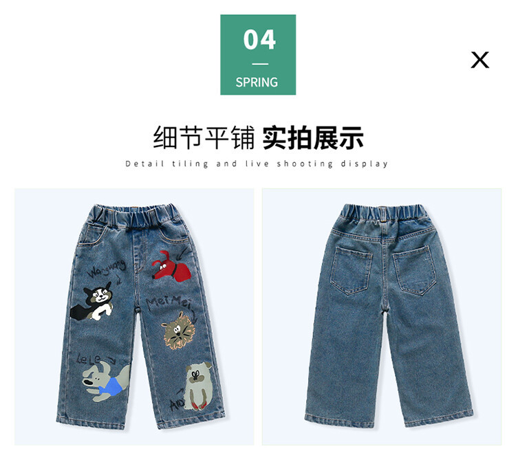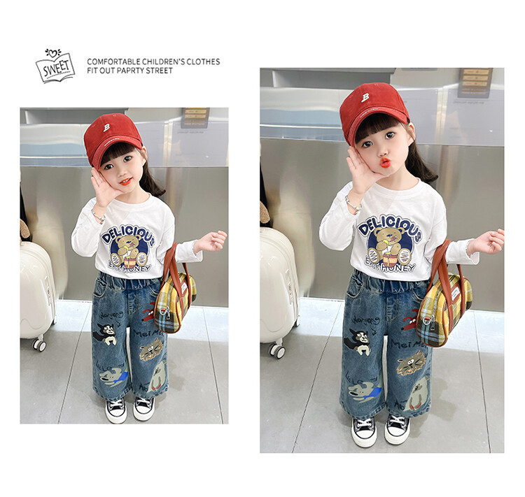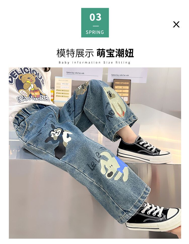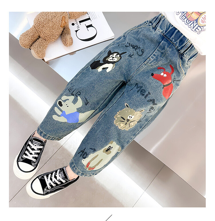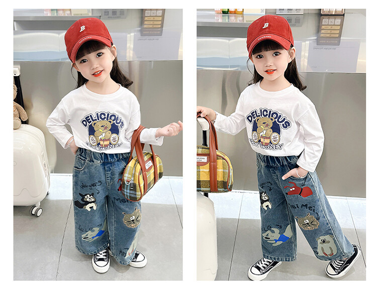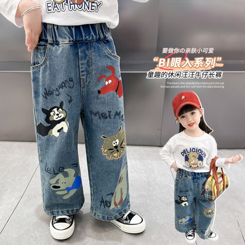어린이 의류 도매 소녀 청바지 봄과 가을 2025 새로운 어린이 인쇄 만화 바지 아기 소녀 스트레이트 바지스토어 가기