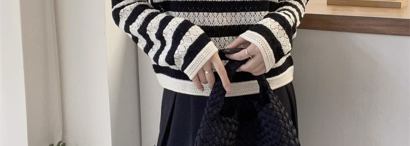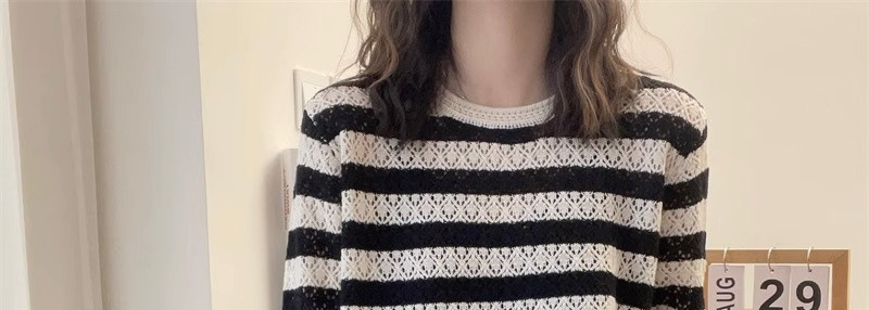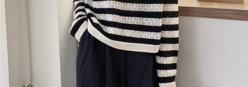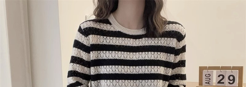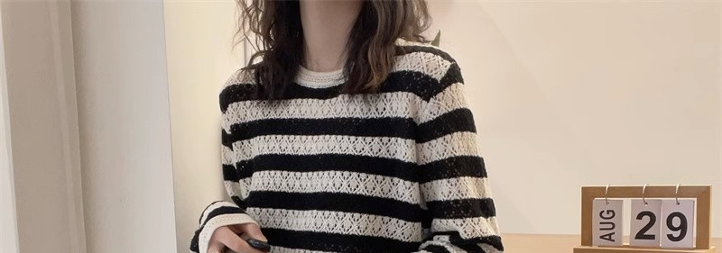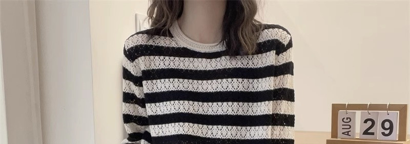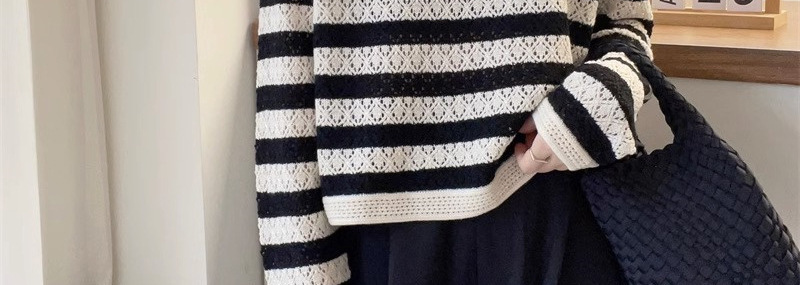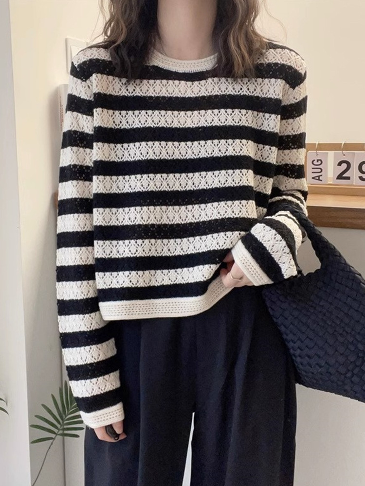 크로 셰 뜨개질 중공 스웨터 여성의 봄 패션 게으른 바람 컬러 스트라이프 스웨터 캐주얼 루즈 풀오버 탑