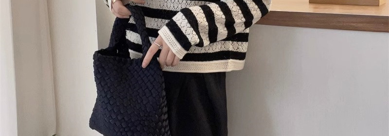 크로 셰 뜨개질 중공 스웨터 여성의 봄 패션 게으른 바람 컬러 스트라이프 스웨터 캐주얼 루즈 풀오버 탑스토어 가기