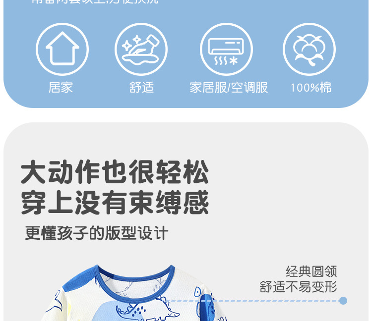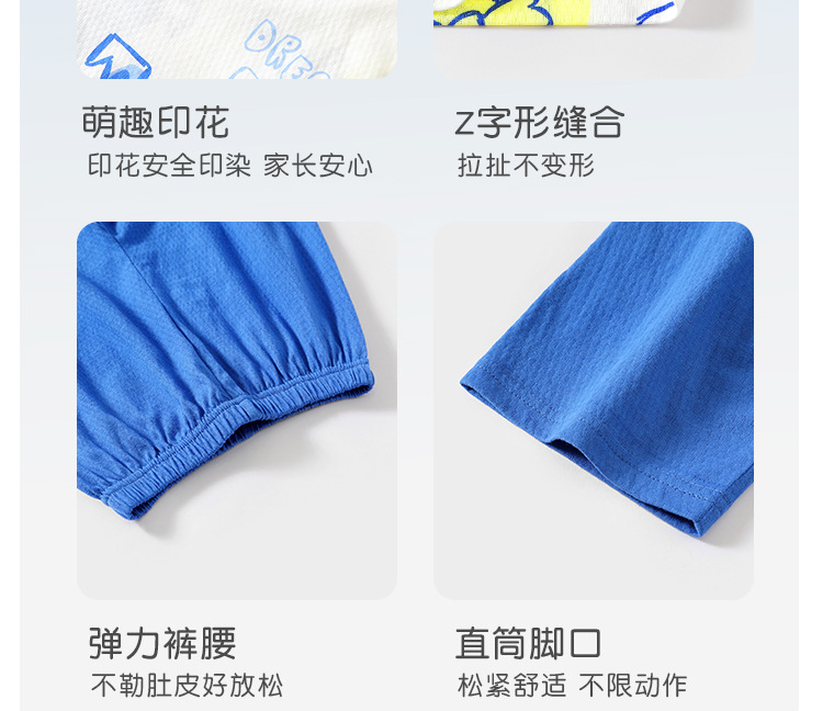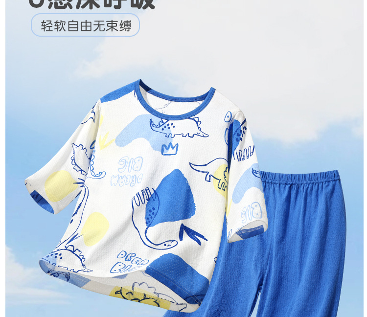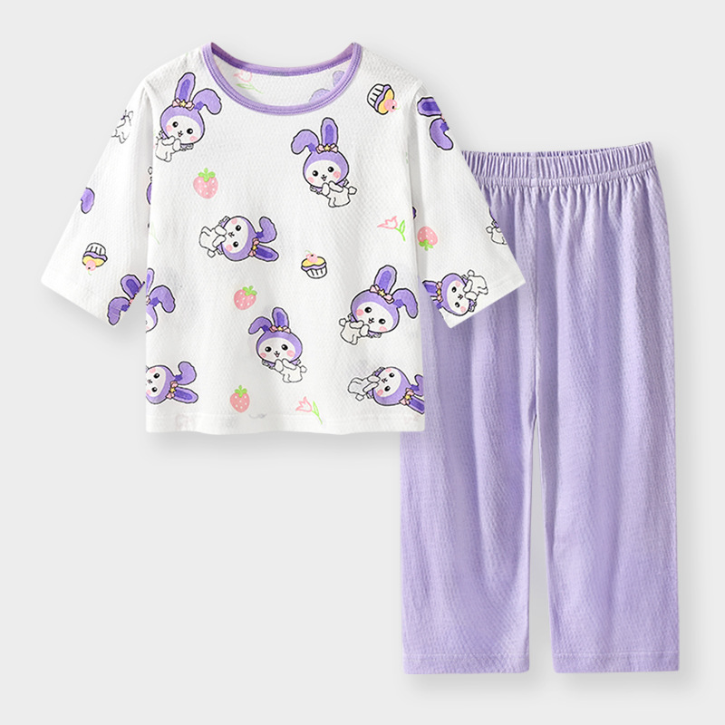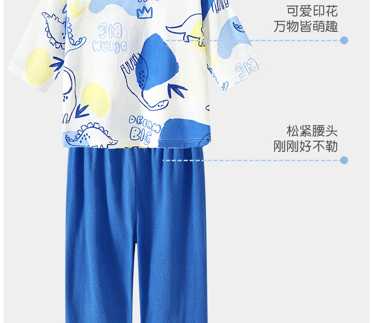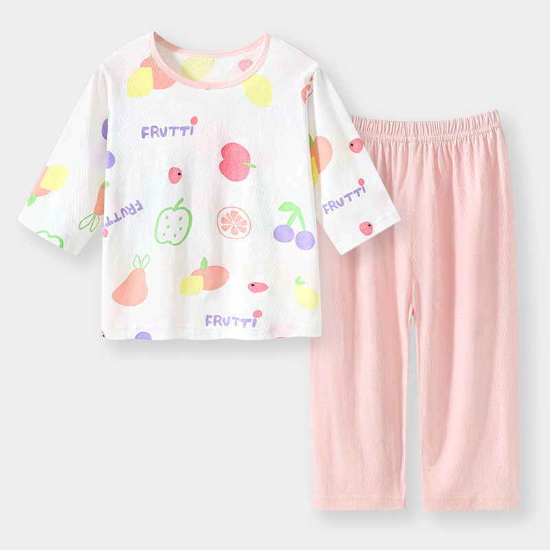 실크 새 봄과 여름 순수한면 파자마 어린이 7 점 소매 경량 통기성 홈 의류 세트 소년과 소녀를위한 에어컨 옷