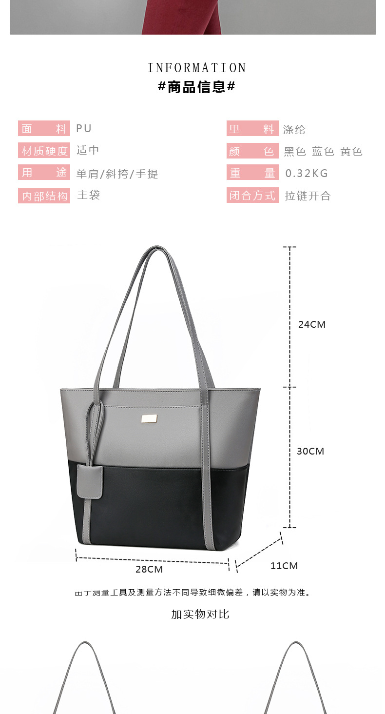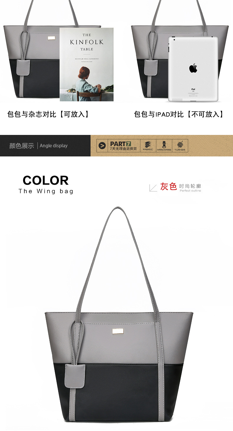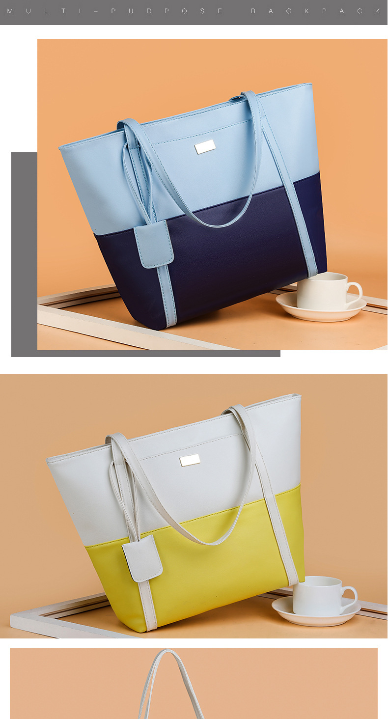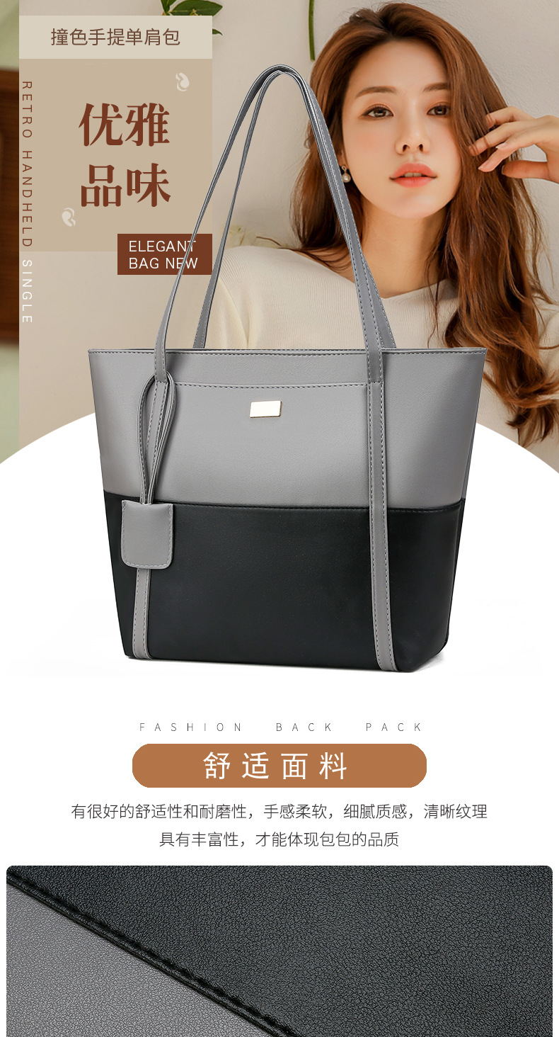 여성용 트렌디 한 가방 레트로 어깨 핸드백 2023 새로운 대용량 패션 스티칭 대비 컬러 어깨 가방 대용량스토어 가기