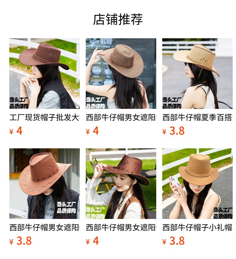 공장 재고 모자 도매 남녀 어린이용 기사 모자 자외선 차단 야외 초원 여행 어린이 서부 카우보이 모자스토어 가기