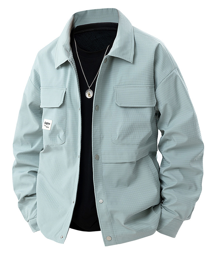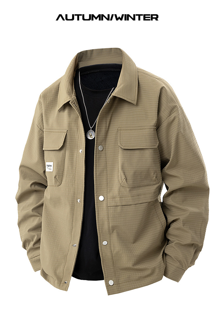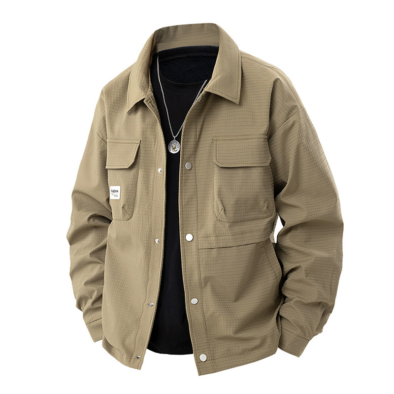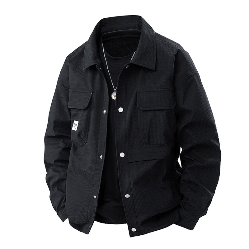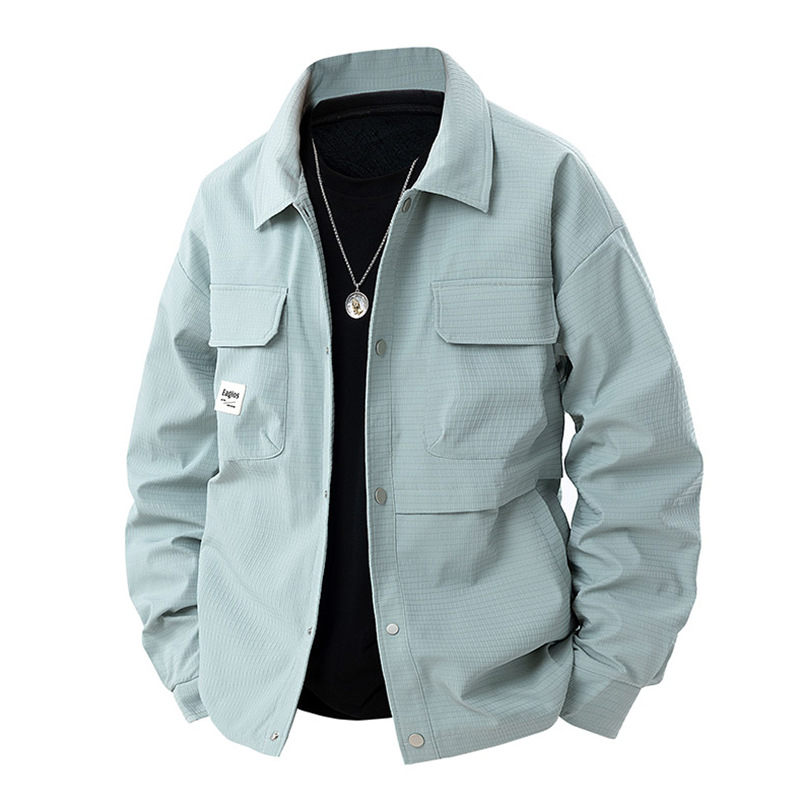 더블 라인 남성용 재킷 봄과 가을 옷깃 자켓 루즈 플러스 대형 지방 남성용 캐주얼 셔츠스토어 가기