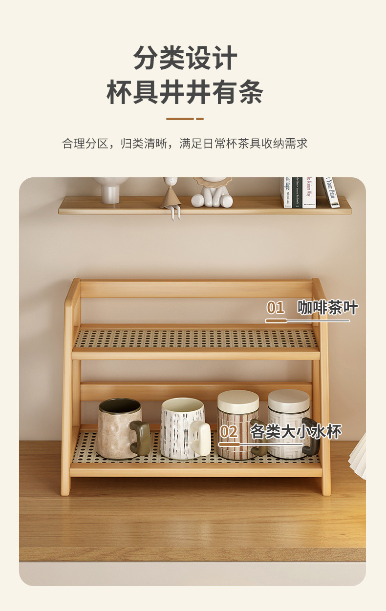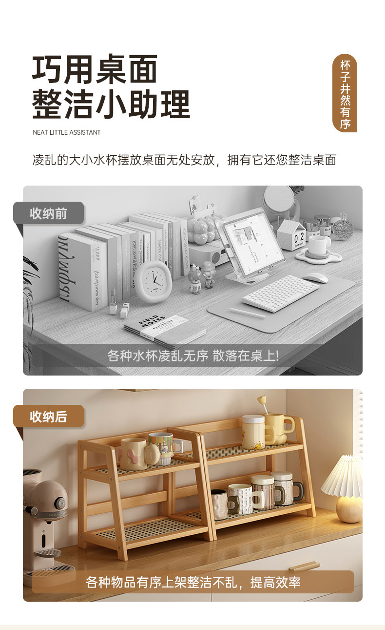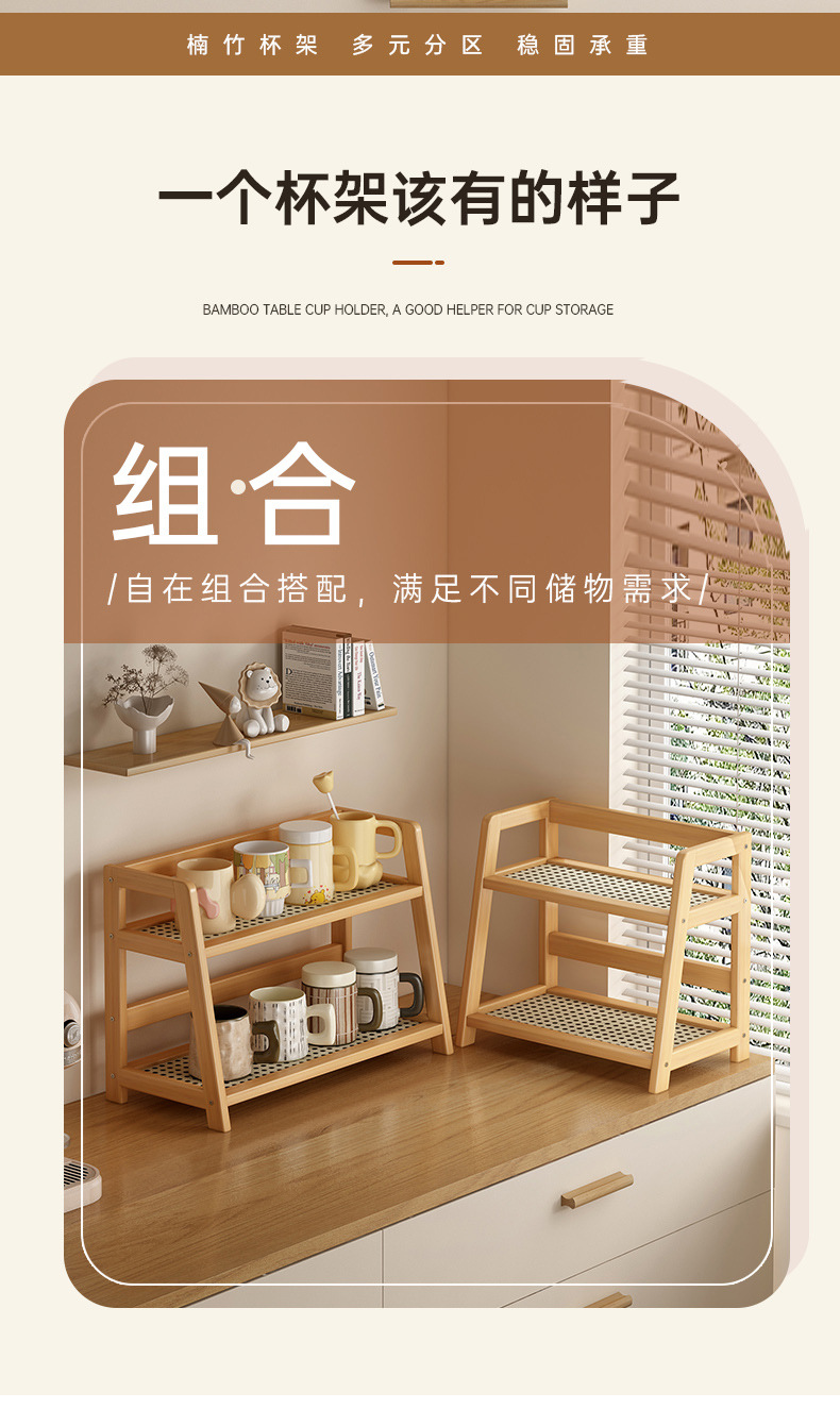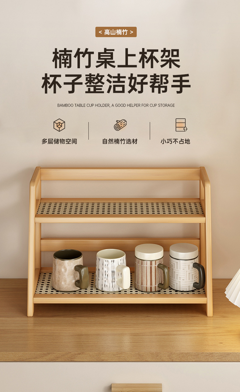 2025년 신형 수납 선반 인조 등나무 컵홀더 이중 레이어 탁상 잡화 물컵 기숙사 주방 정리