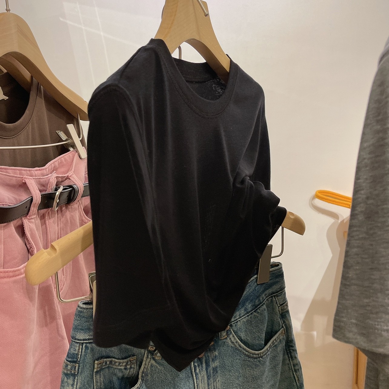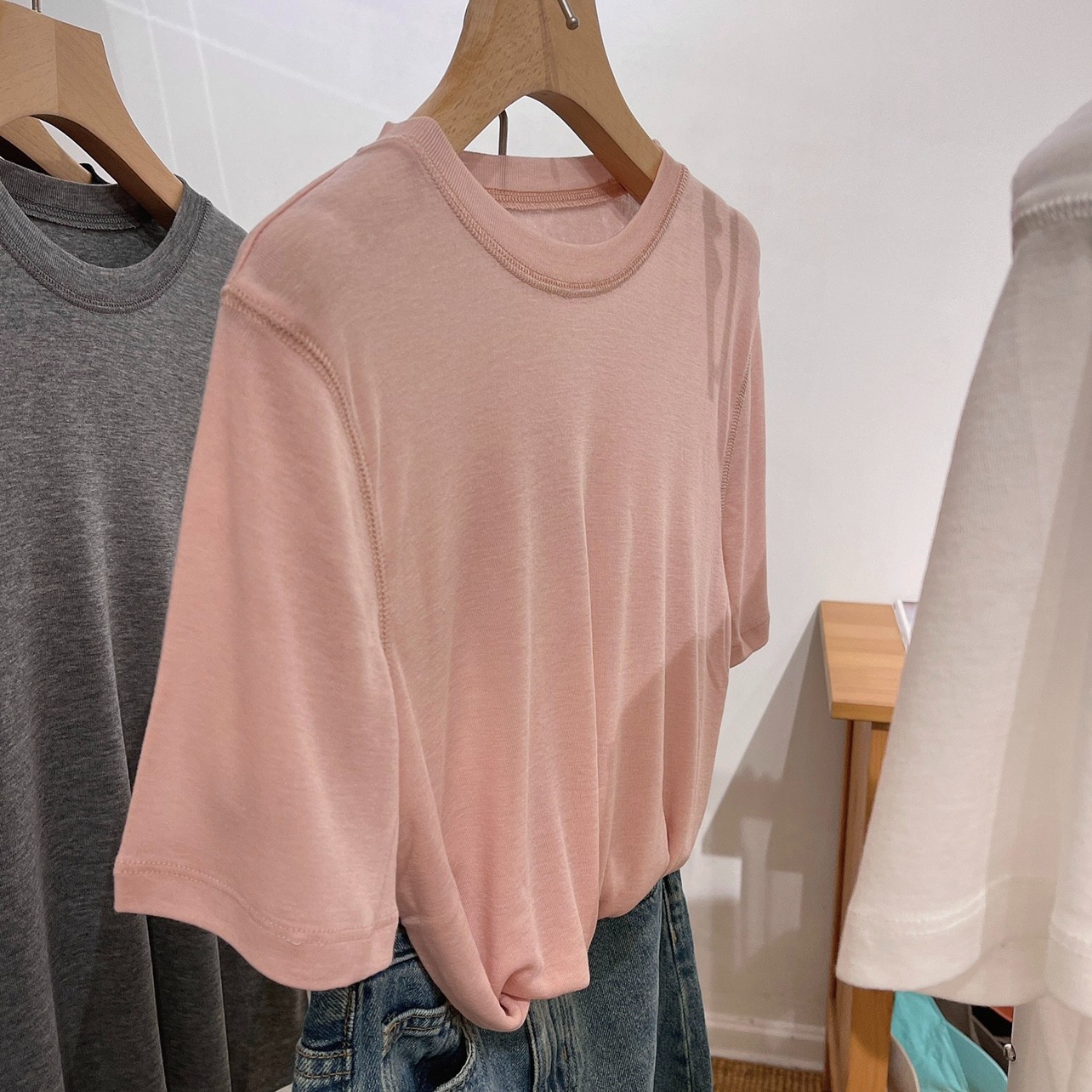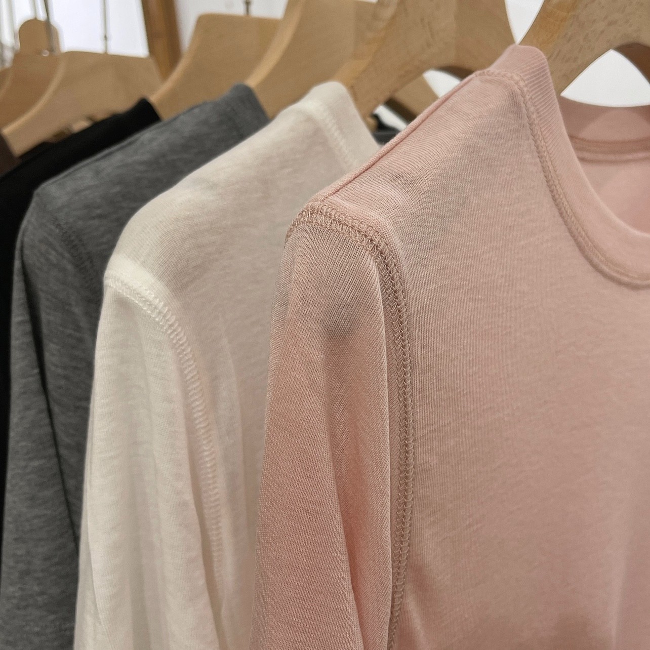 자기 유지 ~ 호흡 텐셀 울 마스크 티! 여성용 소프트 왁스 클리어 라운드 넥 풀오버 탑베이스 셔츠스토어 가기