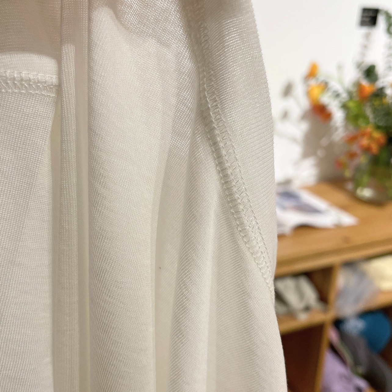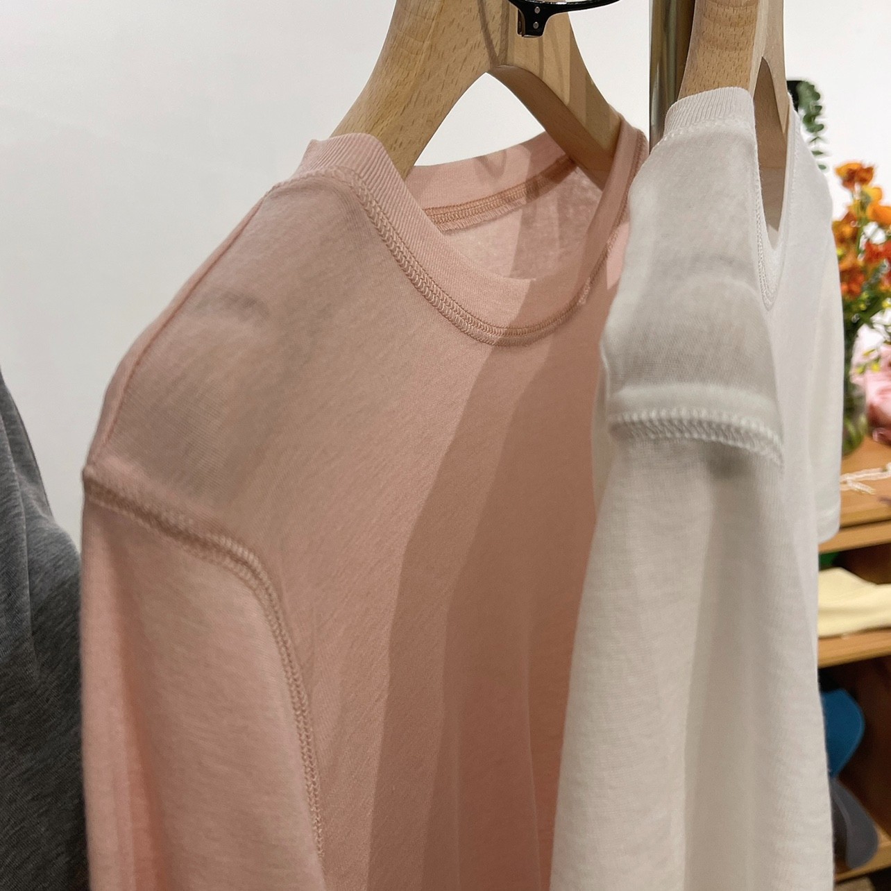 자기 유지 ~ 호흡 텐셀 울 마스크 티! 여성용 소프트 왁스 클리어 라운드 넥 풀오버 탑베이스 셔츠