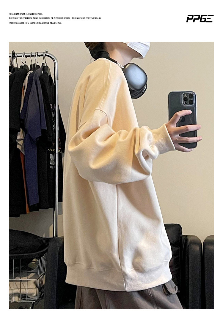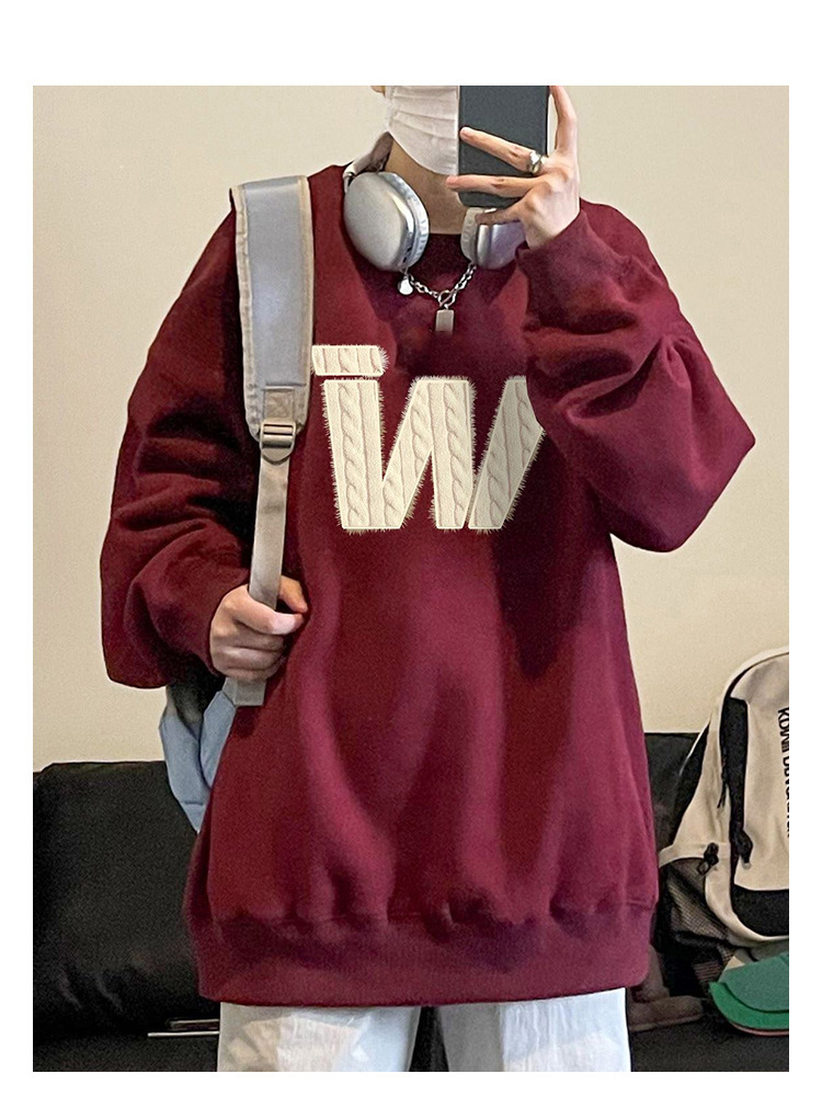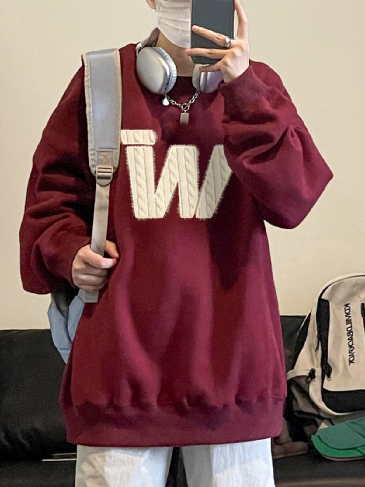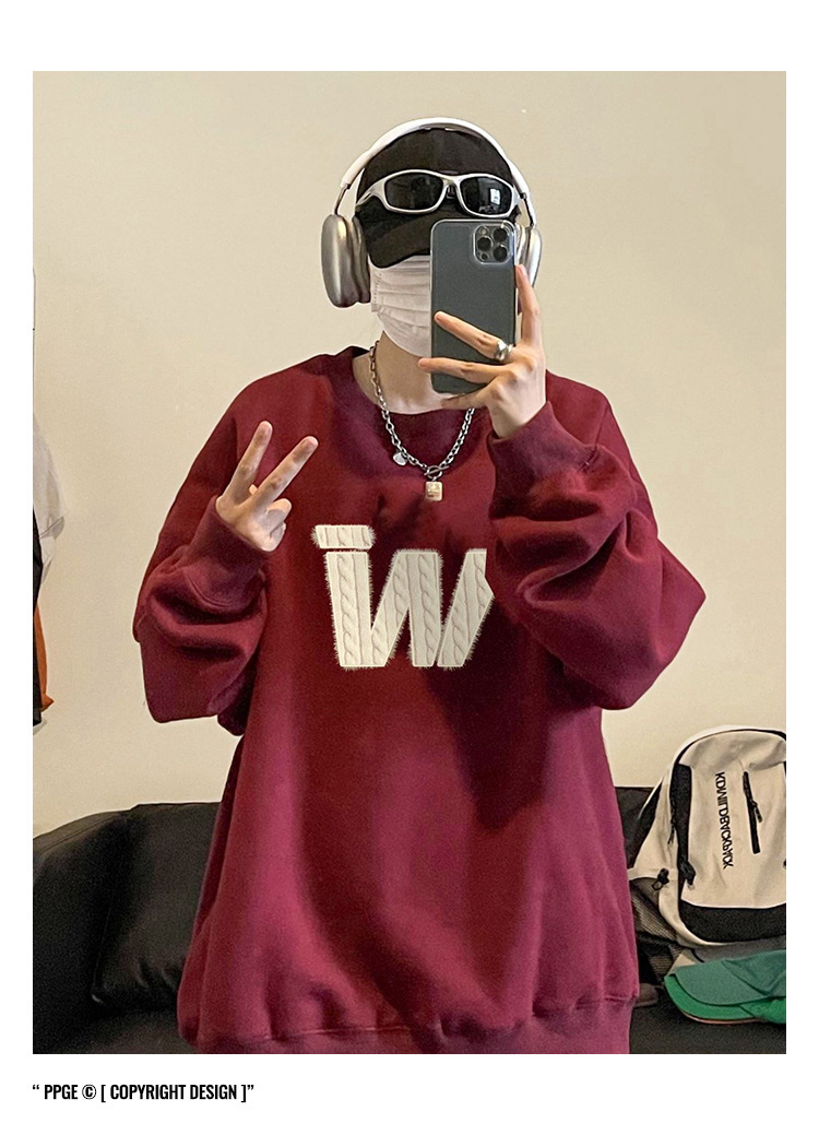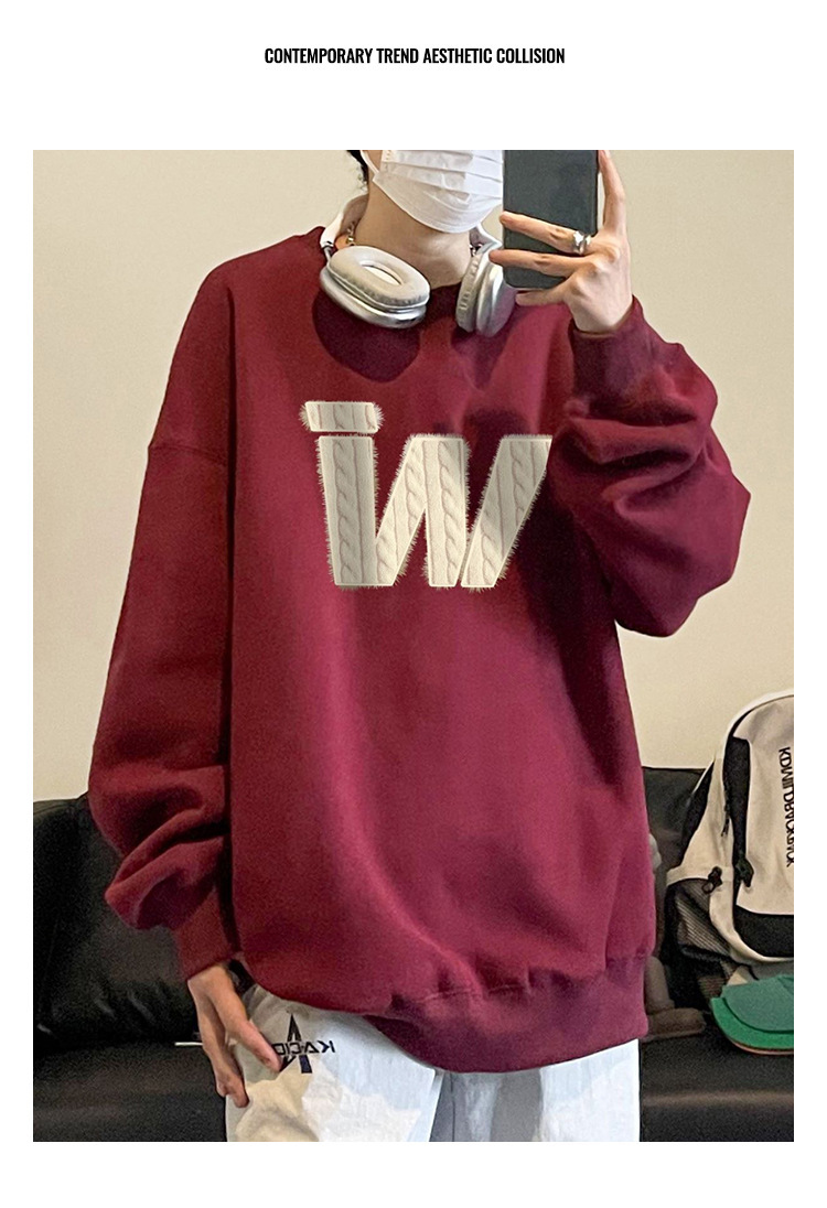 오버 사이즈 미국 레트로 버건디 스웨트 셔츠 소년 봄 가을 겨울 무거운 코트 크루 넥 긴 소매 최고 패션 브랜드스토어 가기