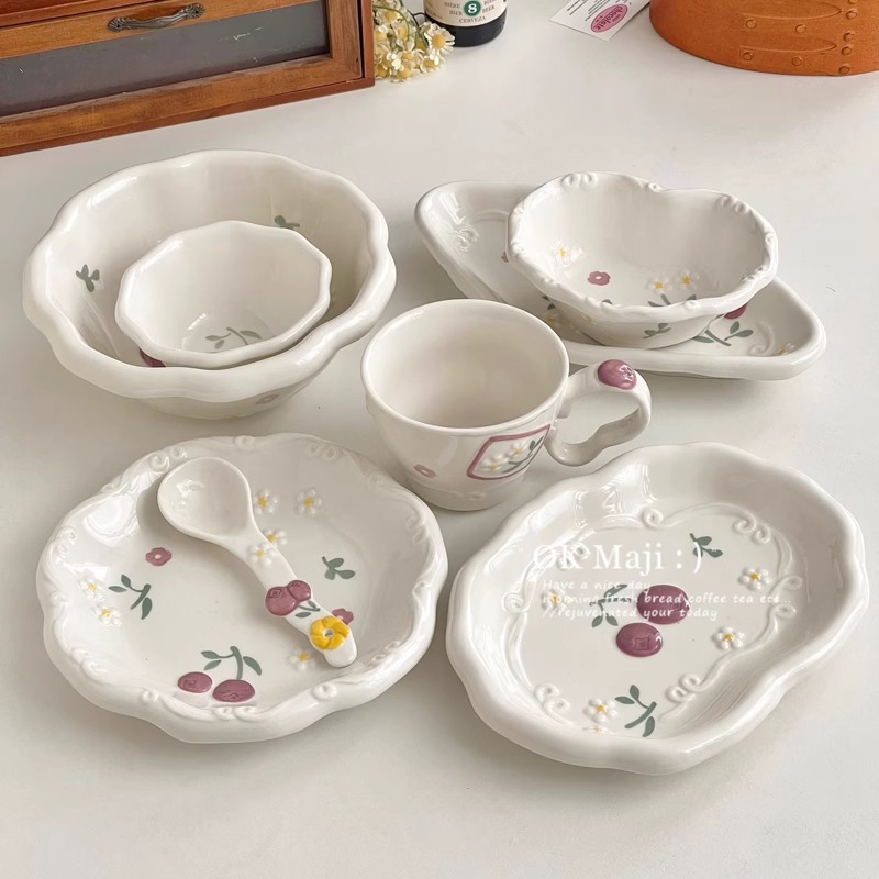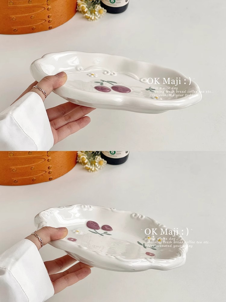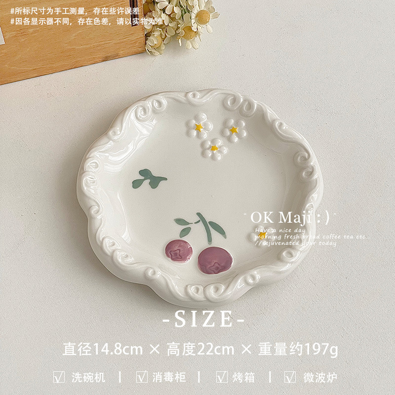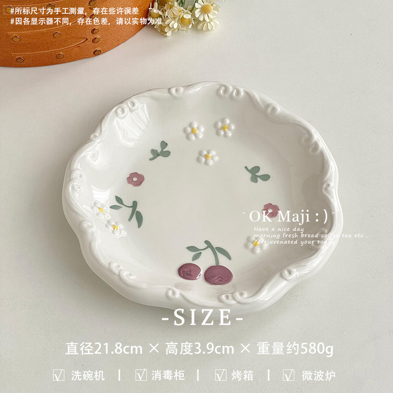 높은 가치의 양각 디너 플레이트 스타일 플레이트 의식 아침 식사 플레이트 가정용 언더 유약 컬러 세라믹 플레이트 디저트 플레이트스토어 가기