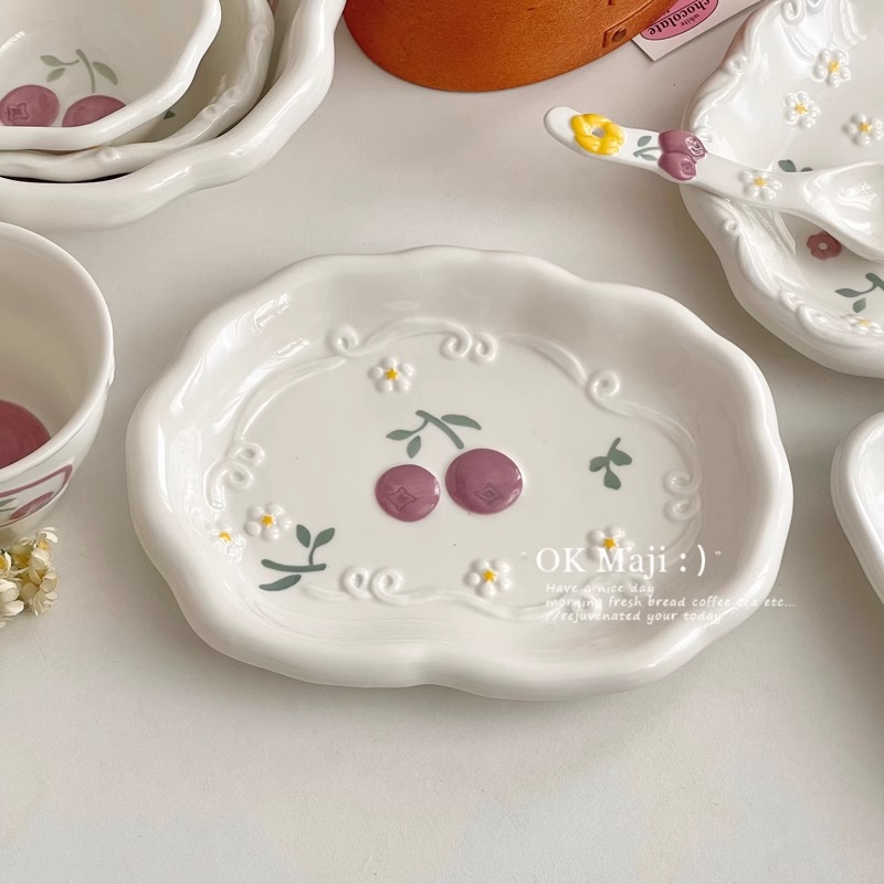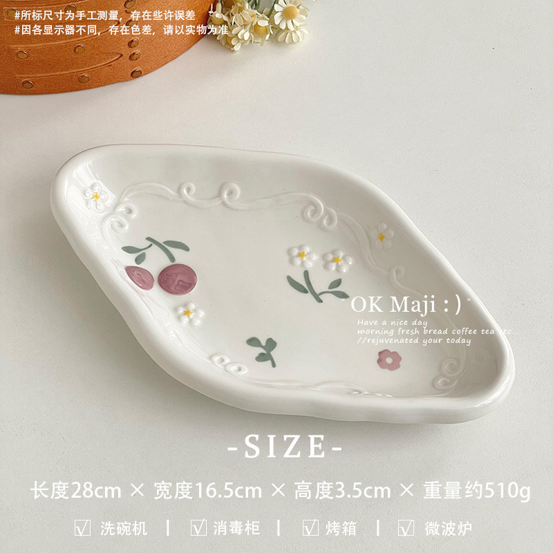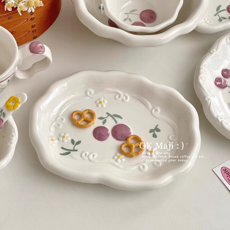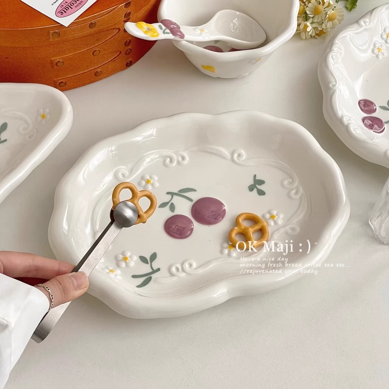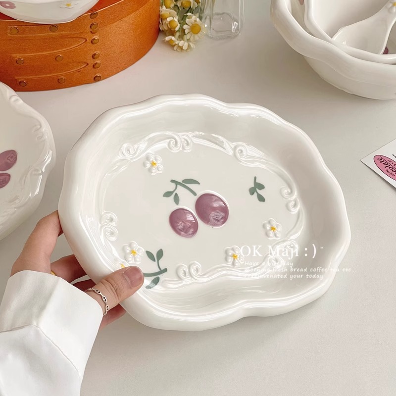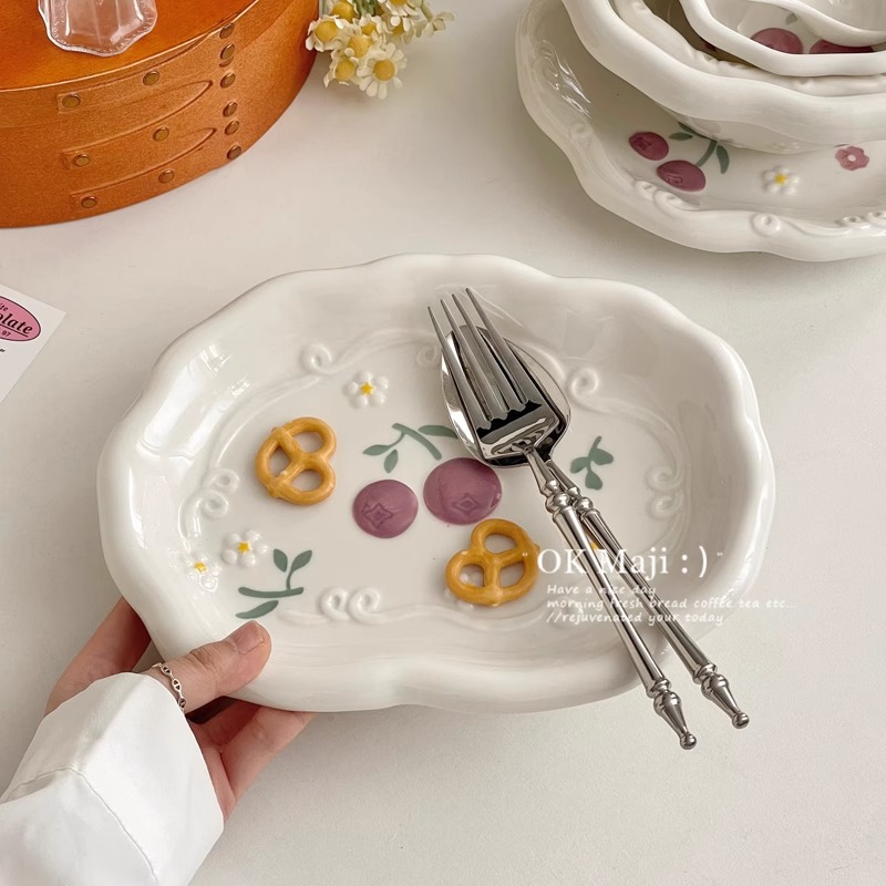 높은 가치의 양각 디너 플레이트 스타일 플레이트 의식 아침 식사 플레이트 가정용 언더 유약 컬러 세라믹 플레이트 디저트 플레이트