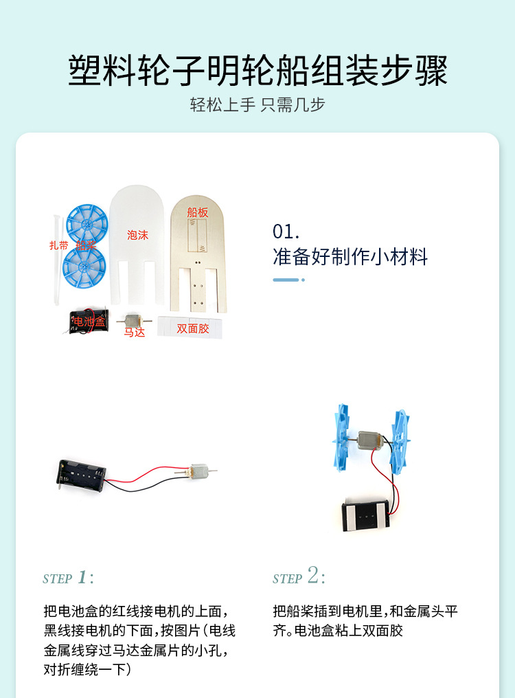 과학 소규모 실험 세트 제조업체 직접 판매 더블 패들 전기 패들 보트 초등 및 중등 학교 조립 재료 과학 실험스토어 가기
