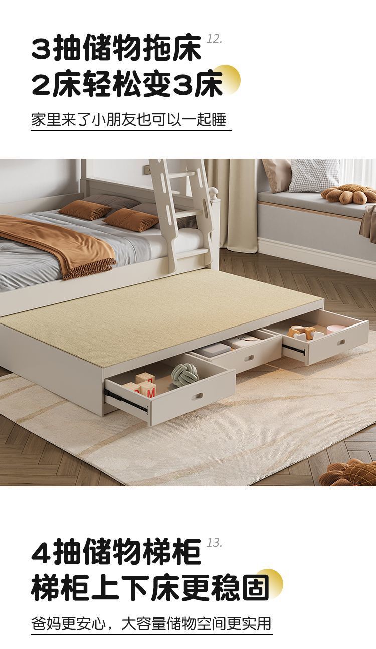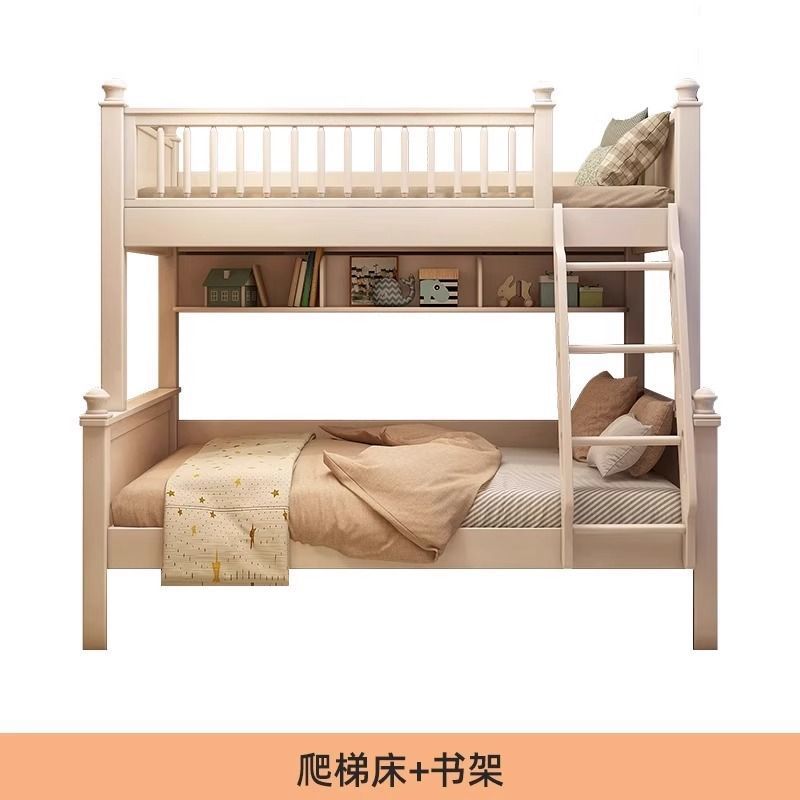• 원목 풀 가드레일 침대 + 사다리 캐비닛 + 견인 침대 / 무료 이층 침대 매트리스 + 책장