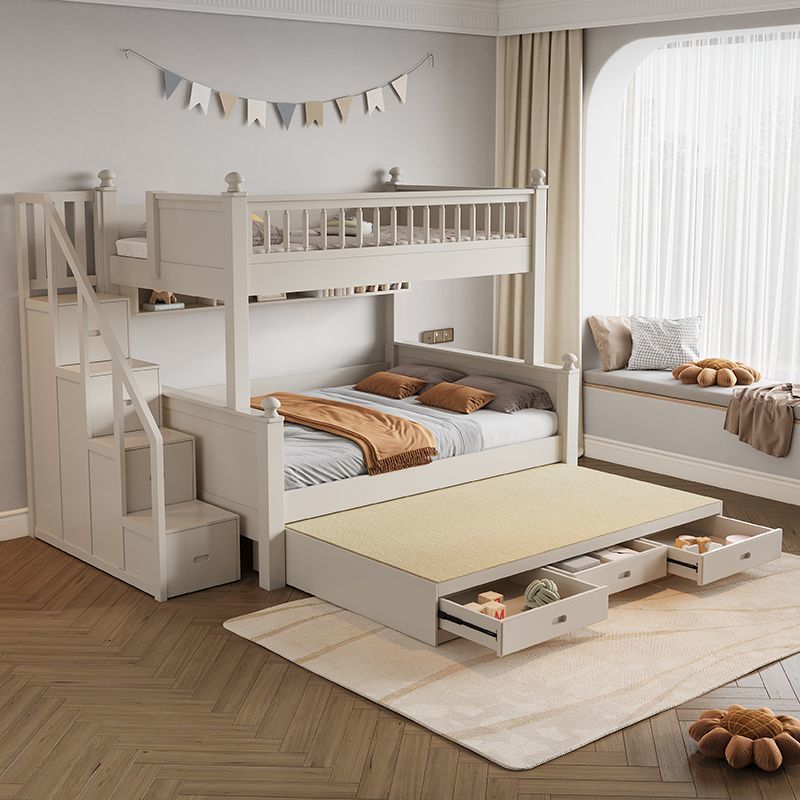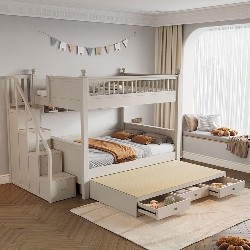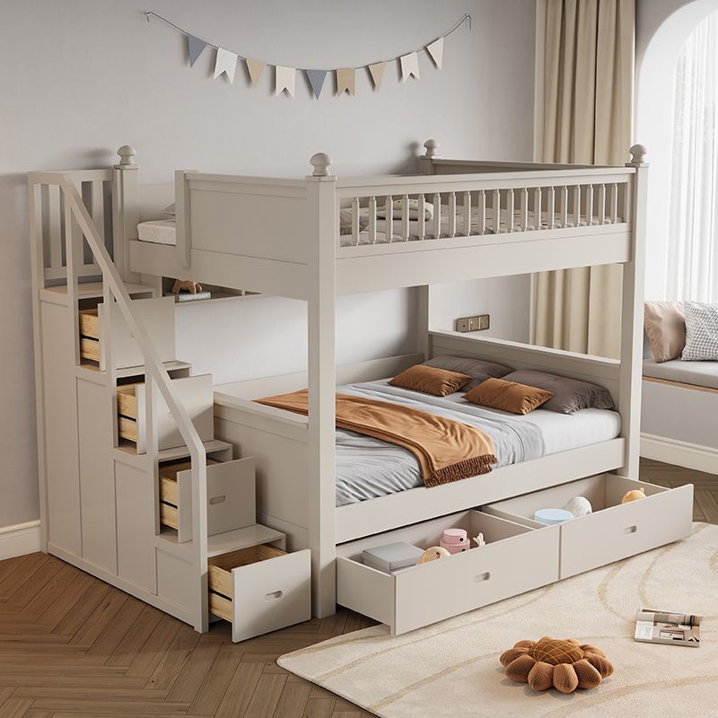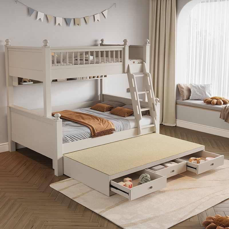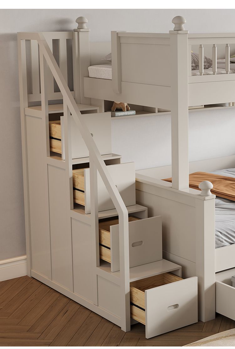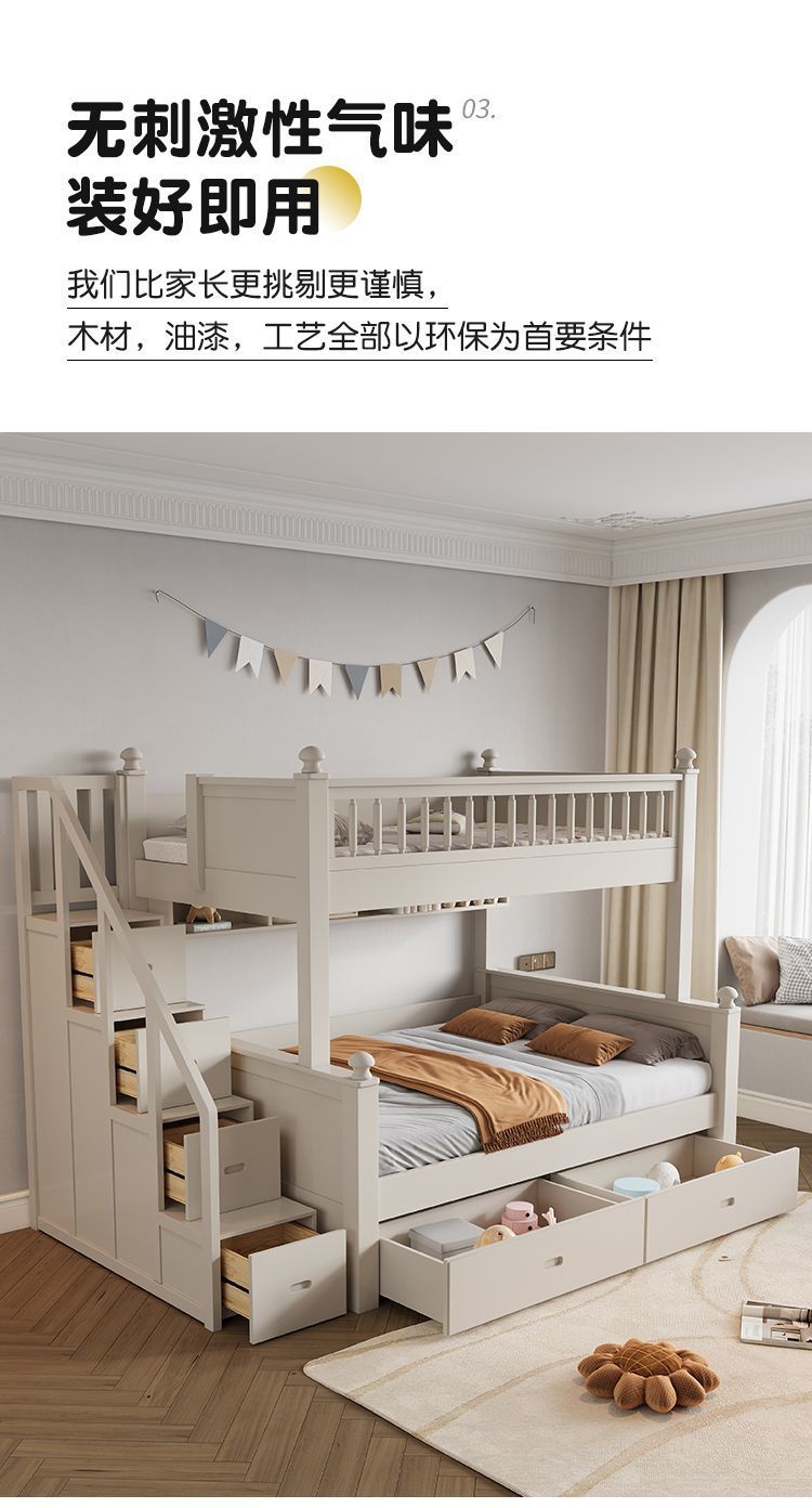 • 원목 풀 가드레일 침대 + 사다리 캐비닛 + 더블 서랍 / 무료 이층 침대 매트리스 + 책장