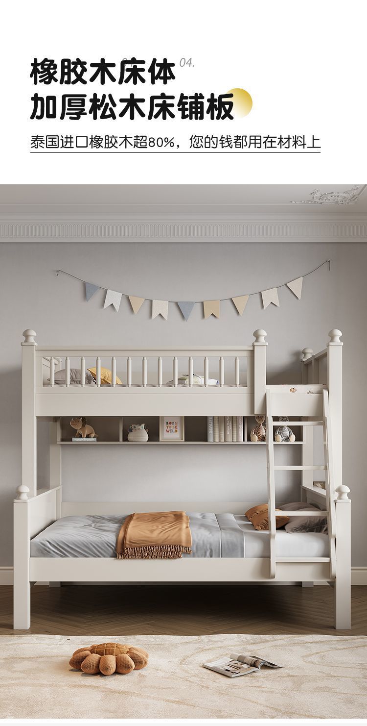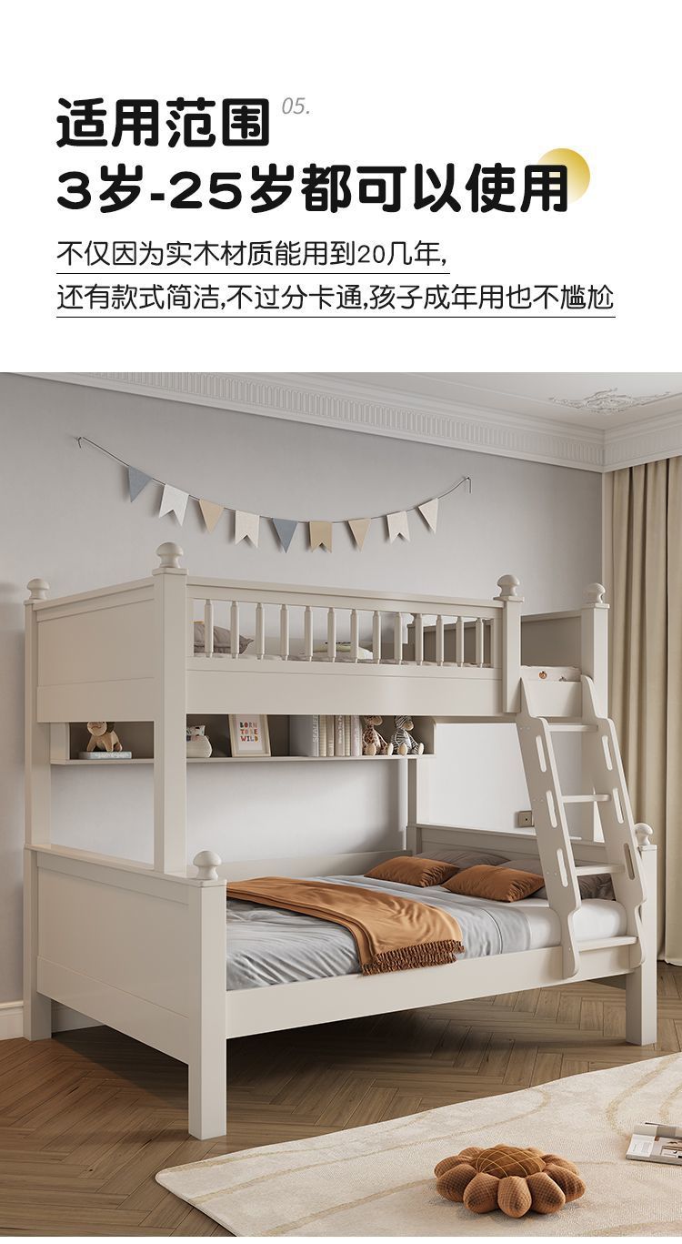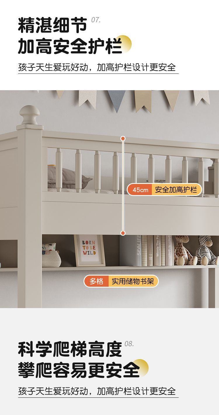 • 원목 풀 가드레일 침대 + 사다리 캐비닛에는 이층 침대 매트리스 + 책장이 함께 제공됩니다.