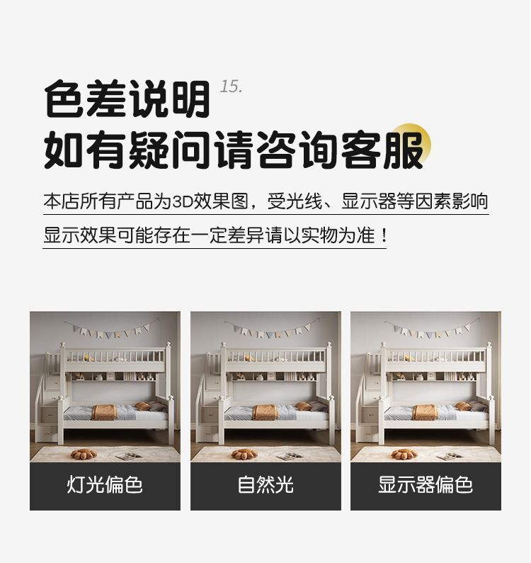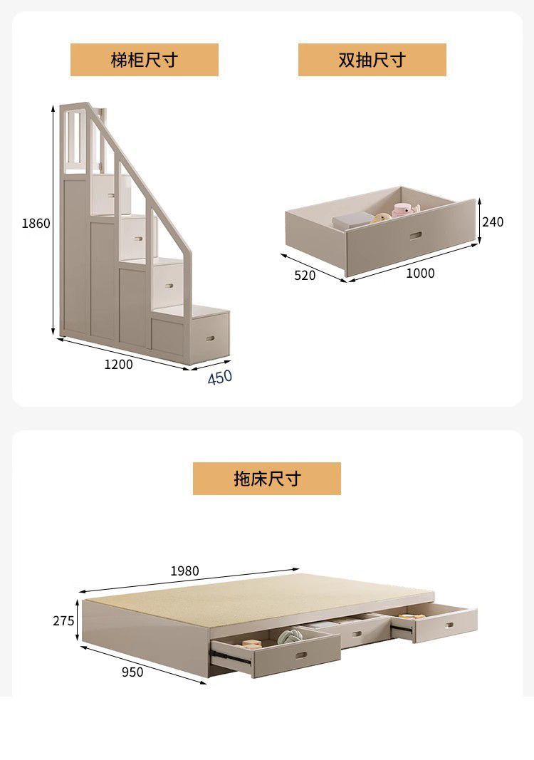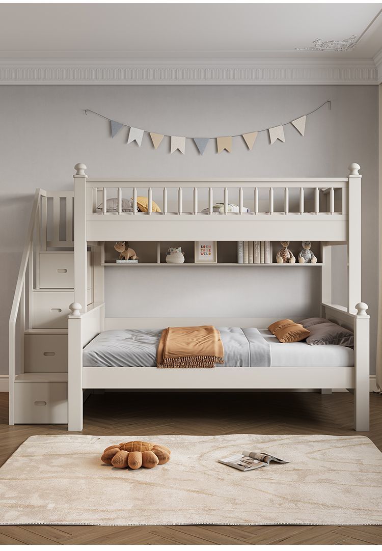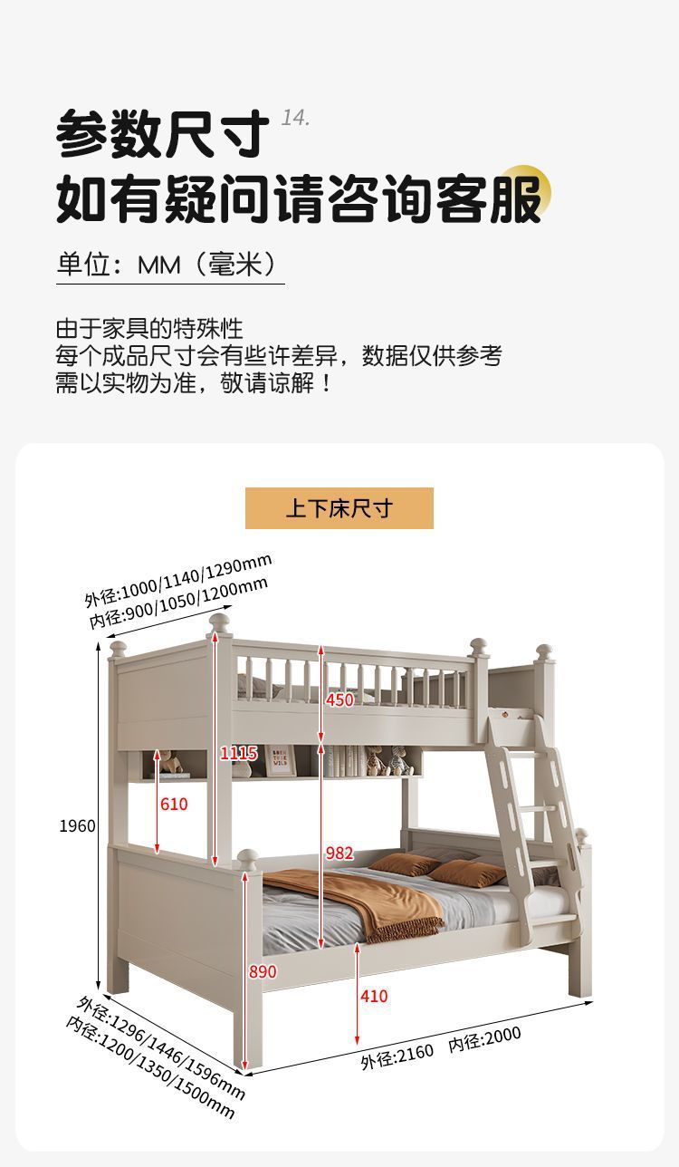 • 원목 풀 가드레일 침대 + 사다리 캐비닛에는 이층 침대 매트리스 + 책장이 함께 제공됩니다.