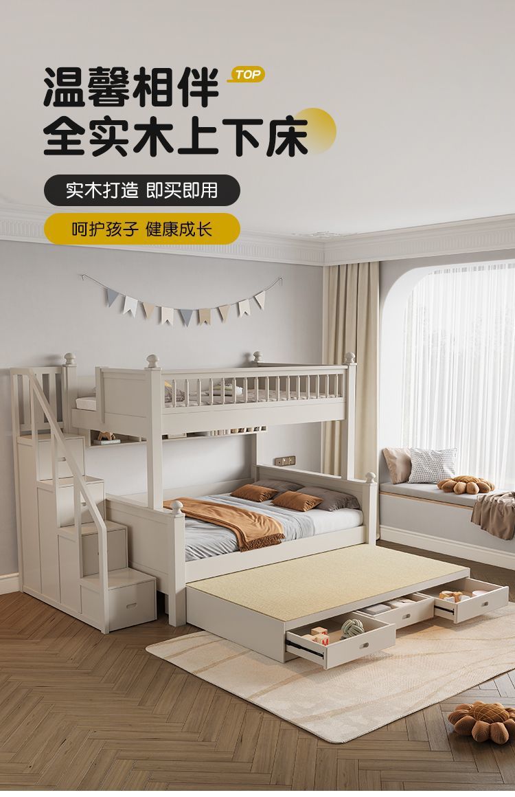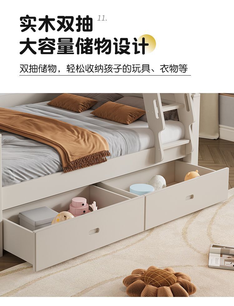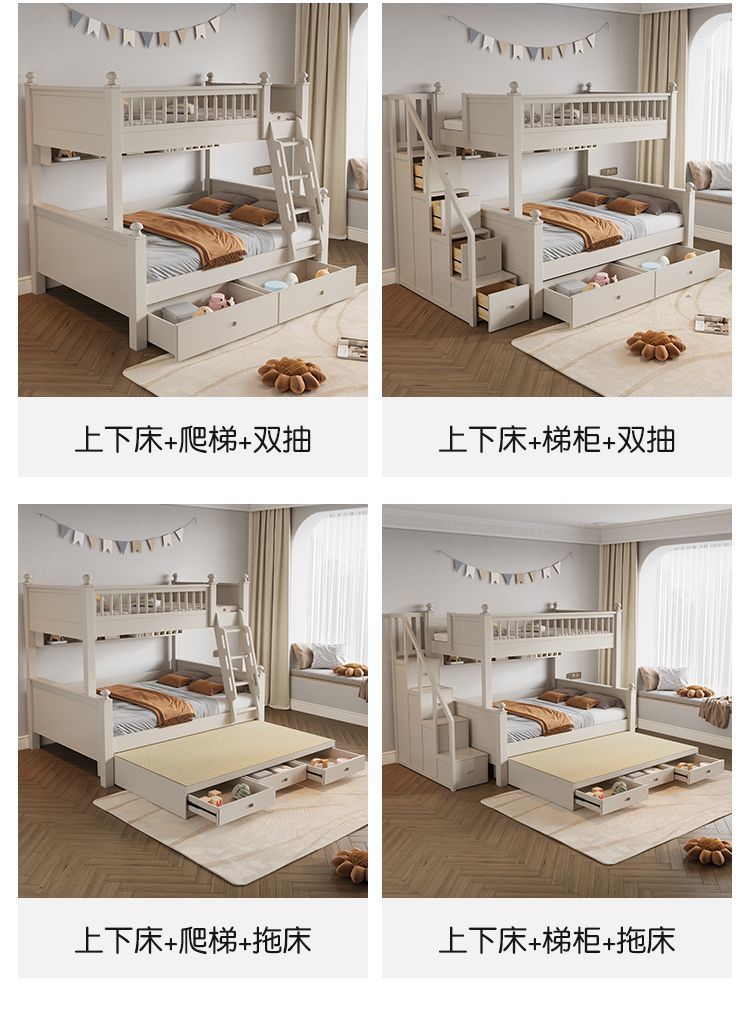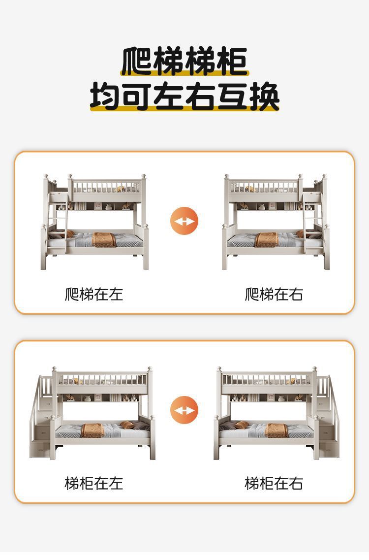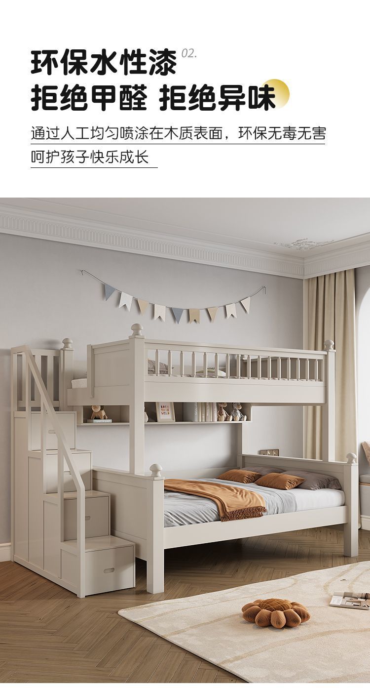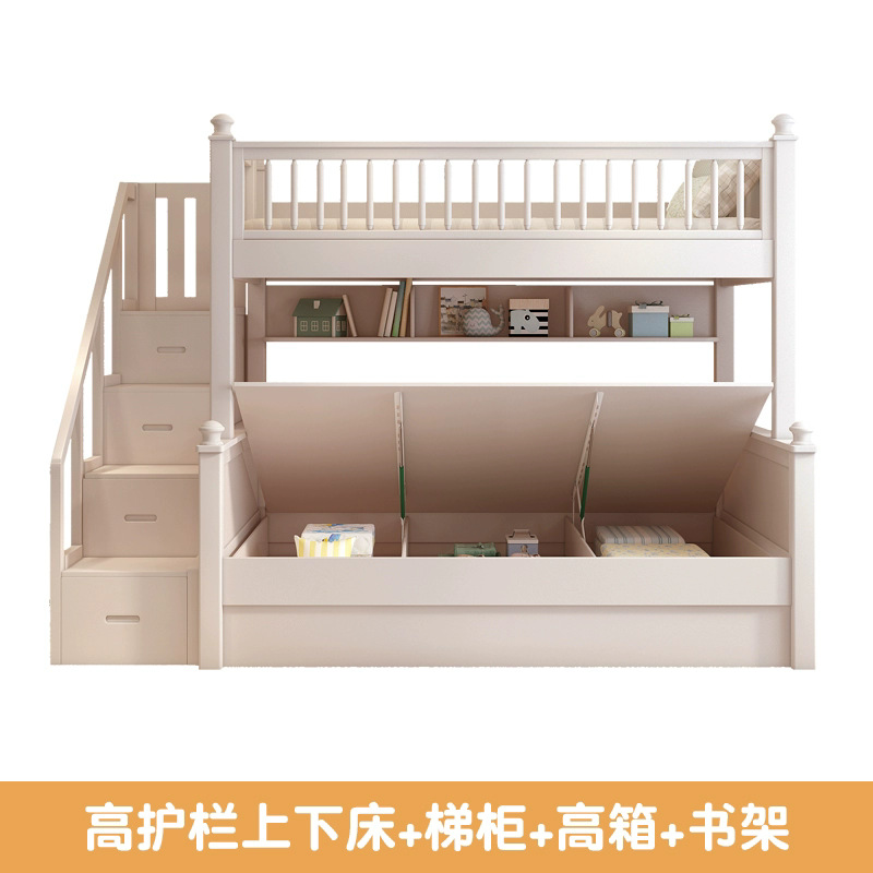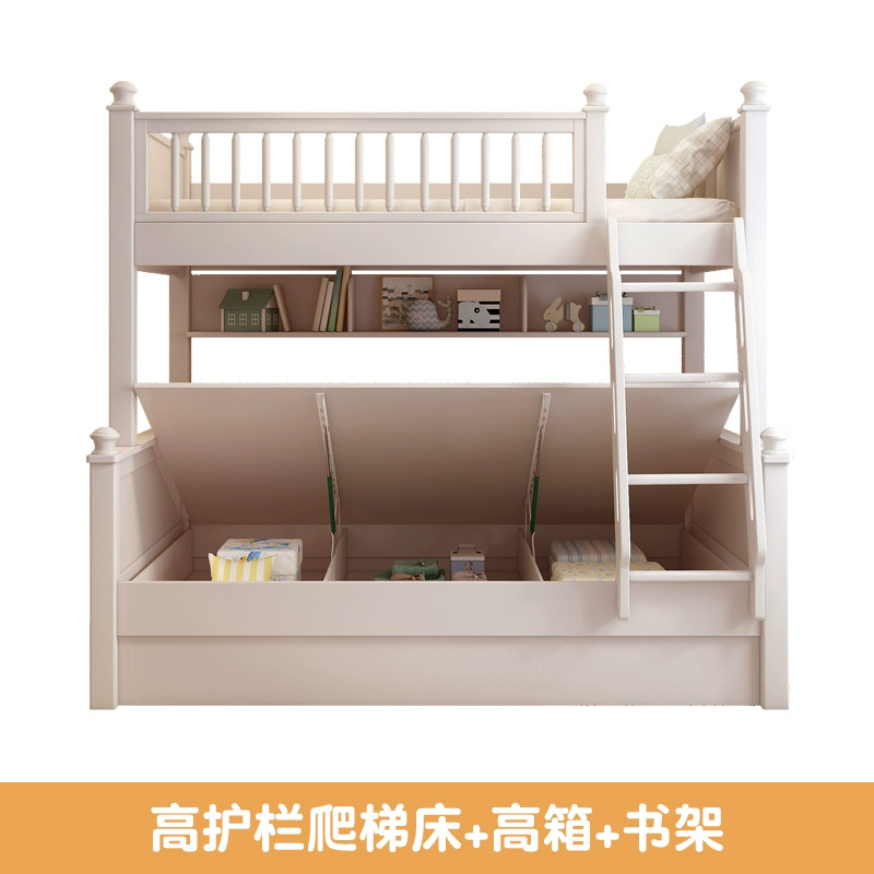 • 원목 풀 가드레일 침대 + 사다리 캐비닛 + 상자 / 무료 이층 침대 매트리스 + 책장
