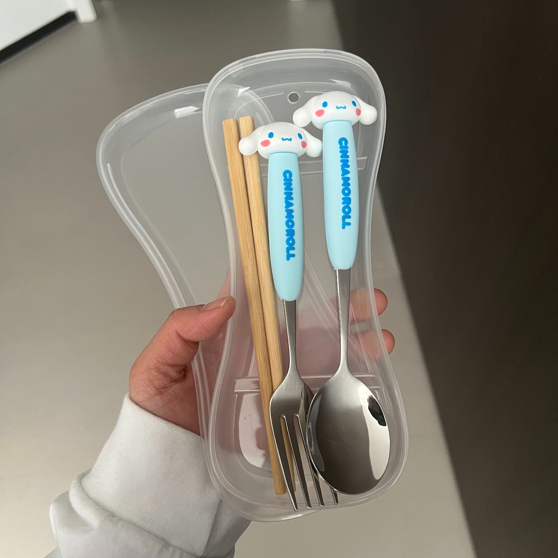 • 정품 보라색 쿠로미 숟가락과 젓가락 둥근 머리 상자