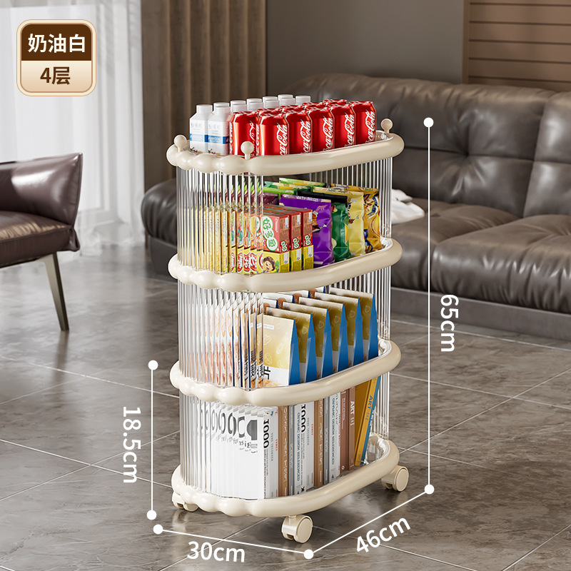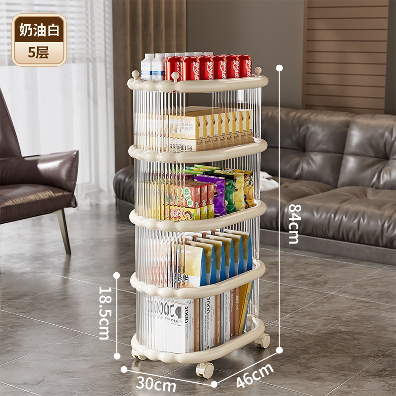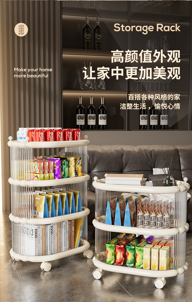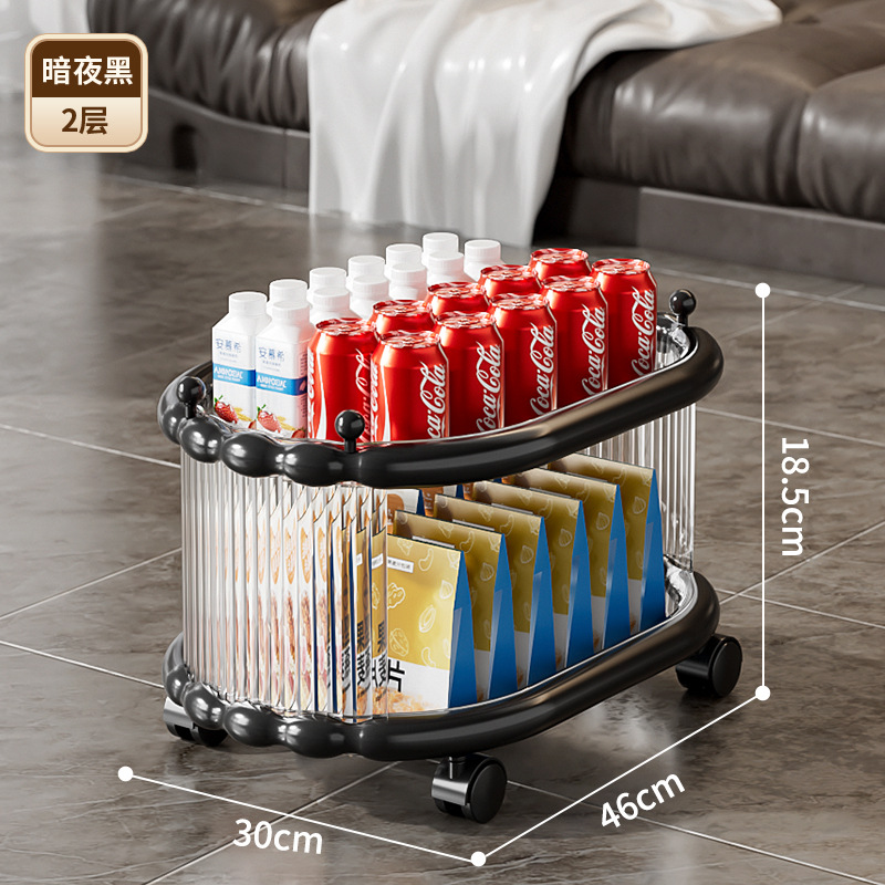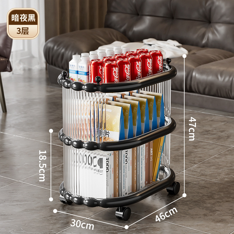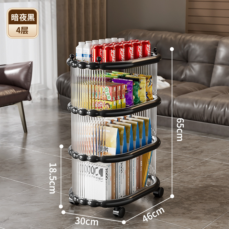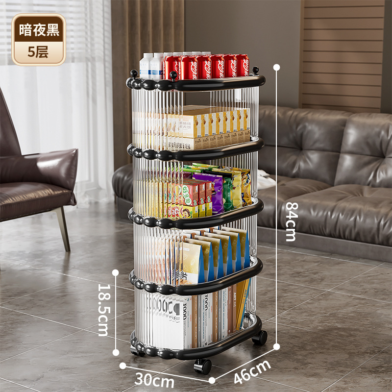 다층 간단한 모바일 스낵 스토리지 랙 스토리지 랙 플로어 스탠딩 트롤리 아크릴 스토리지 유물 거실 선반