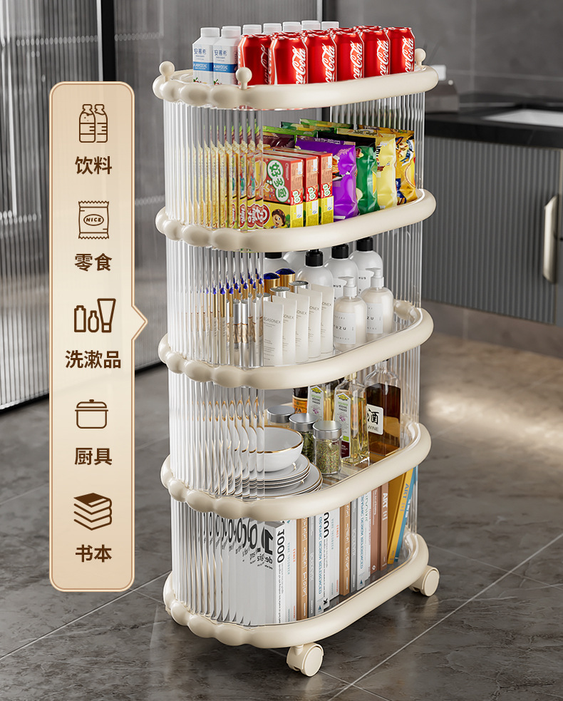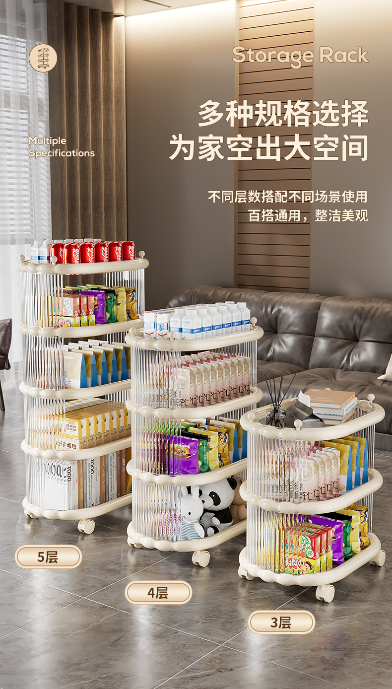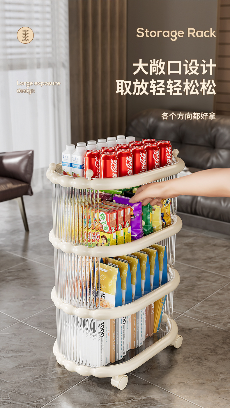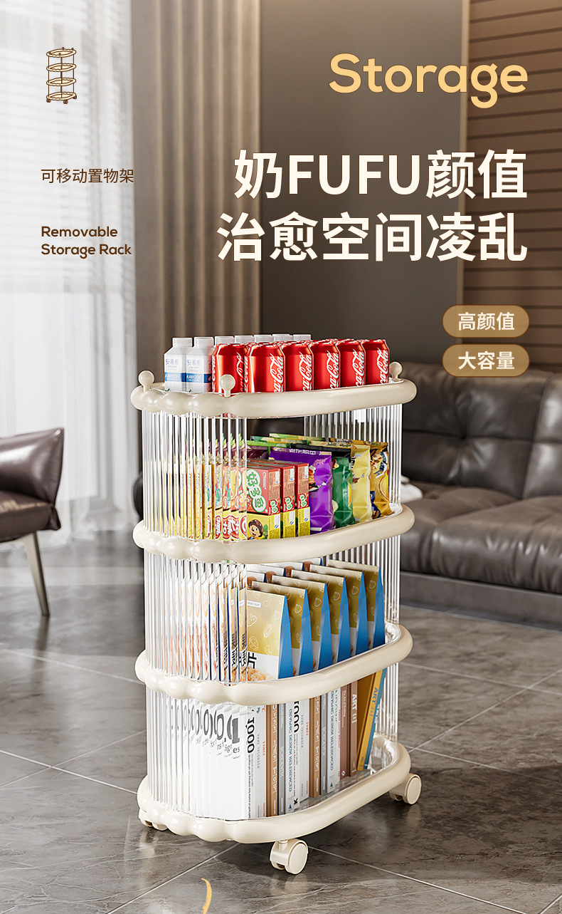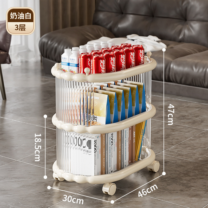 다층 간단한 모바일 스낵 스토리지 랙 스토리지 랙 플로어 스탠딩 트롤리 아크릴 스토리지 유물 거실 선반