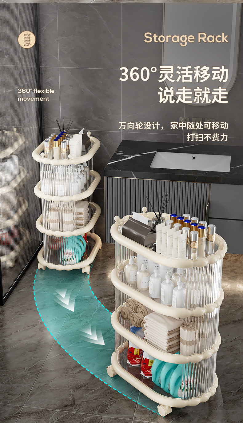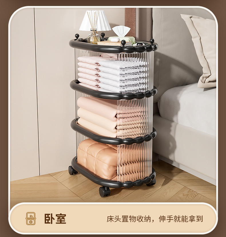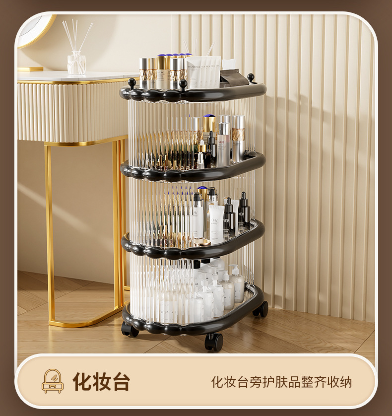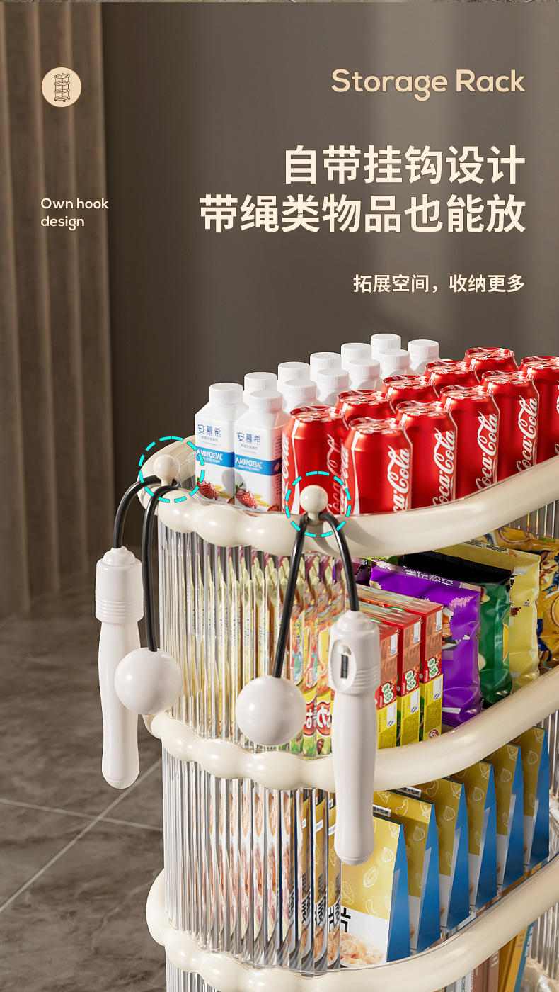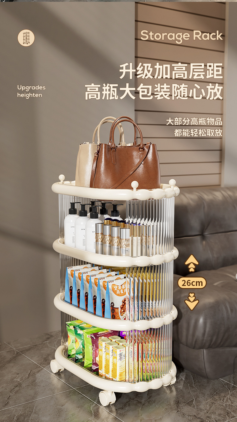 다층 간단한 모바일 스낵 스토리지 랙 스토리지 랙 플로어 스탠딩 트롤리 아크릴 스토리지 유물 거실 선반