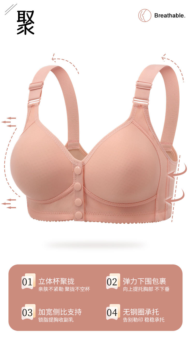 국경 간 새로운 무테 얇은 고정 컵 프론트 오프닝 버클 어머니 중년 및 노인 플러스 사이즈 탑 브래지어 속옷을 수집합니다.스토어 가기