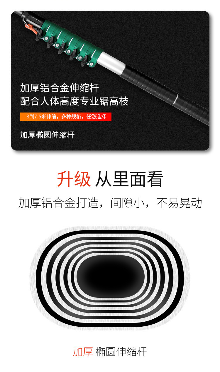 • Mudster Teflon 7.5m 두꺼운 타원형 막대 높은 가지 톱
