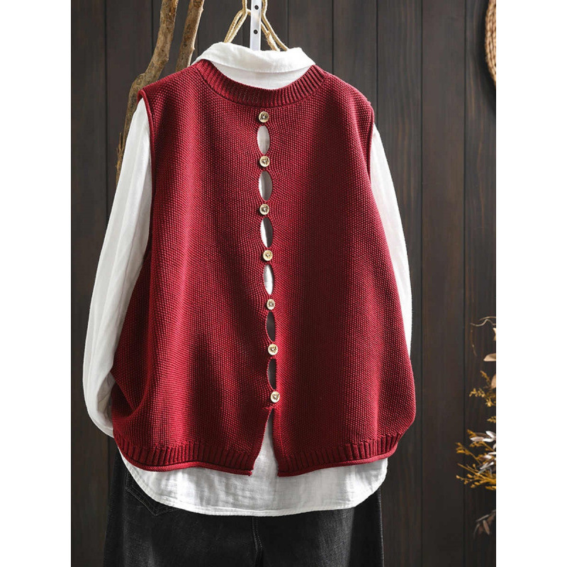 백 버튼 코튼 니트 조끼 여성의 느슨한 대형 버전 고기 커버 조끼 봄 캐주얼 올 매치 민소매 조끼