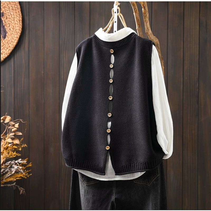 백 버튼 코튼 니트 조끼 여성의 느슨한 대형 버전 고기 커버 조끼 봄 캐주얼 올 매치 민소매 조끼스토어 가기