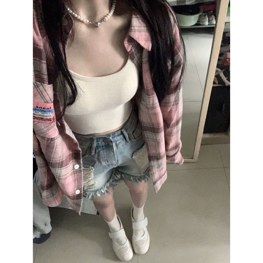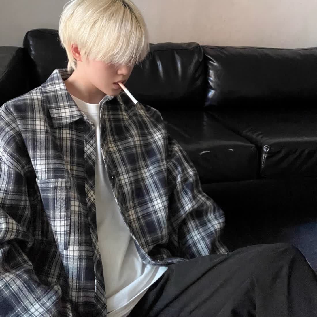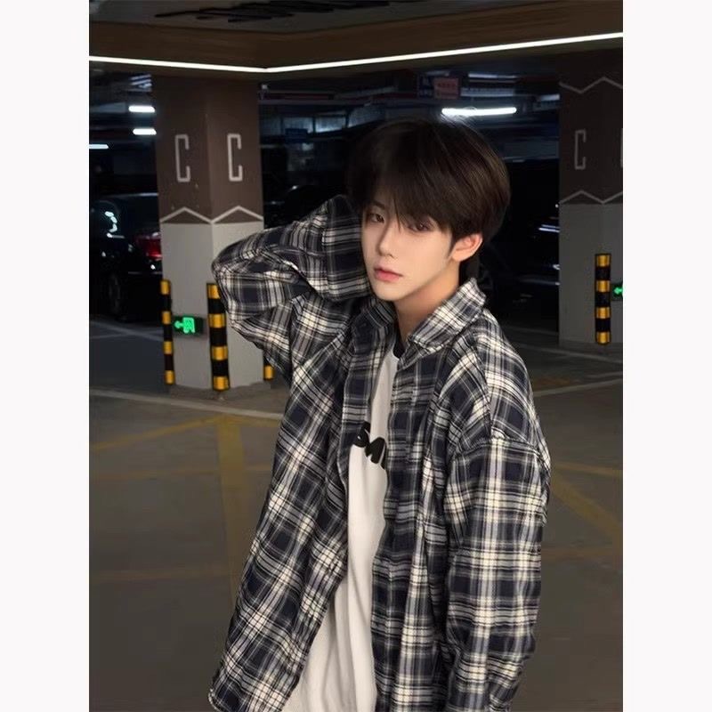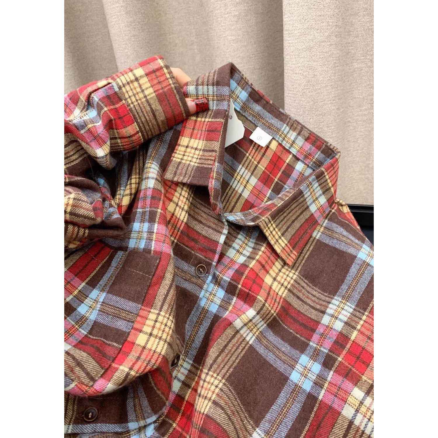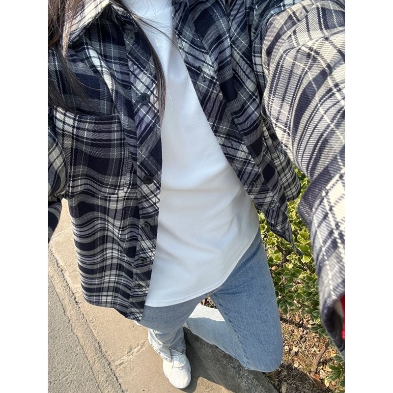 【공장 직판-맞춤 제작 가능】블루 체크 셔츠 재킷 여성용 컬리지 스타일 루즈핏 레이어드 베이스 재킷스토어 가기
