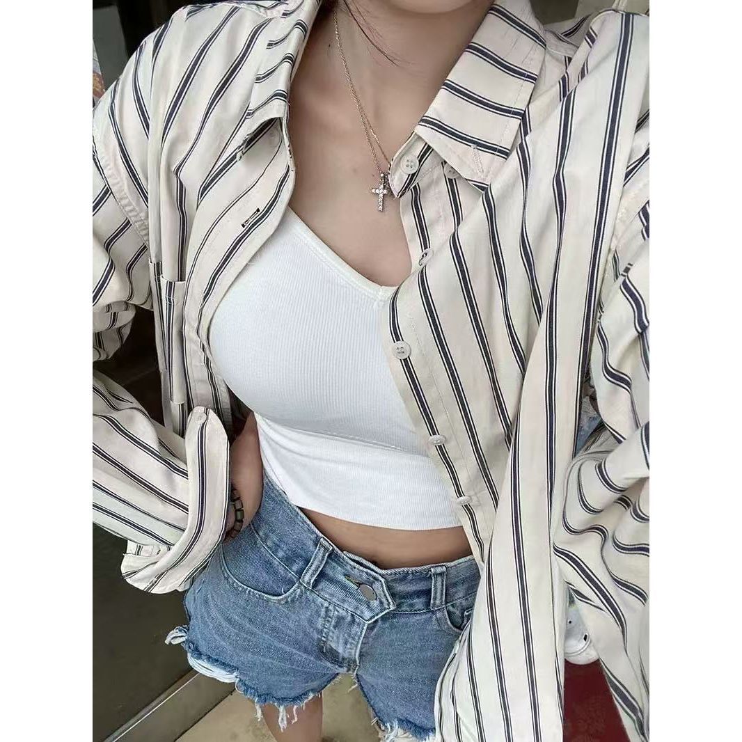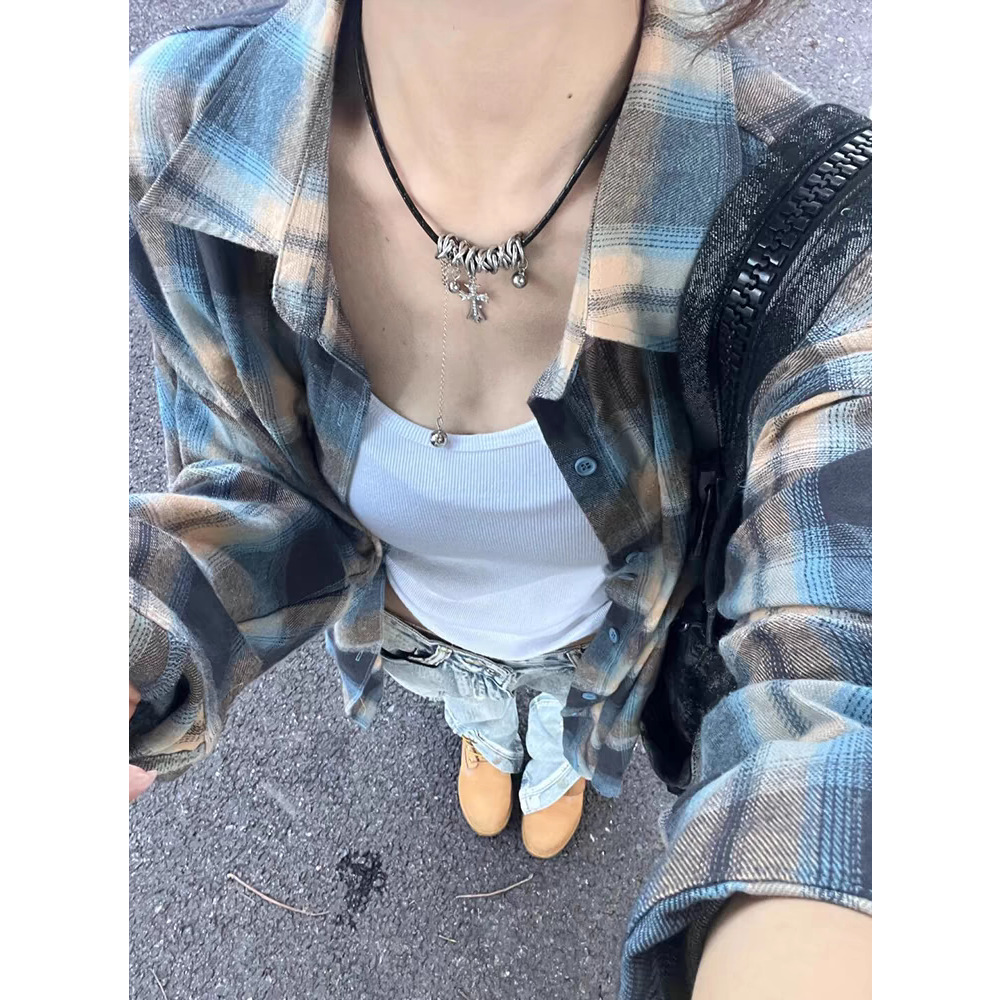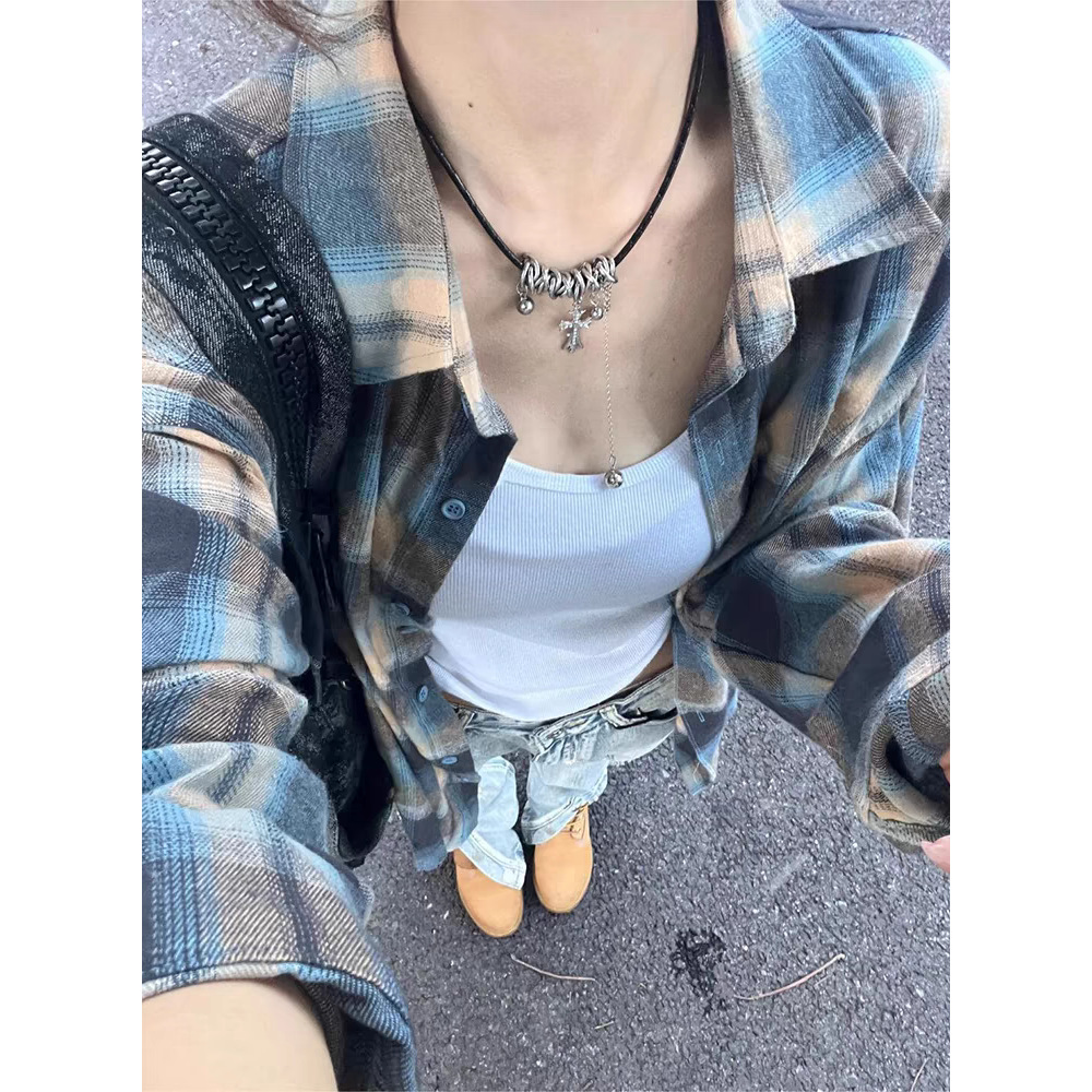 【공장 직판-맞춤 제작 가능】블루 체크 셔츠 재킷 여성용 컬리지 스타일 루즈핏 레이어드 베이스 재킷