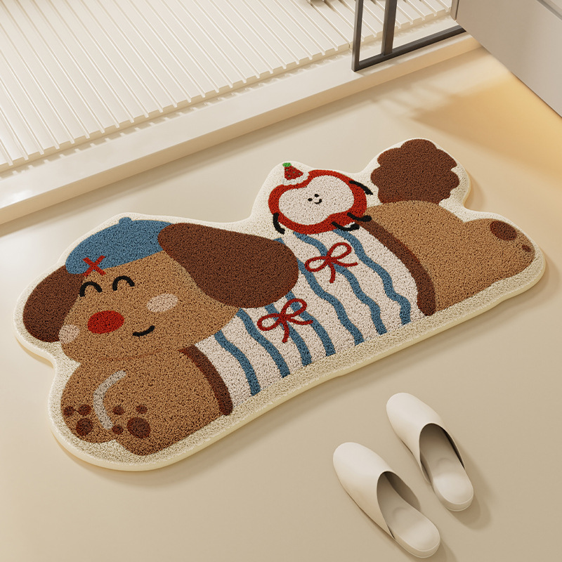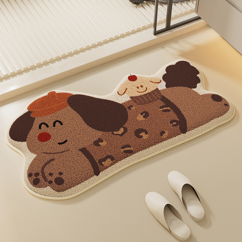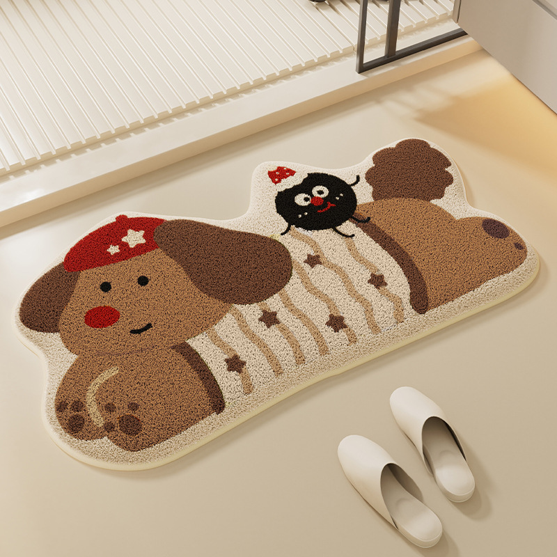 만화 강아지 욕실 흡수성 바닥 매트 먼지 방지 및 사용하기 쉬운 미끄럼 방지 매트 변기 도어 용 불규칙한 발 매트스토어 가기