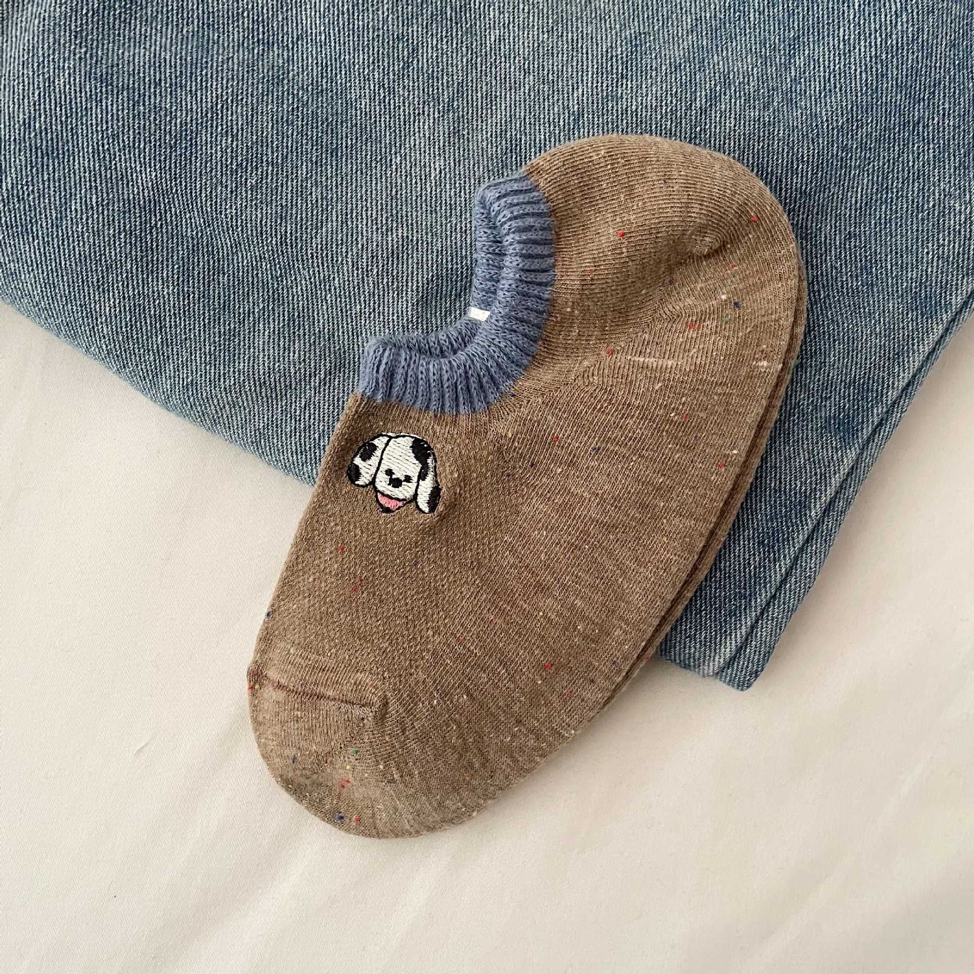 여름 보트 양말 여성의 얇은 만화 자수 보이지 않는 양말 한국 귀여운 색 원사 짧은 양말 면 미끄럼 방지 힐스토어 가기