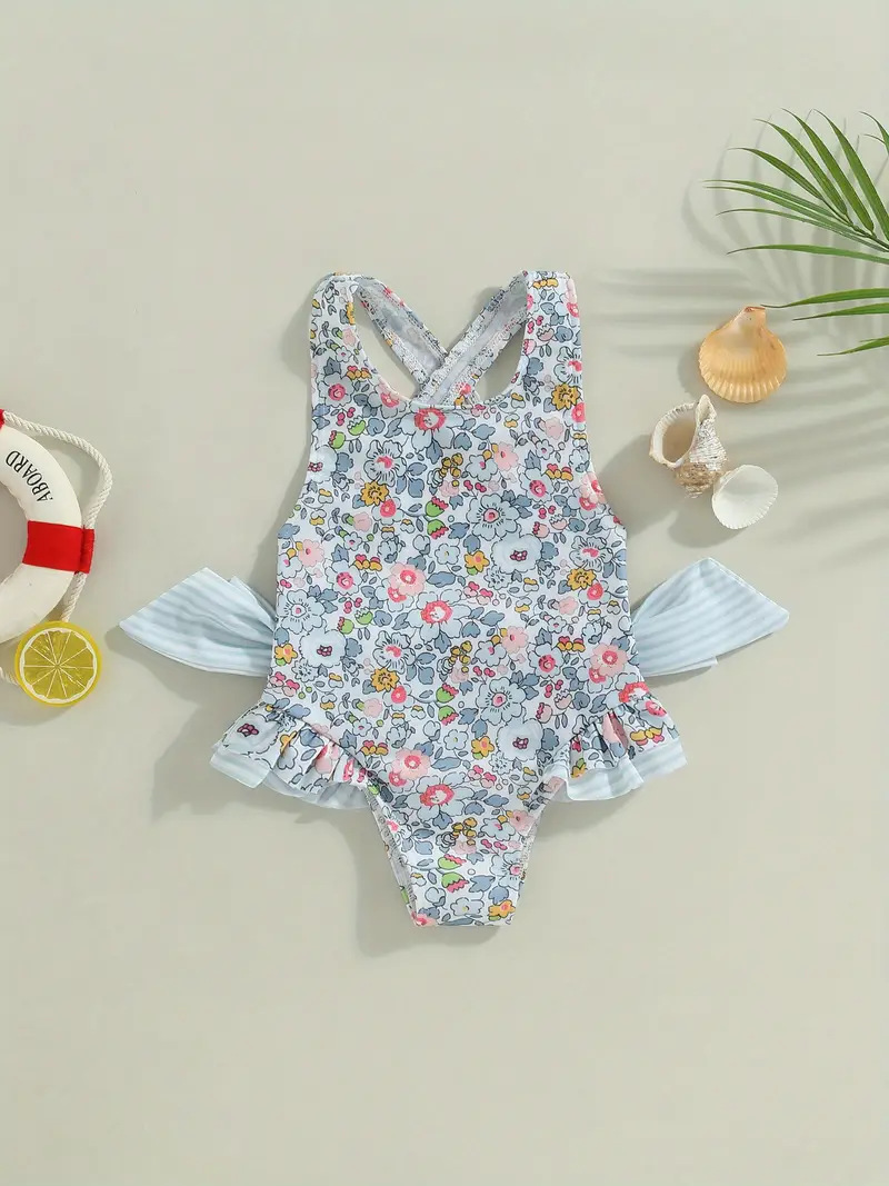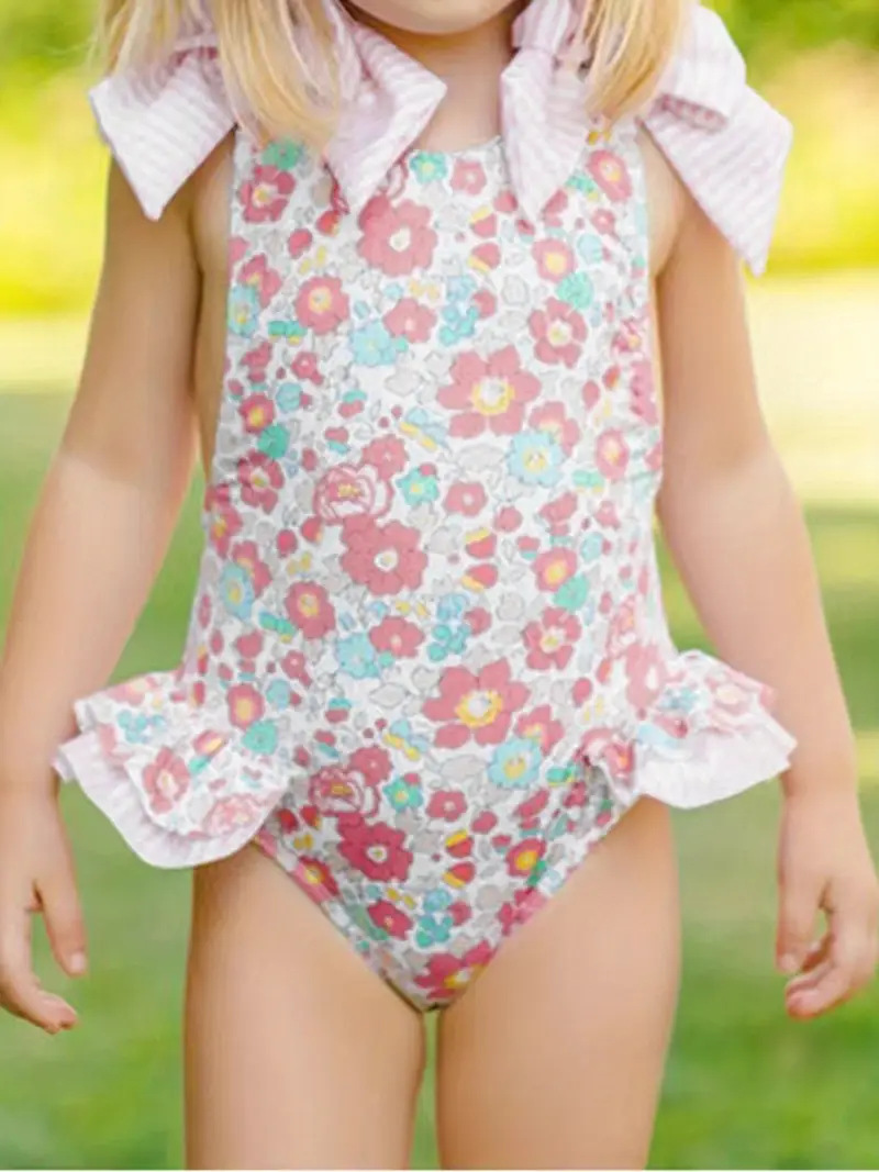 2025 새로운 여자 수영복 귀여운 러플 꽃 스타일 어린이 수영복 여성 수영복스토어 가기