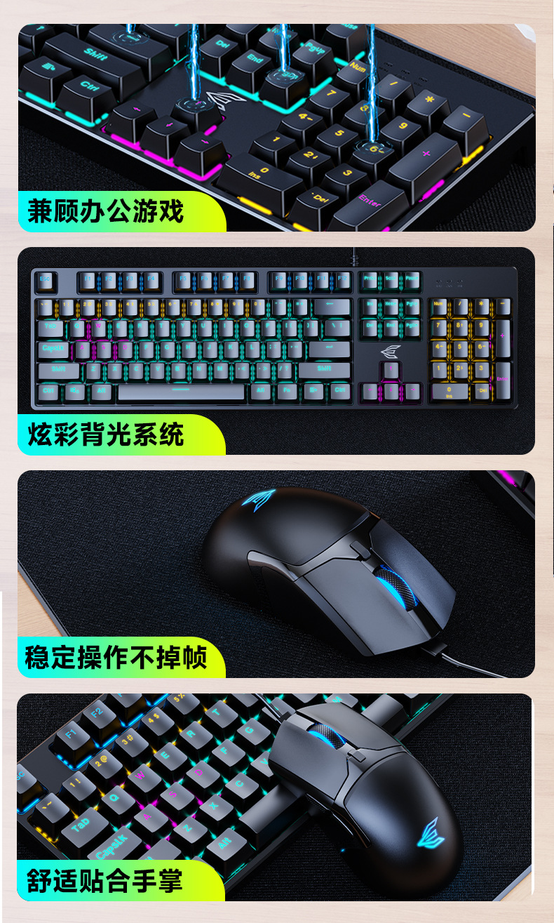 Power E Group GK100 진정한 기계식 키보드 및 마우스 세트 유선 e-스포츠 게임용 노트북 데스크탑 컴퓨터 키보드스토어 가기