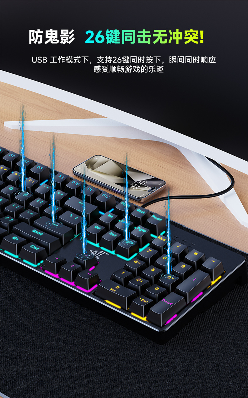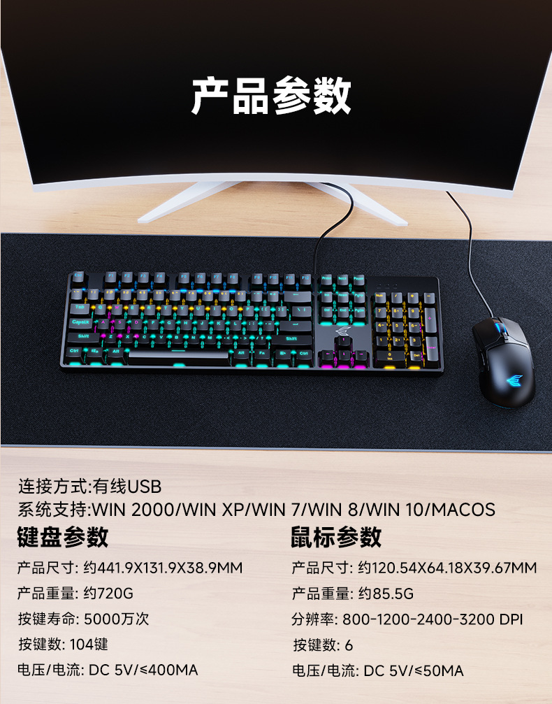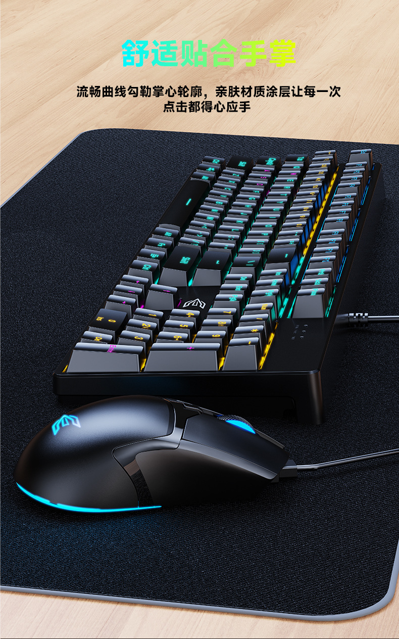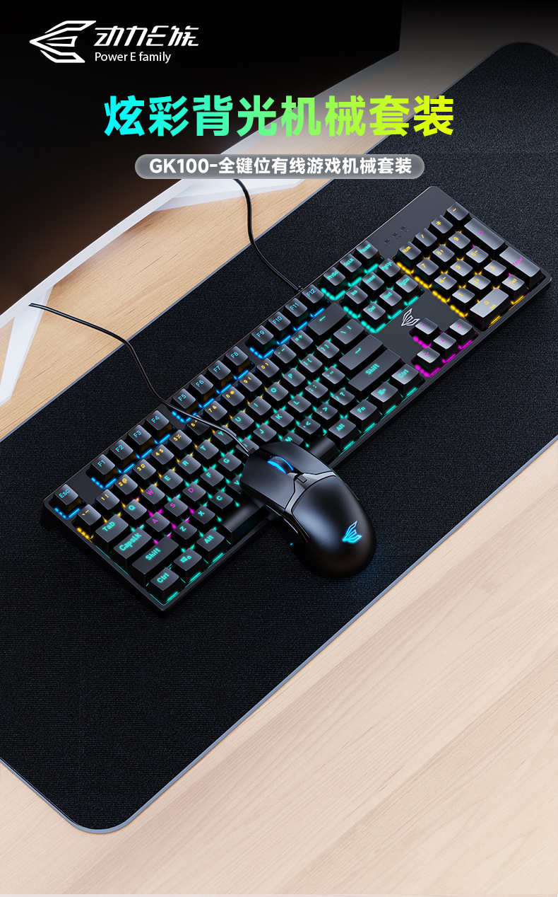 Power E Group GK100 진정한 기계식 키보드 및 마우스 세트 유선 e-스포츠 게임용 노트북 데스크탑 컴퓨터 키보드