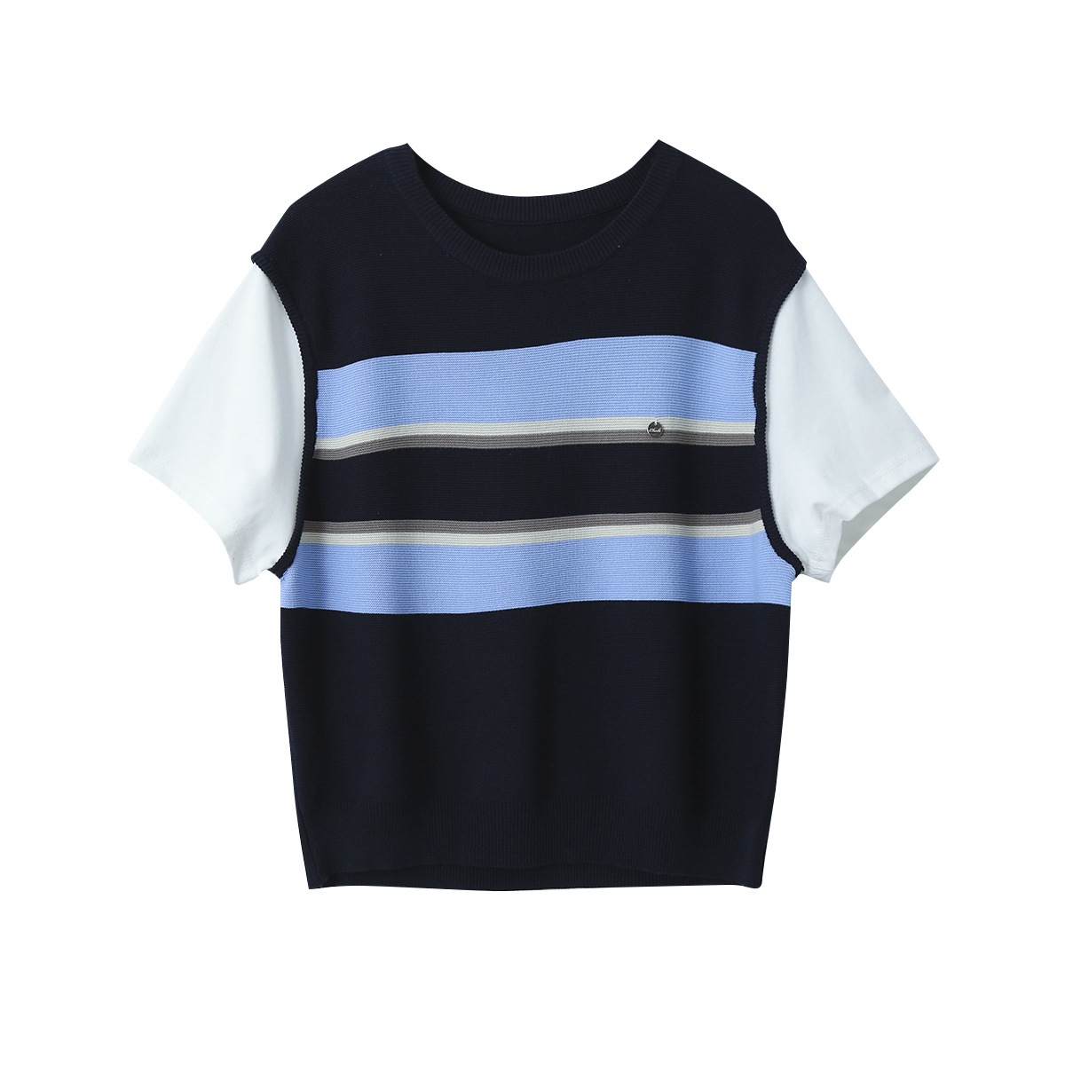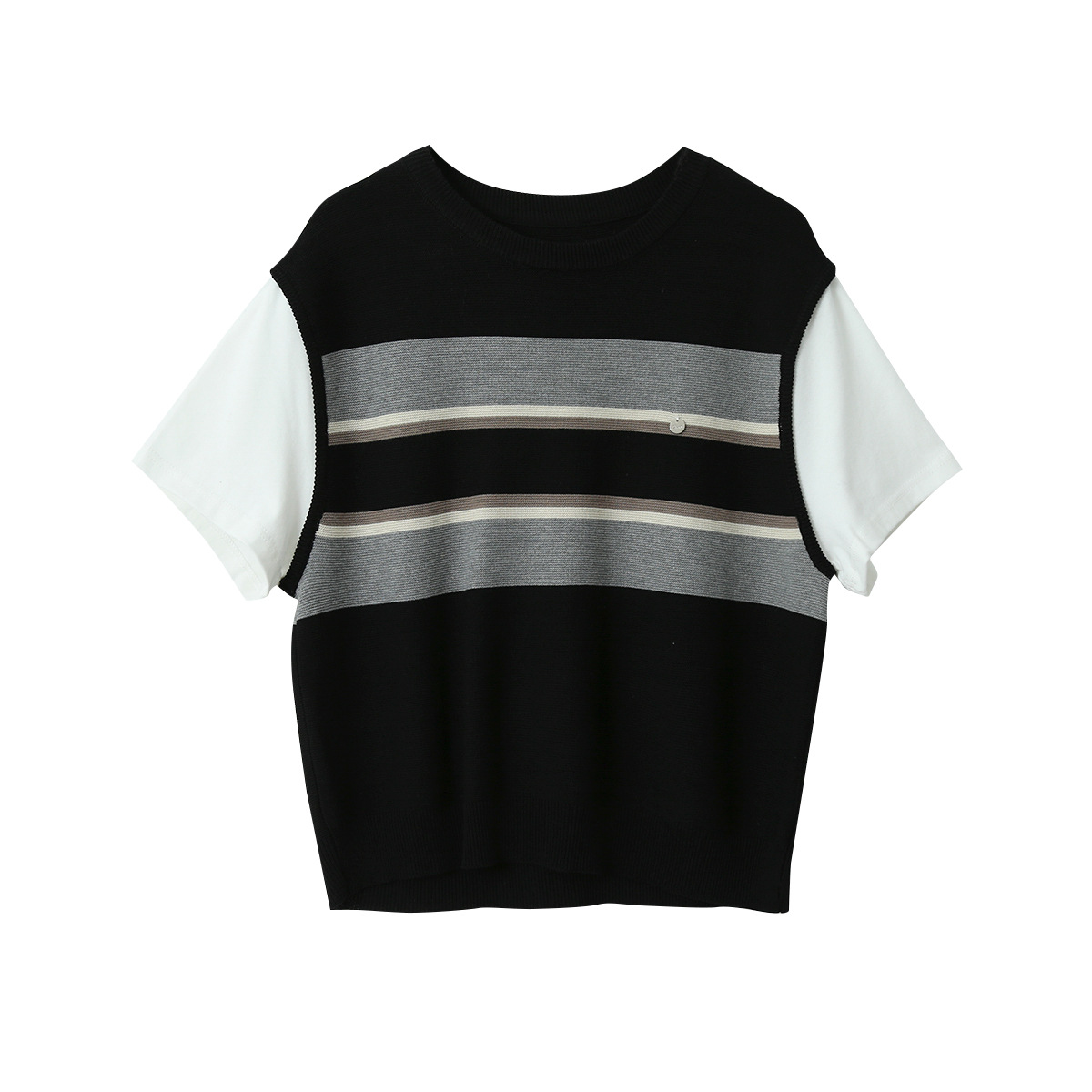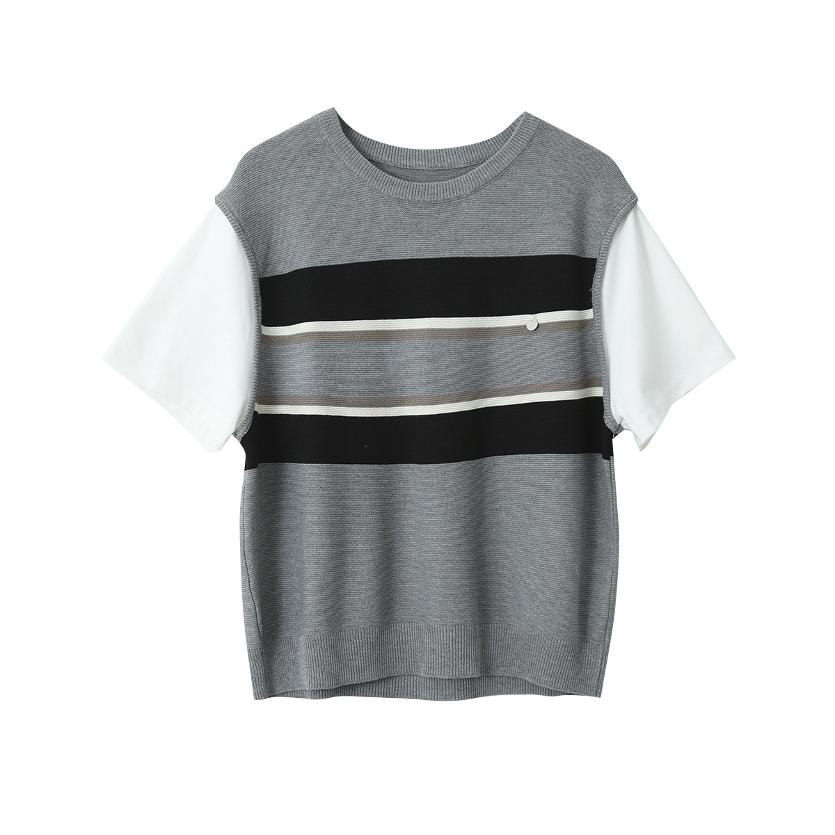 [우환] 한국 스티칭 반팔 가짜 투피스 스웨터 여성 2025 년 새 봄 기질 짧은 재킷 2770