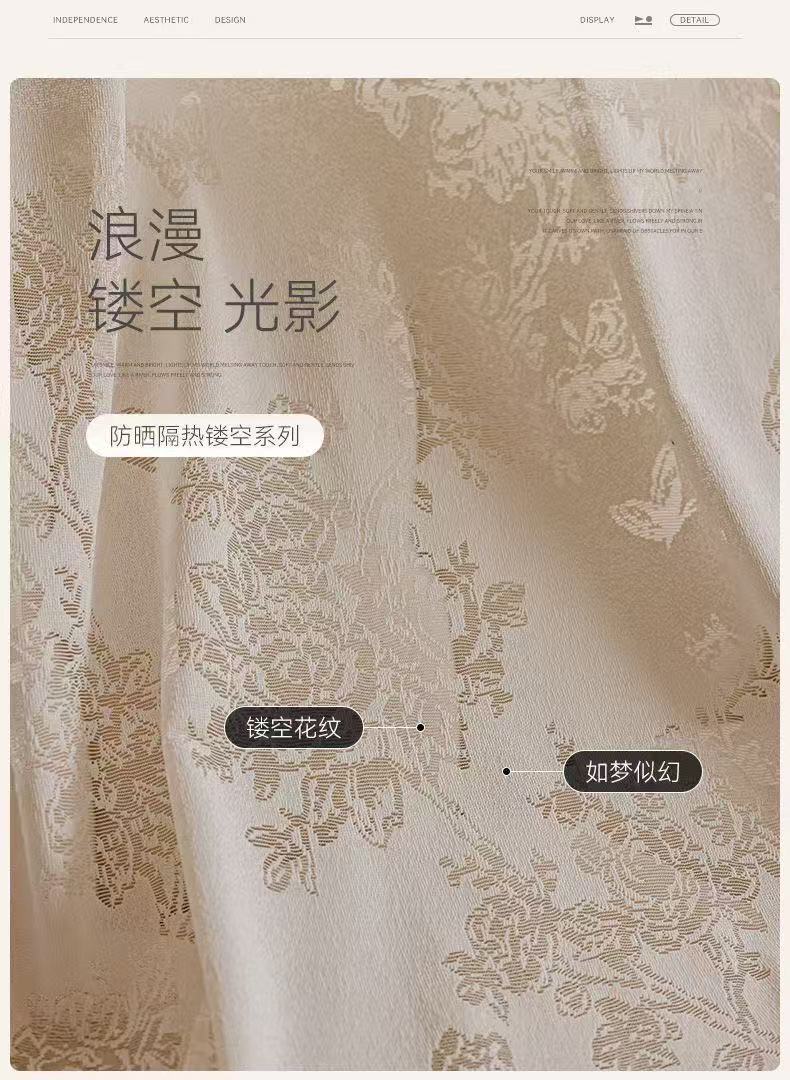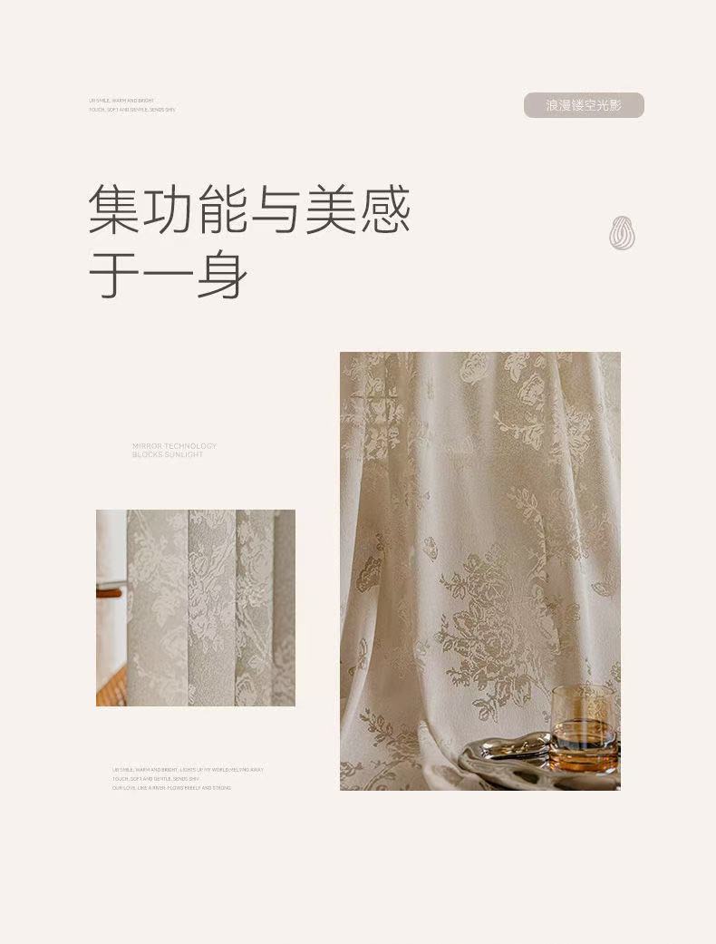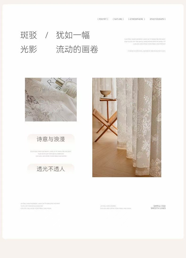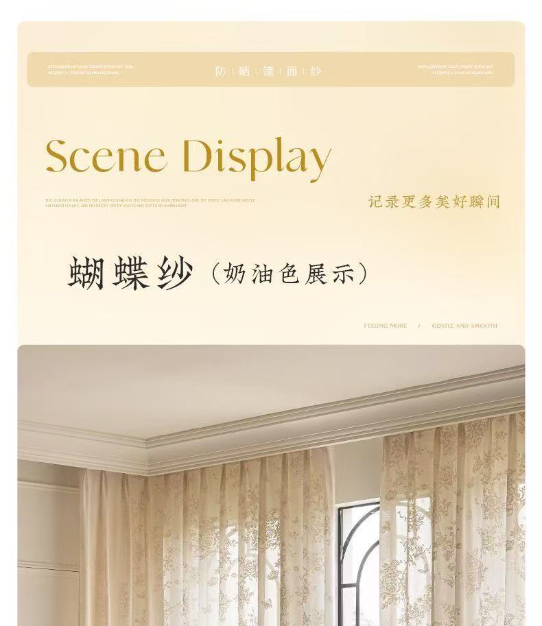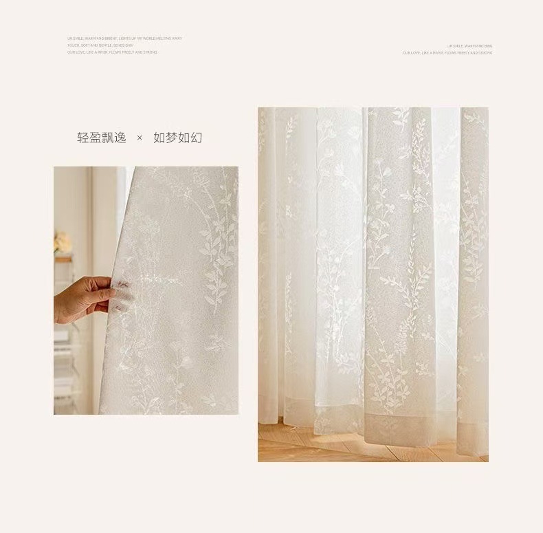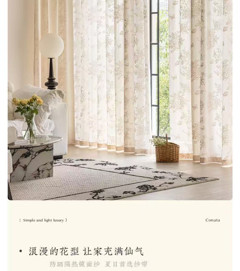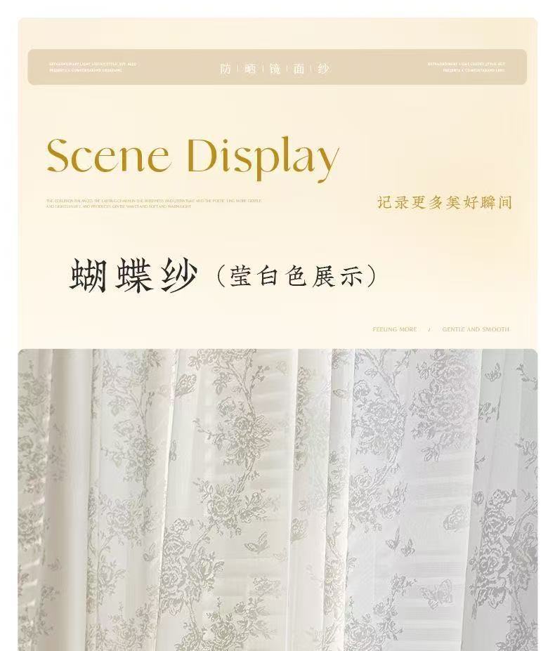 프렌치 로즈 나비 모양 거즈 커튼, 레이스 자카드, 자외선 차단 및 단열, 크림색, 투명 창문 커튼, 불투명스토어 가기