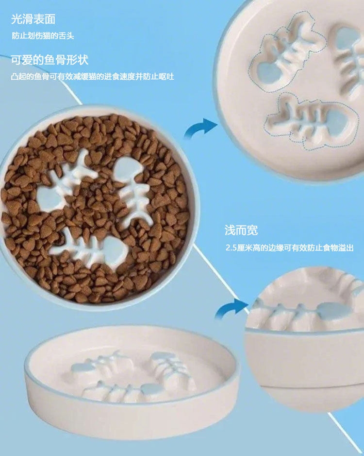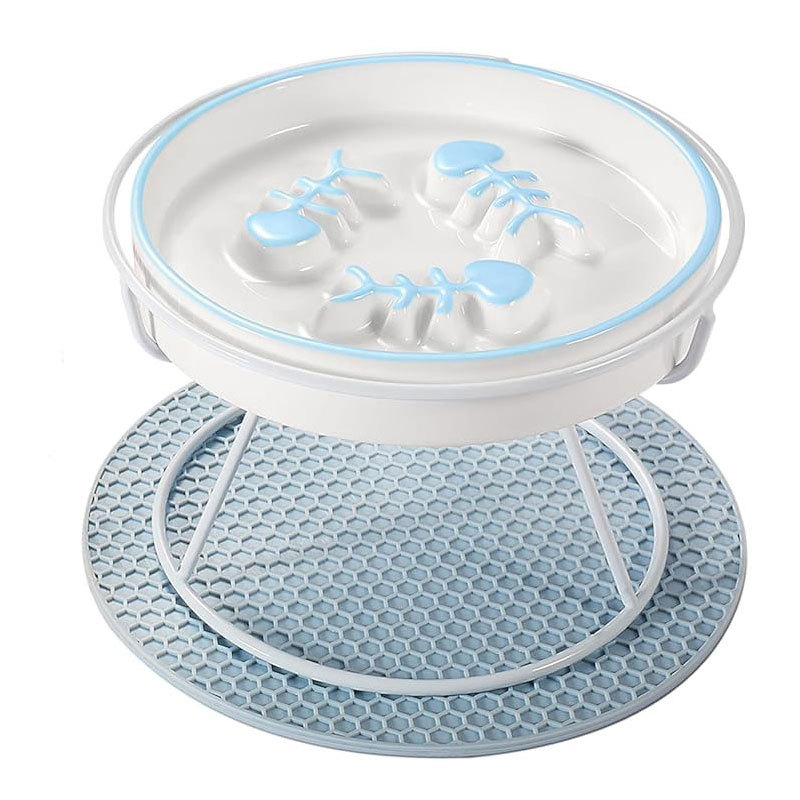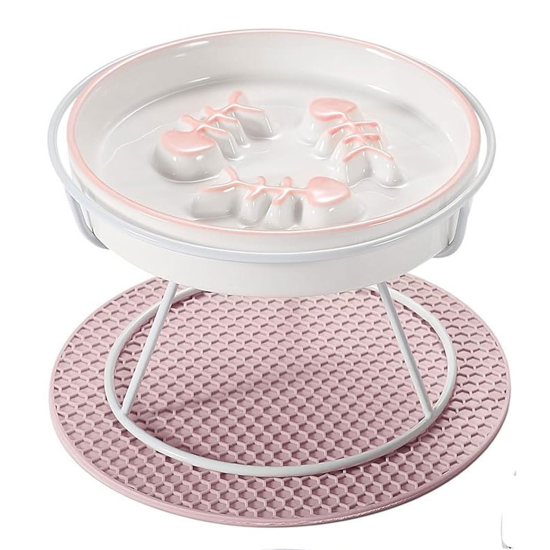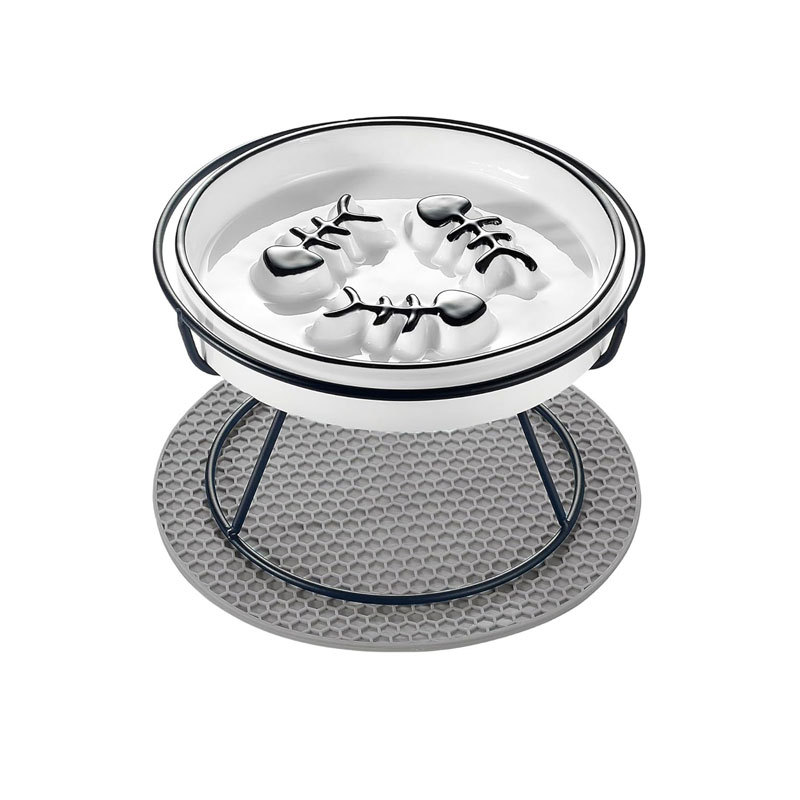 고양이 그릇, 세라믹 그릇, 느린 먹이, 질식 방지 그릇, 식품 그릇, 척추를 보호하는 높은 발, 검은 턱 방지, 고양이 및 개 그릇, 애완 동물 고양이