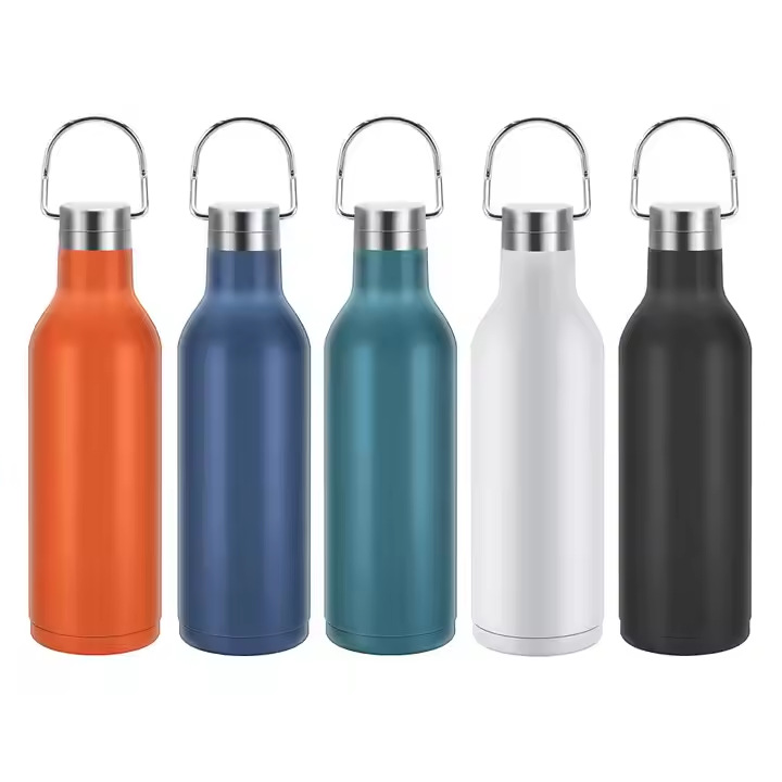 아마존 야외 휴대용 손잡이 등산 냄비 304 스테인레스 스틸 미국 스타일 큰 입 스포츠 주전자 절연 물 컵