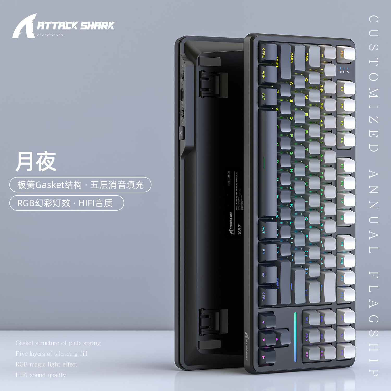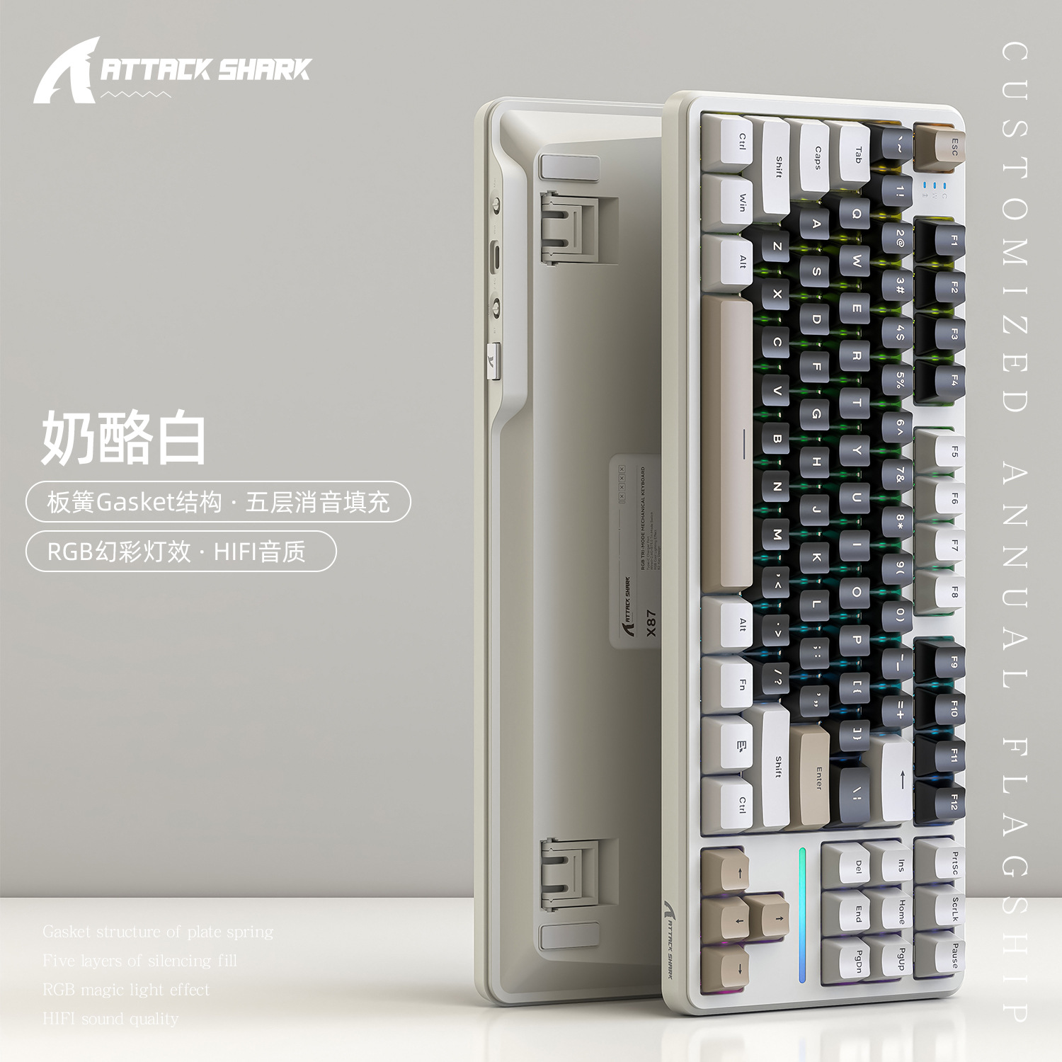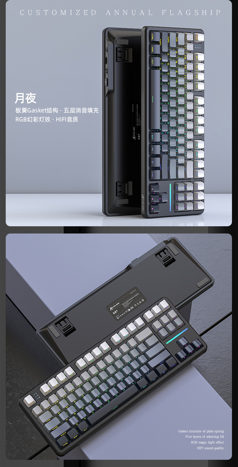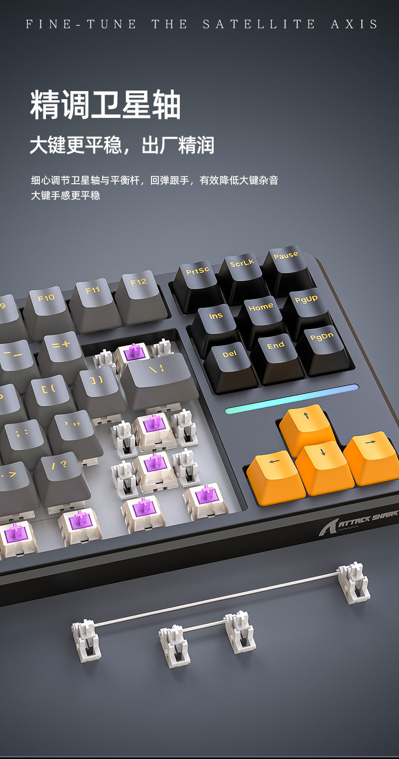 攻击鲨X87三模RGB无线蓝牙热插拔机械键盘