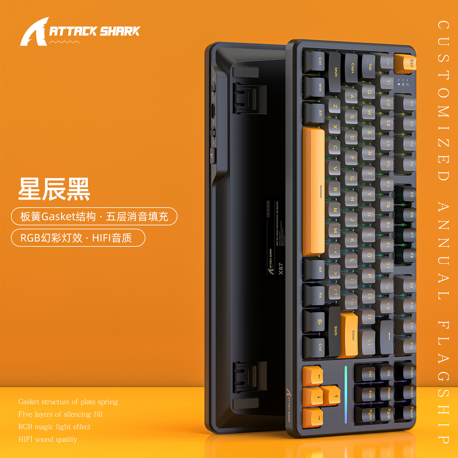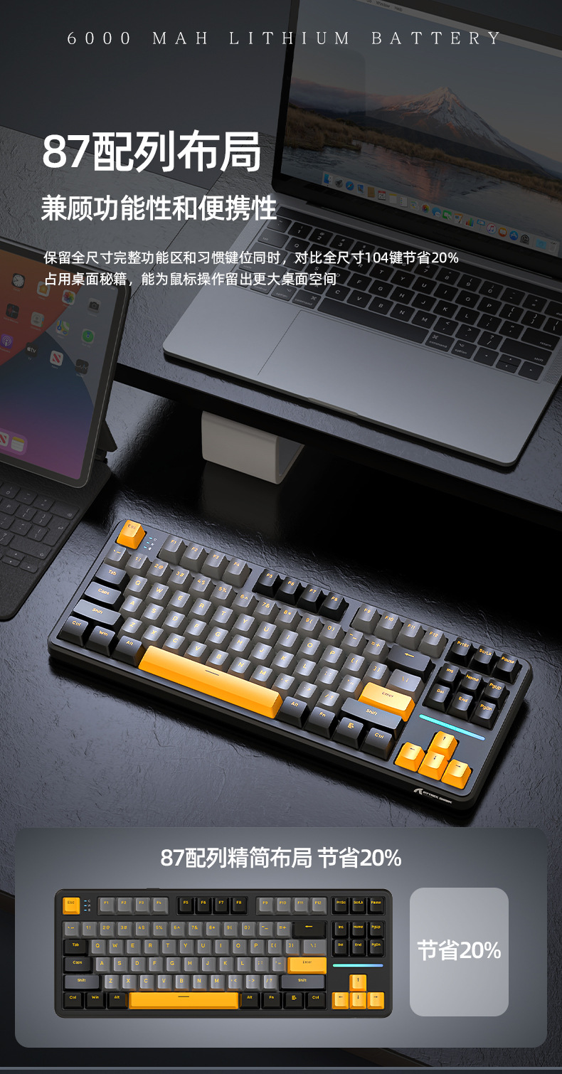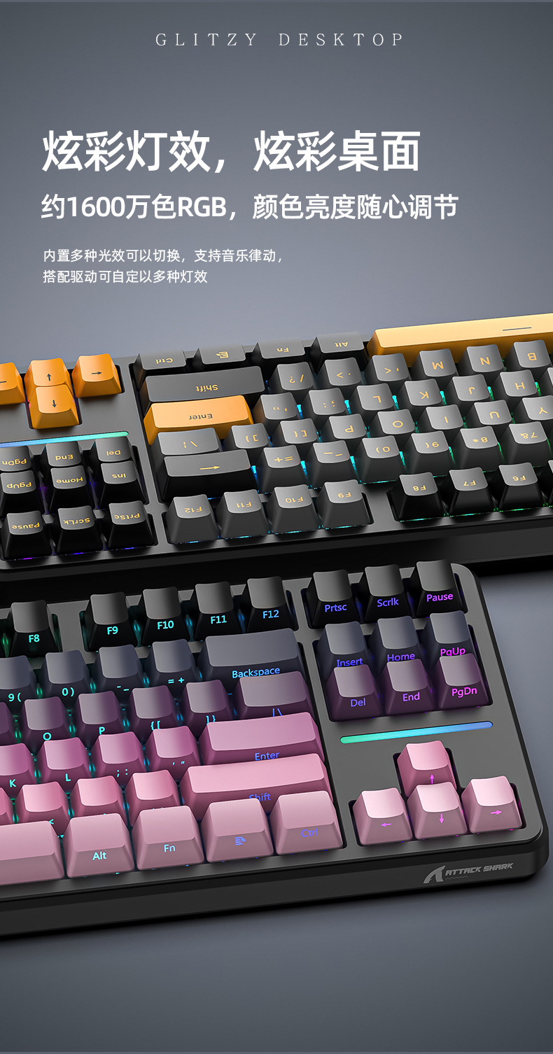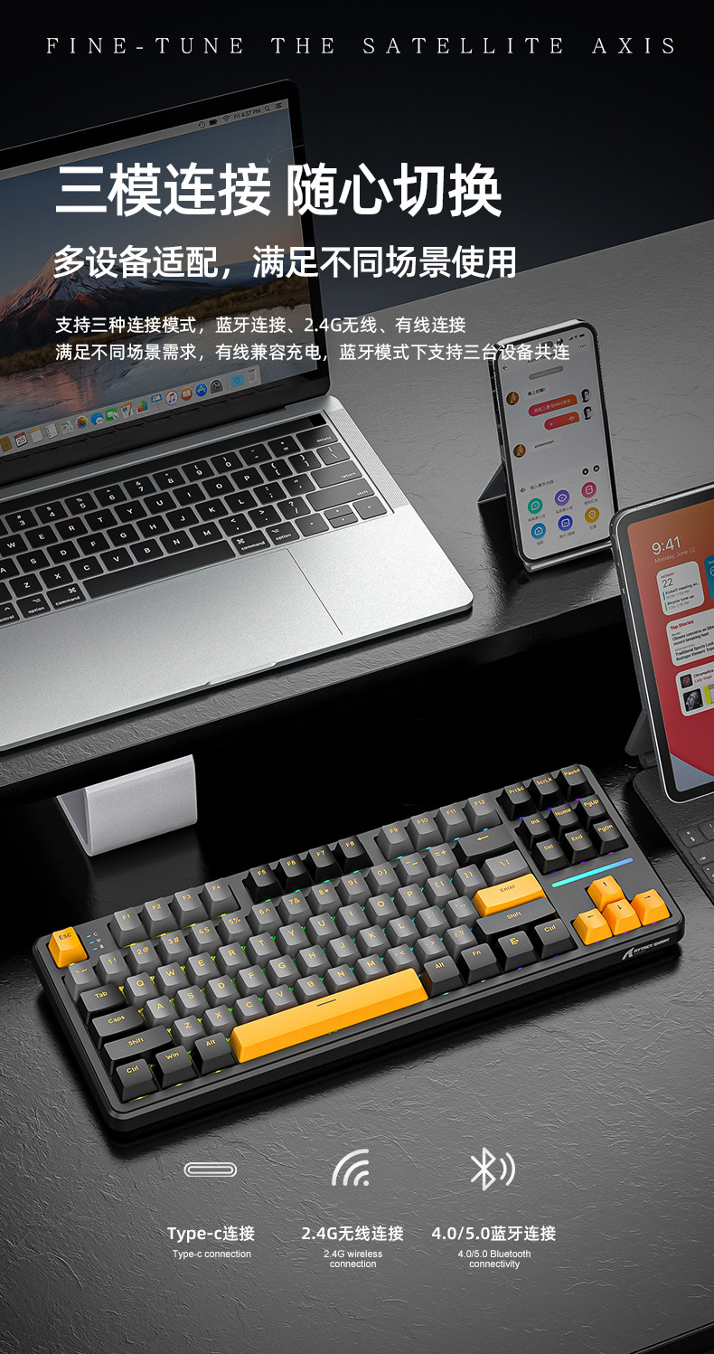 攻击鲨X87三模RGB无线蓝牙热插拔机械键盘