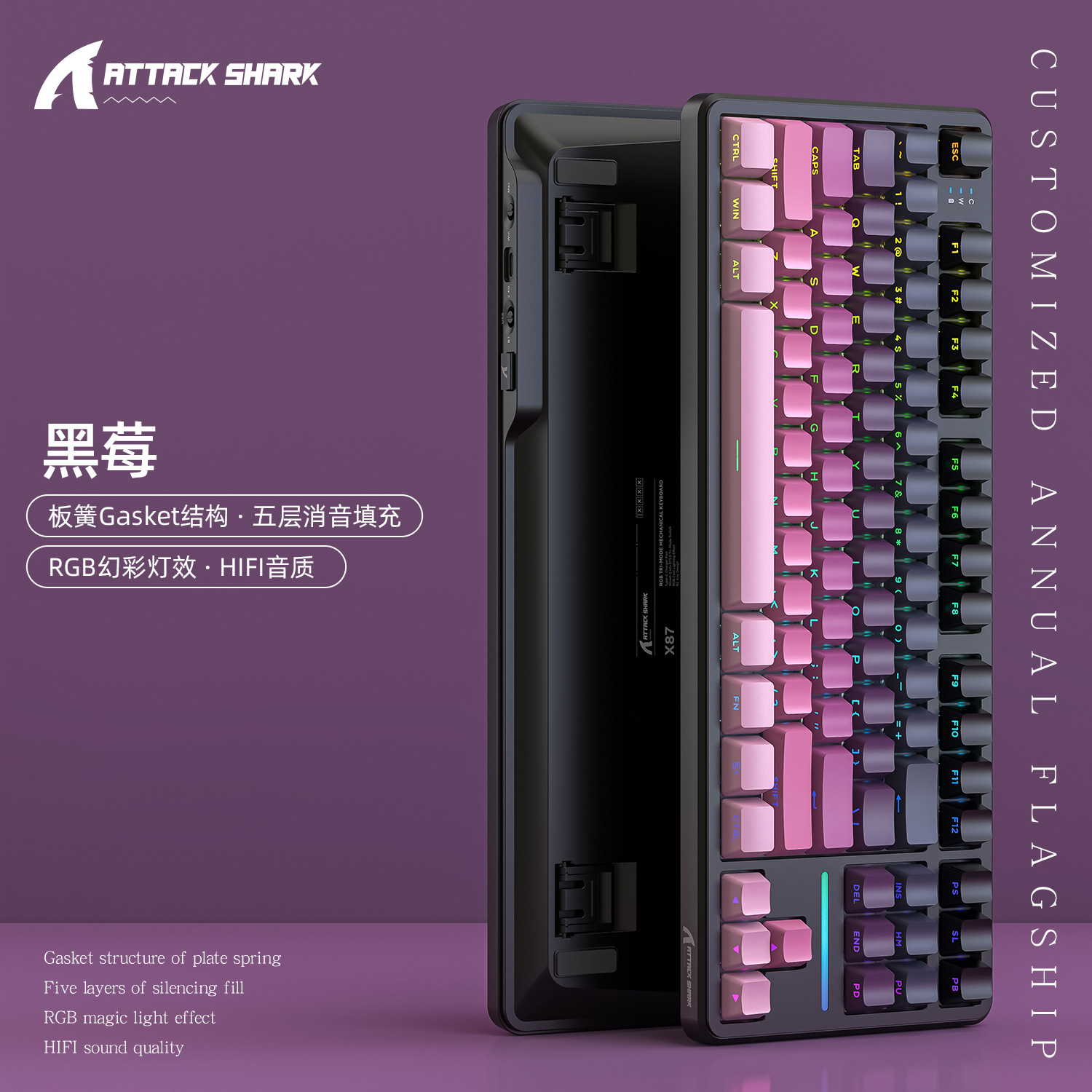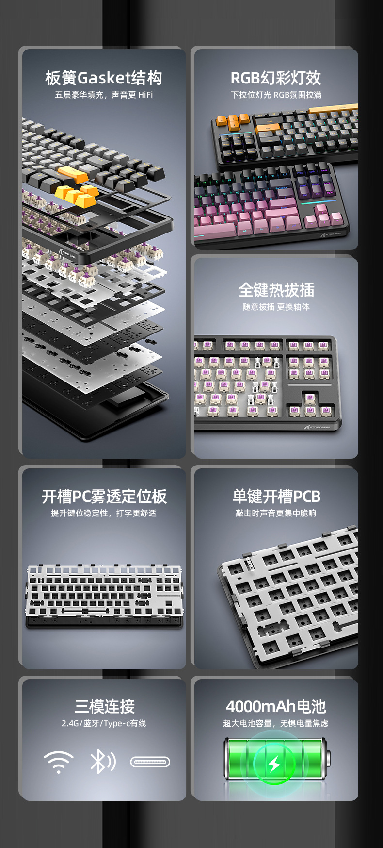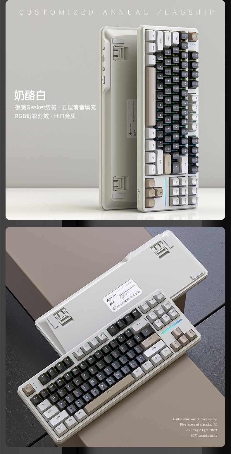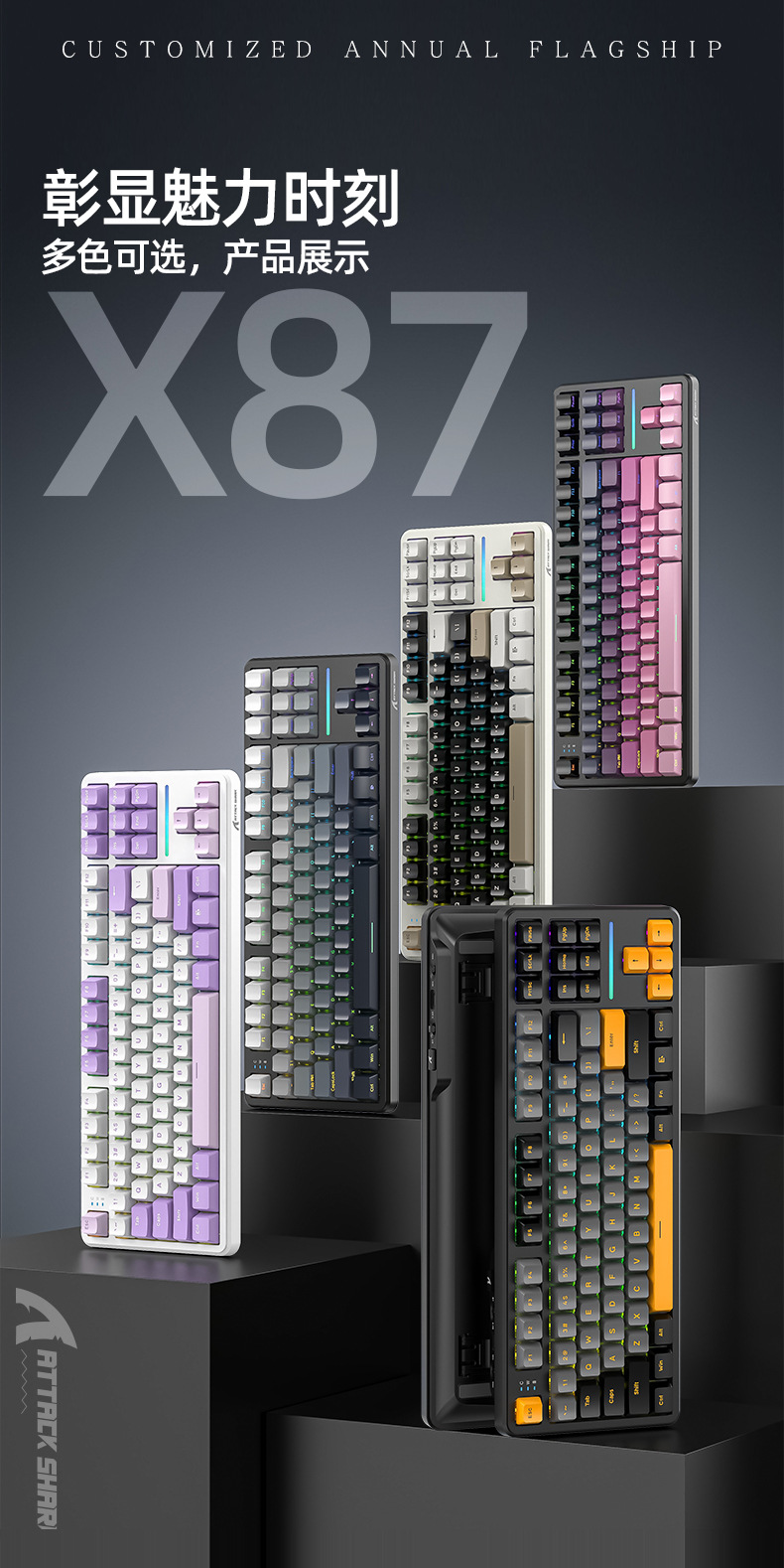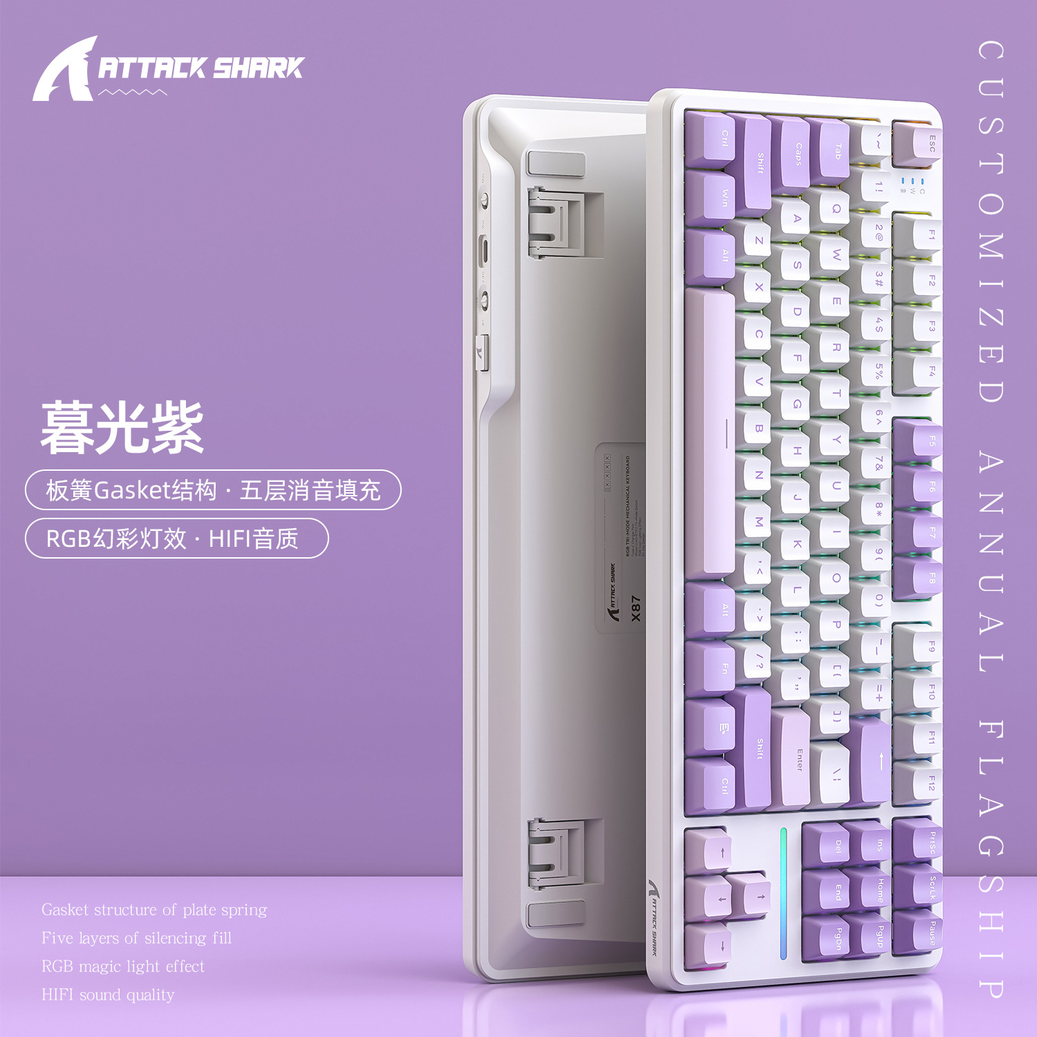 攻击鲨X87三模RGB无线蓝牙热插拔机械键盘
